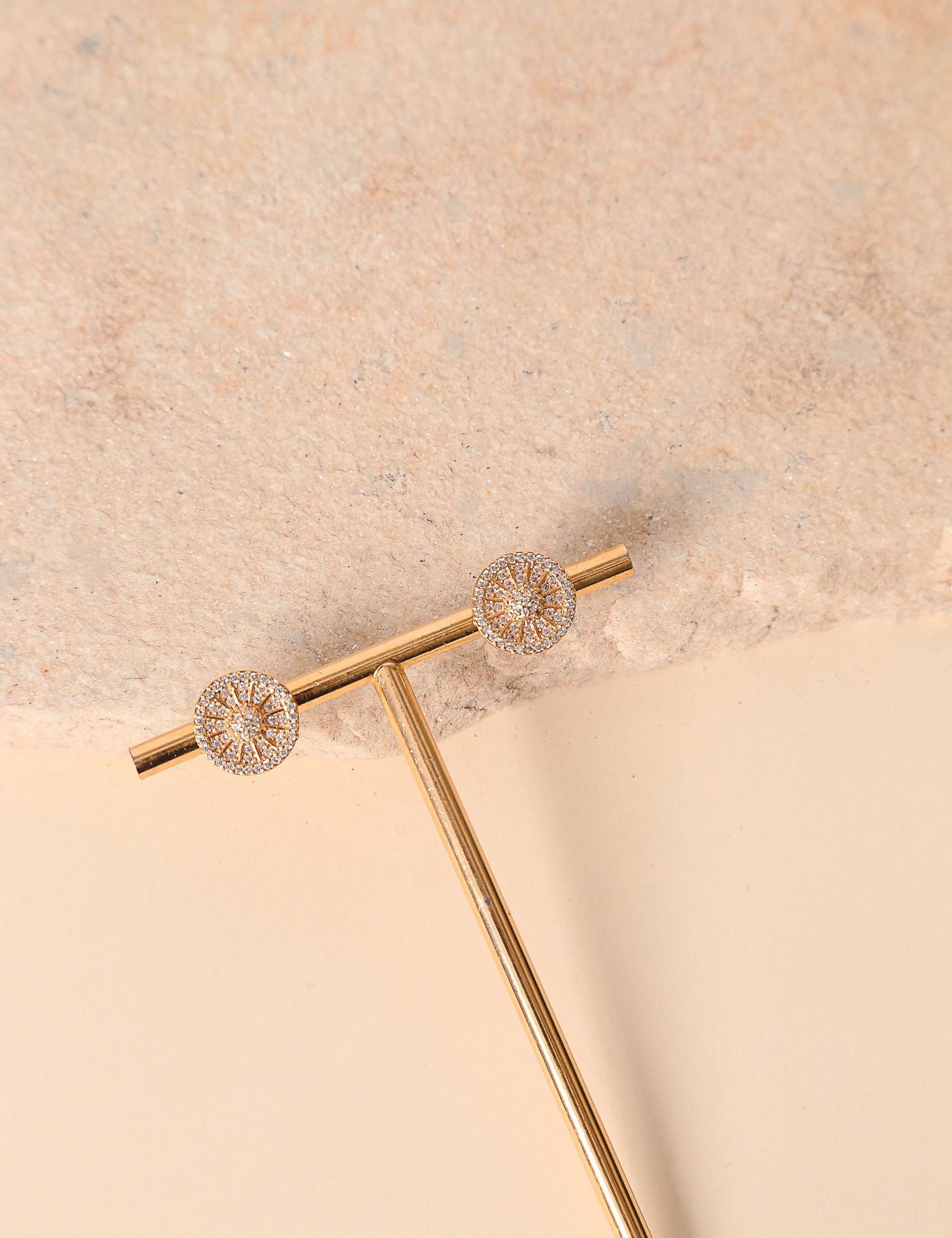 Brinco em formato de pizza cravejado com cristais. Modelo clássico para quem busca estilo e delicadeza.