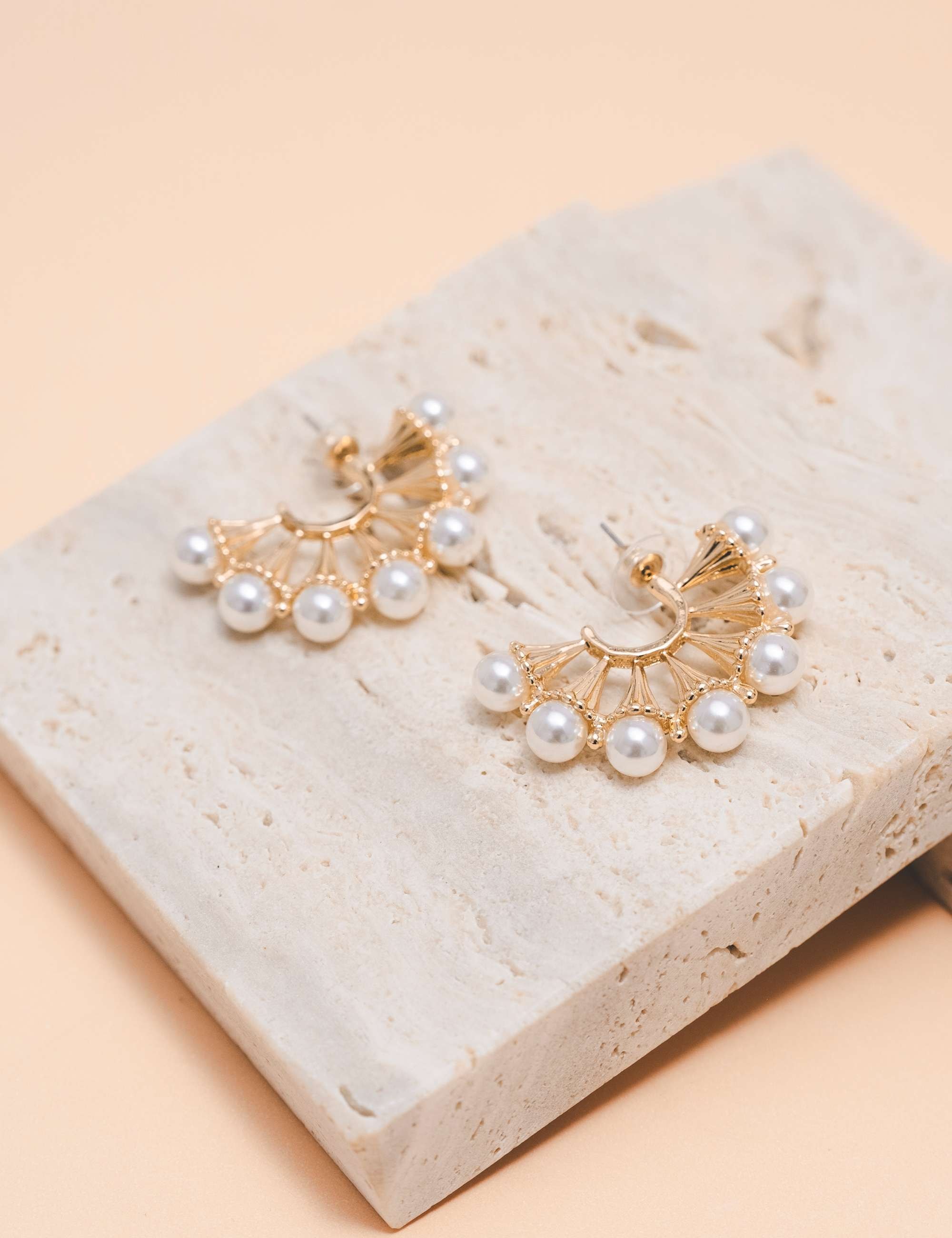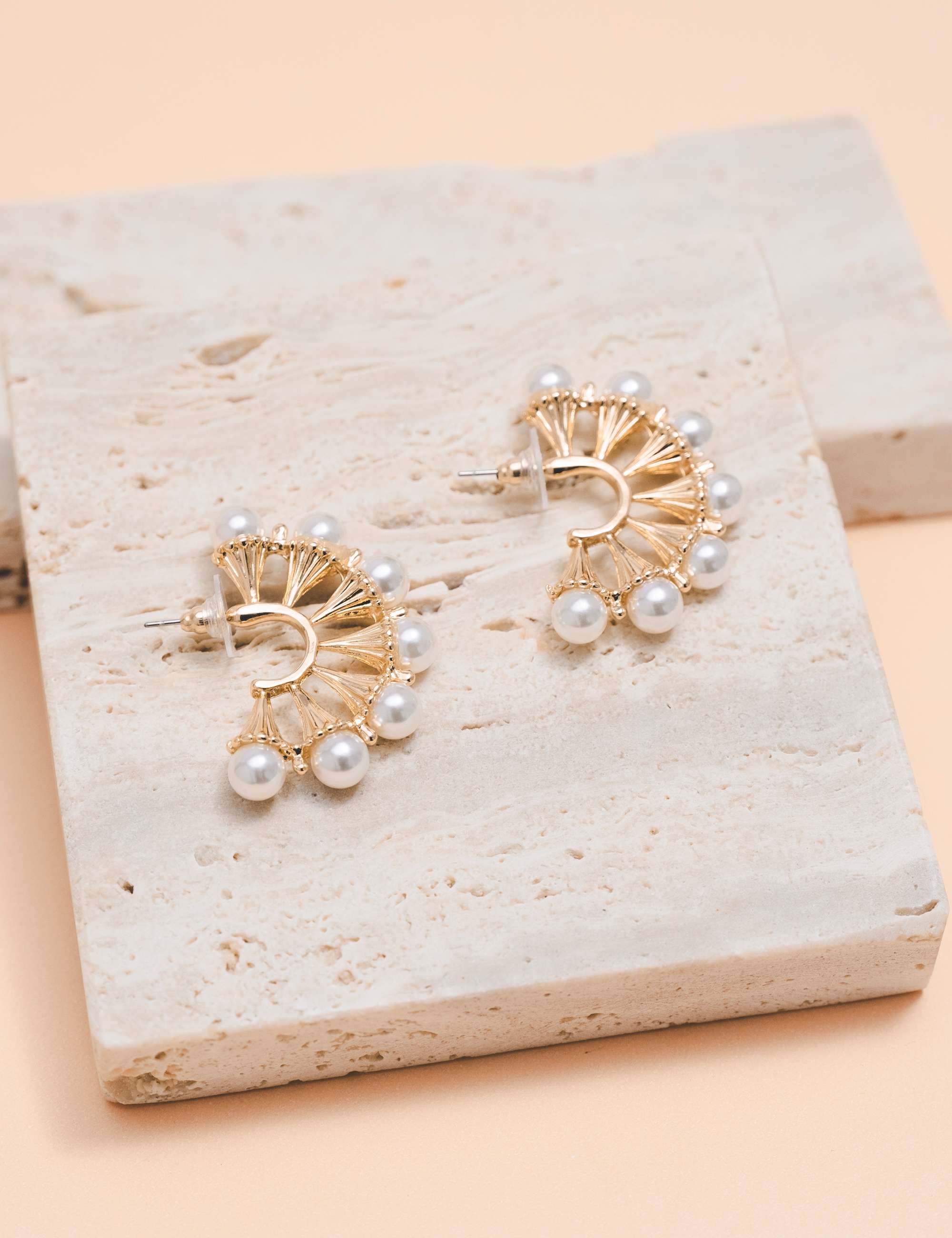 Peça: Brinco alta fusão, pérola resinada, semelhante a argola vazada e laterais frisaras com ponteiras de pérola resinada.