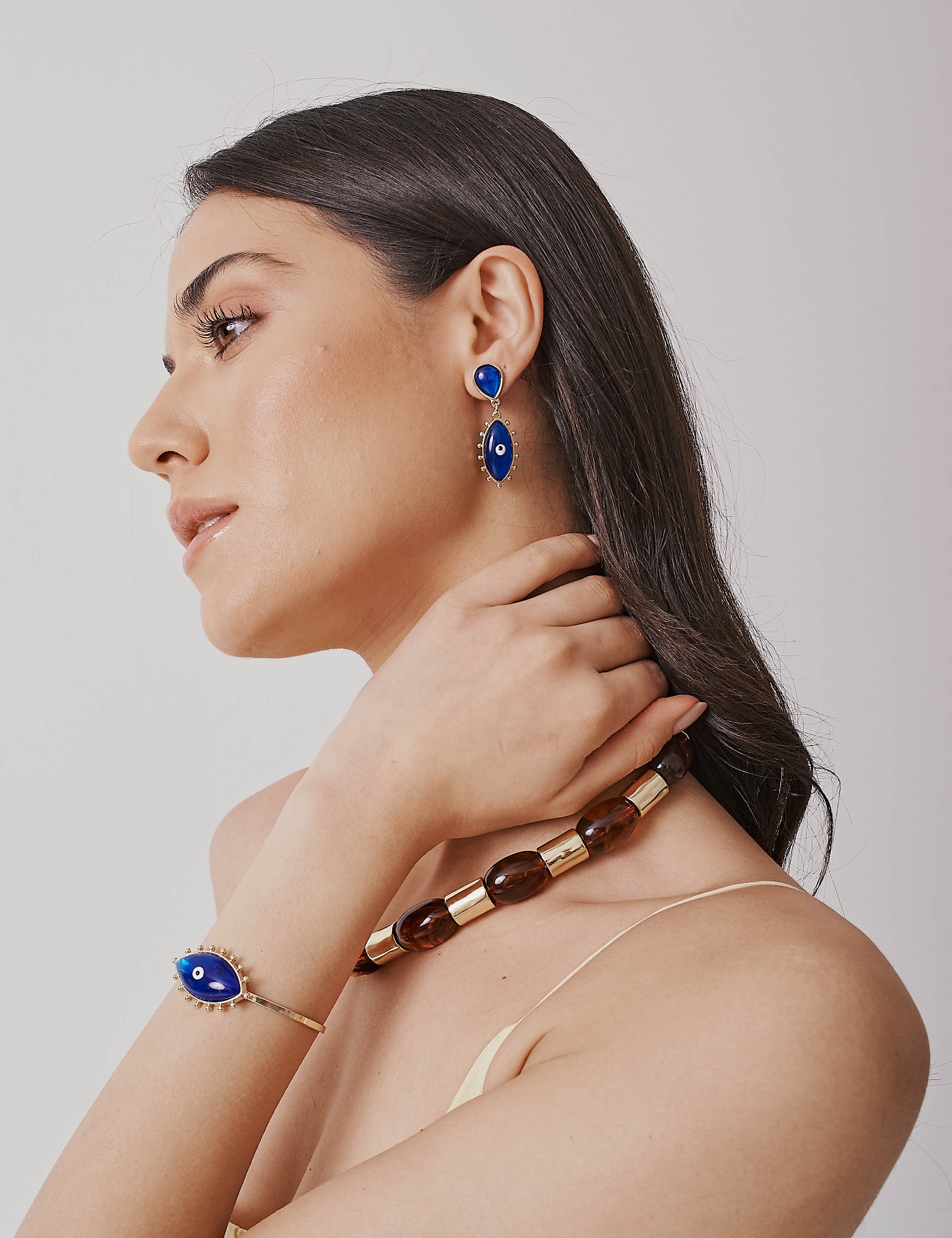 Todos os nossos metais são banhados a ouro, possuem camada protetiva para bijuterias finas e também possuem camada de metal precioso em sua composição. As bijuterias precisam de cuidados, limpe-as com flanela seca e macia, evite contato direto com cosméticos, areia, praia e piscina.