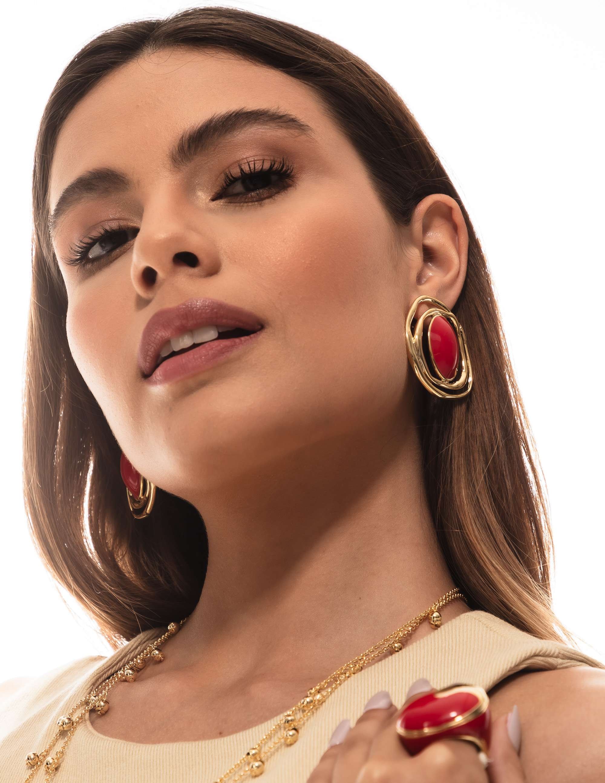 Todos os nossos metais são banhados a ouro, possuem camada protetiva para bijuterias finas e também possuem camada de metal precioso em sua composição. As bijuterias precisam de cuidados, limpe-as com flanela seca e macia, evite contato direto com cosméticos, areia, praia e piscina.