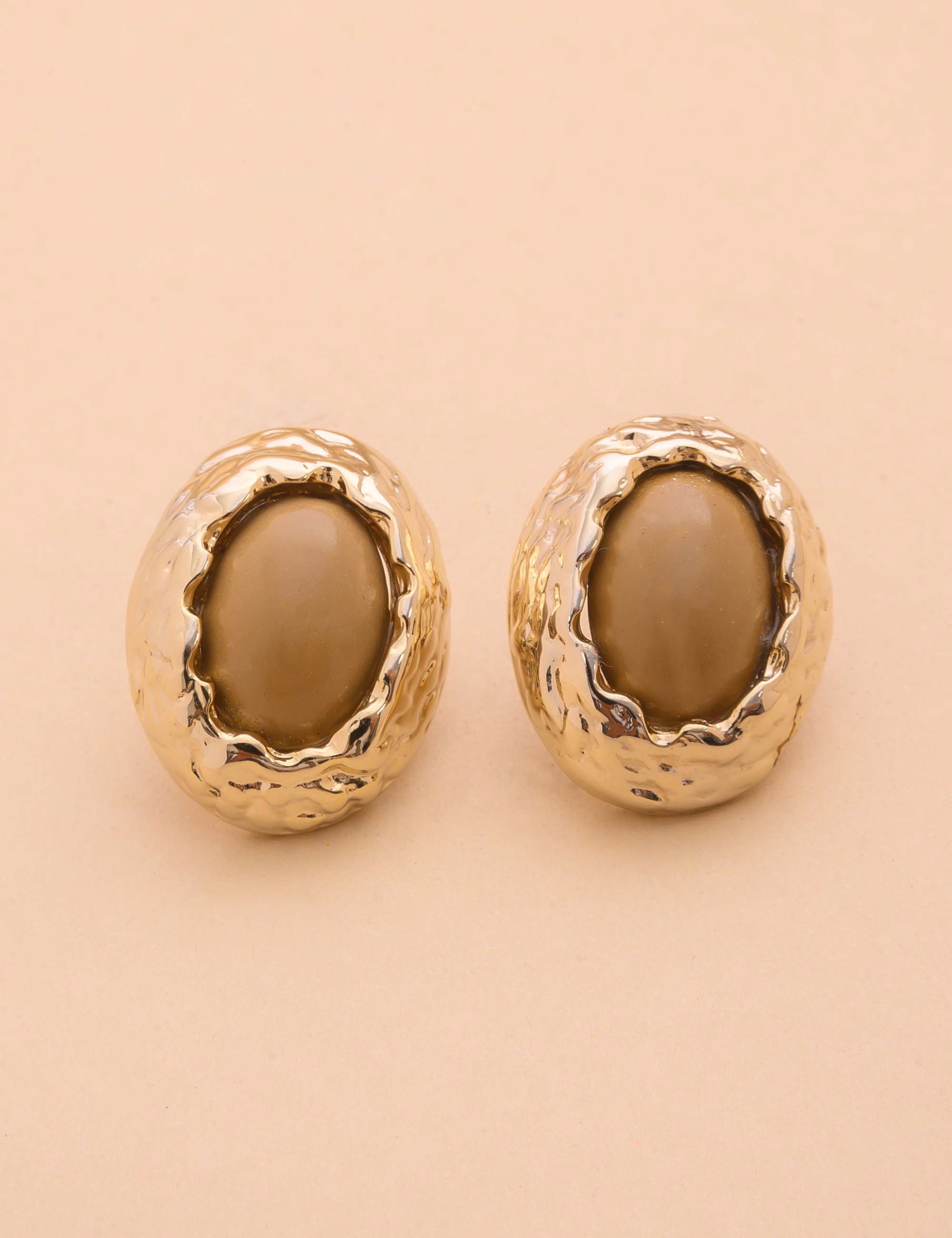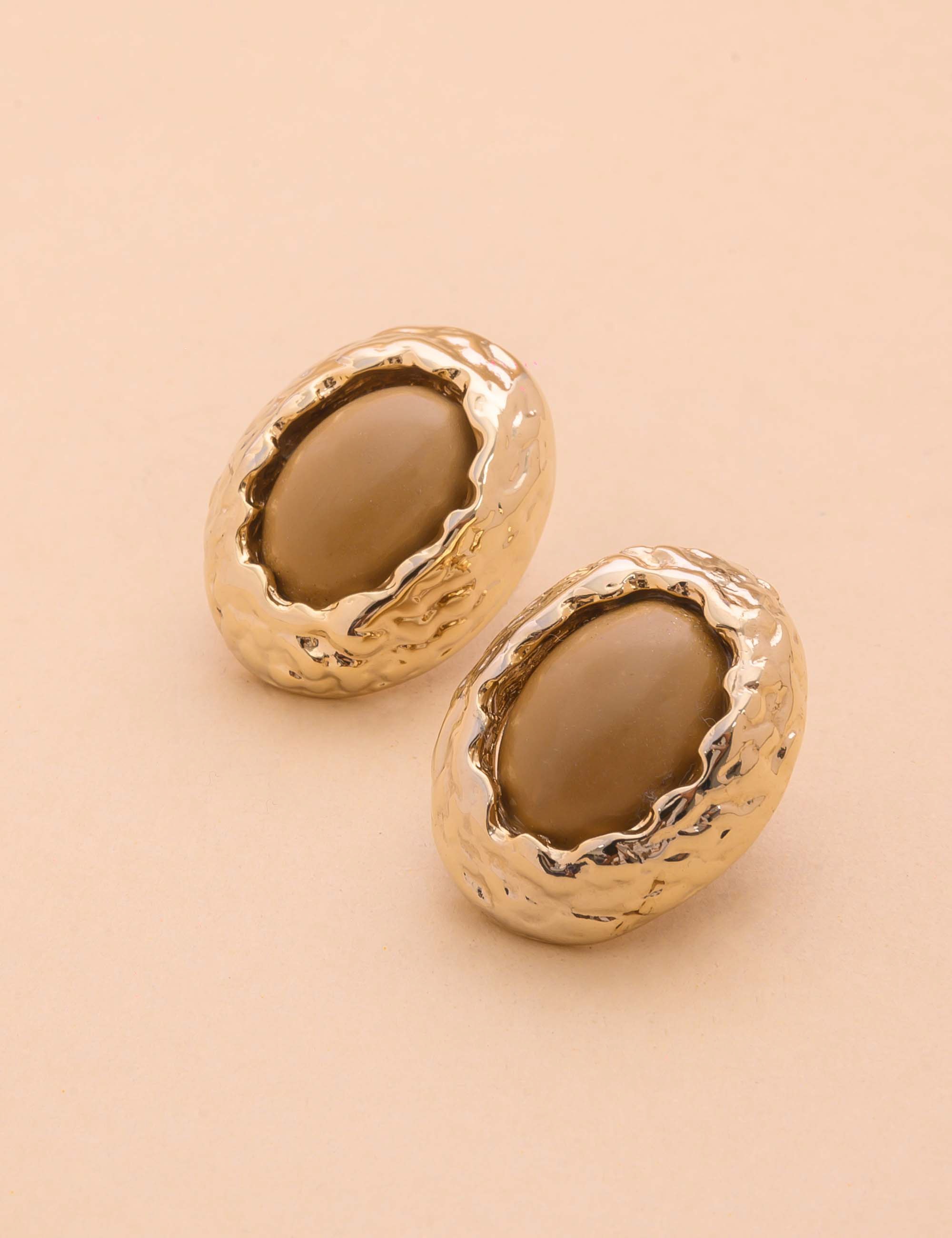 BRINCO OURO OVAL MARROM -BR29143VO03