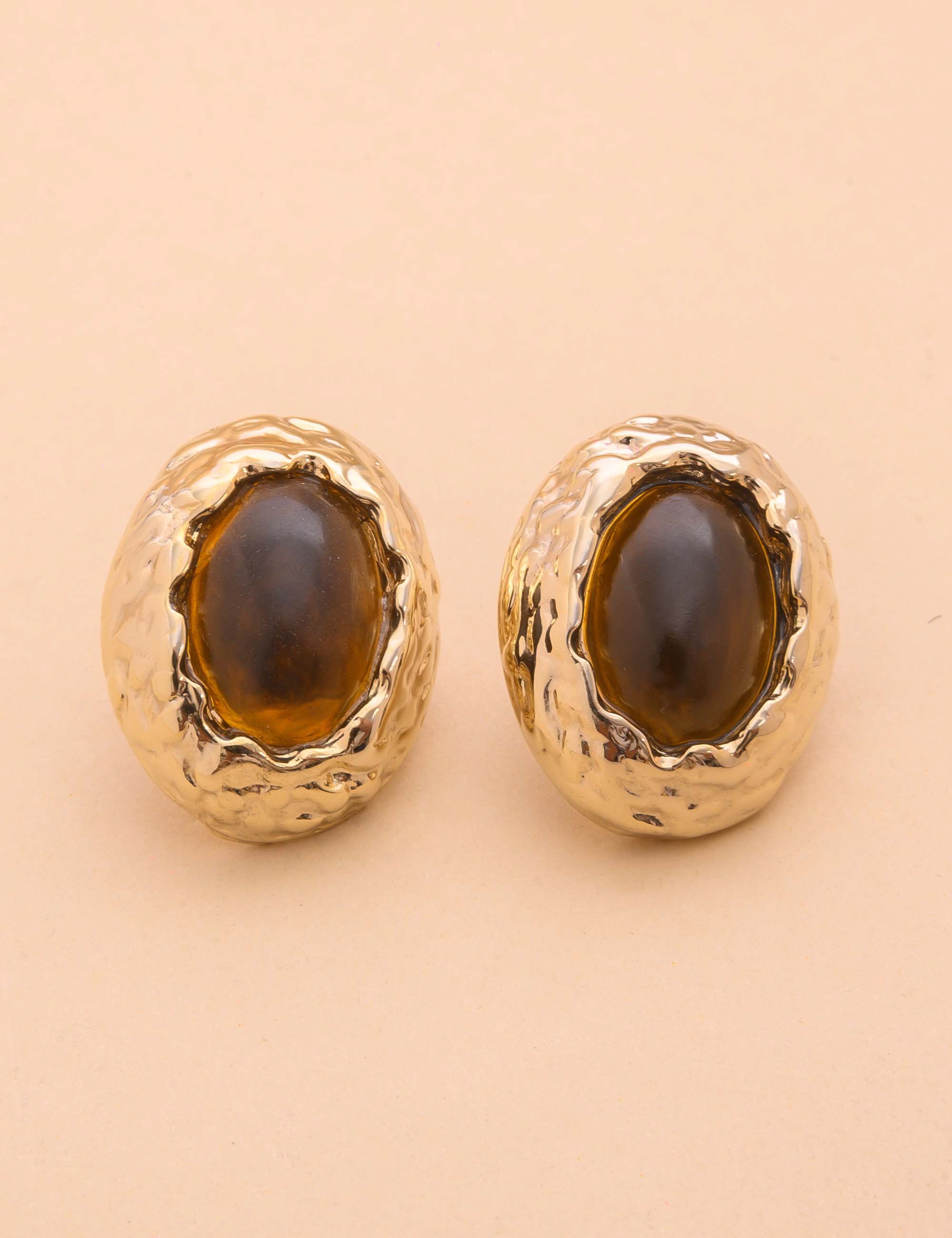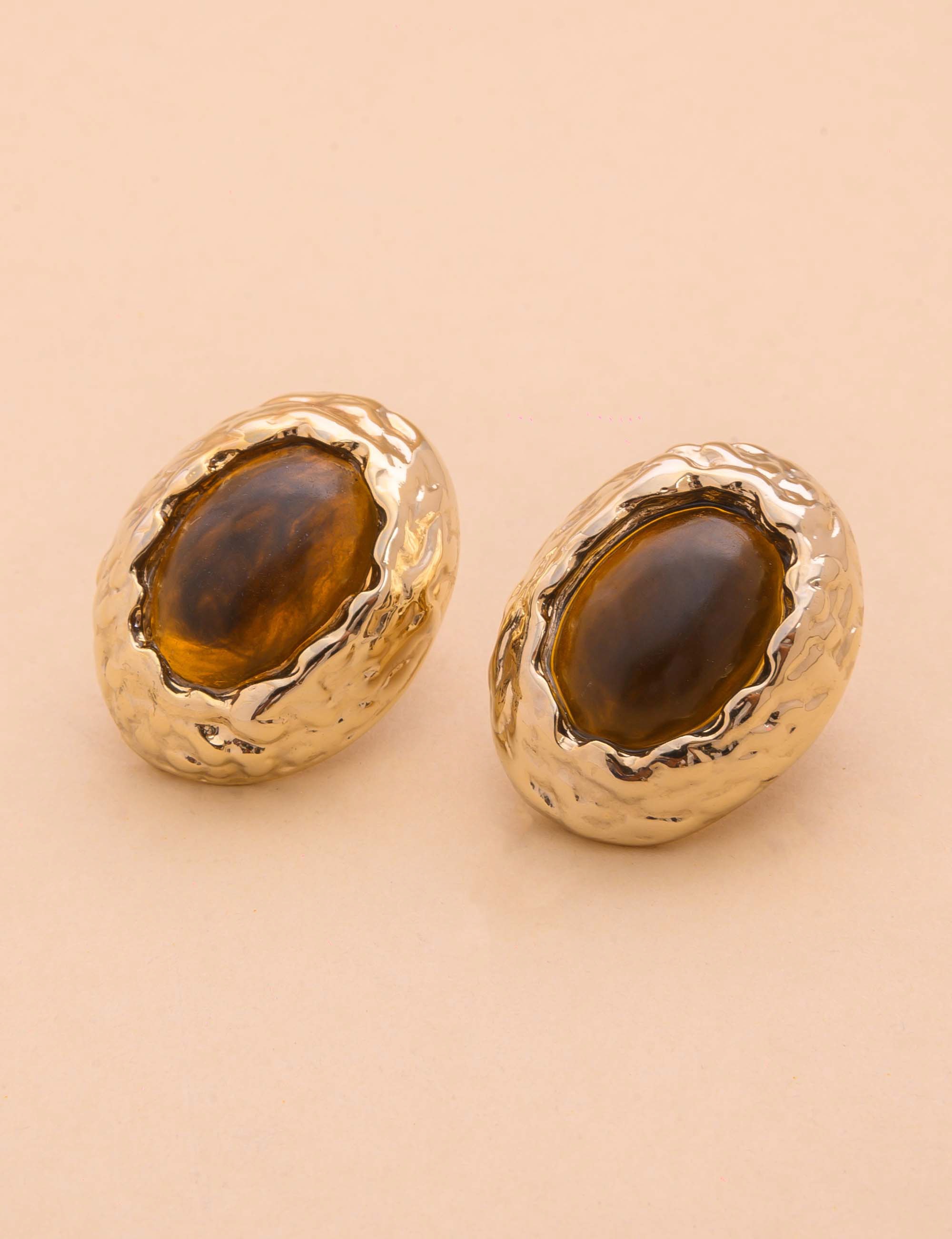 BRINCO OURO OVAL MARROM -BR29143VO03