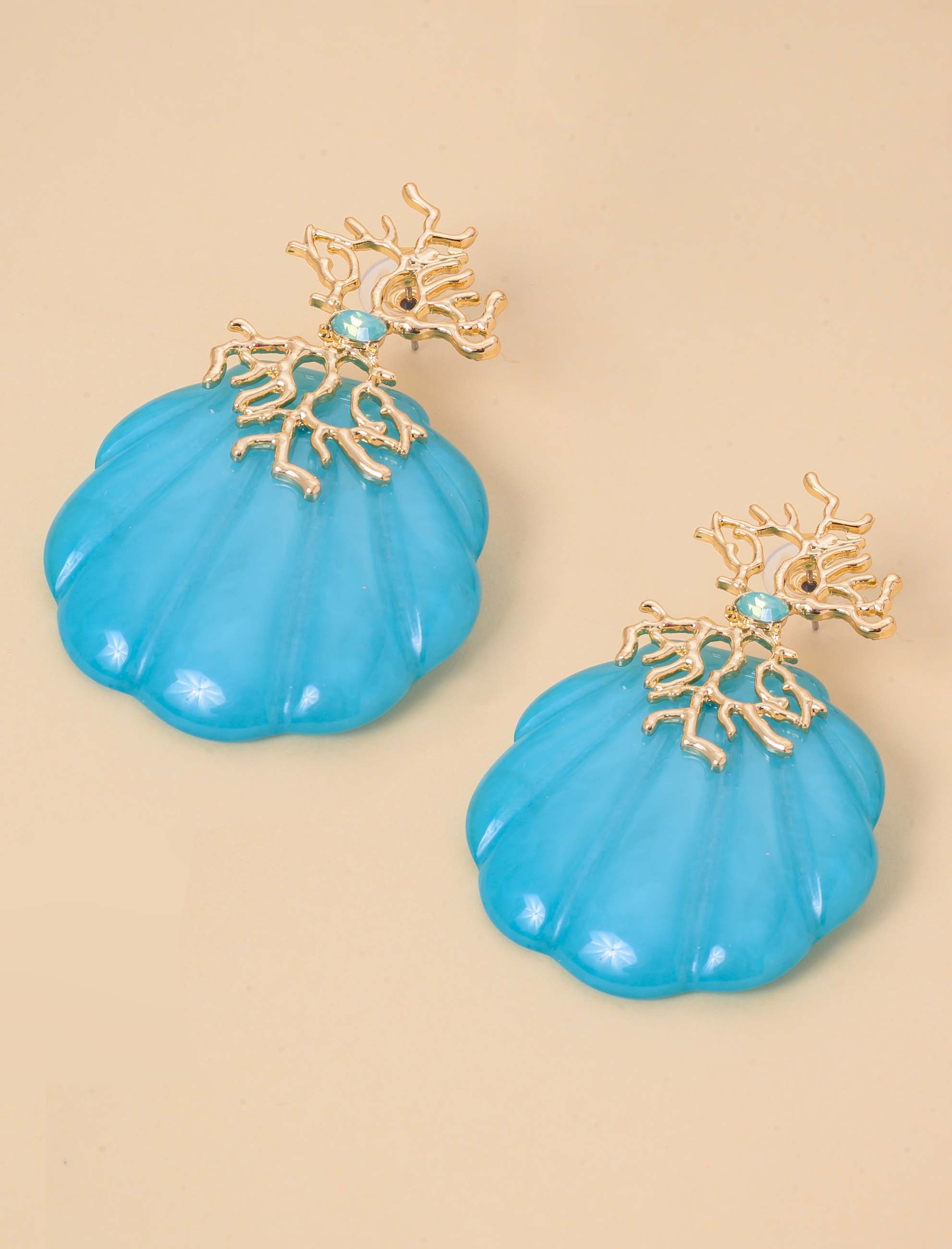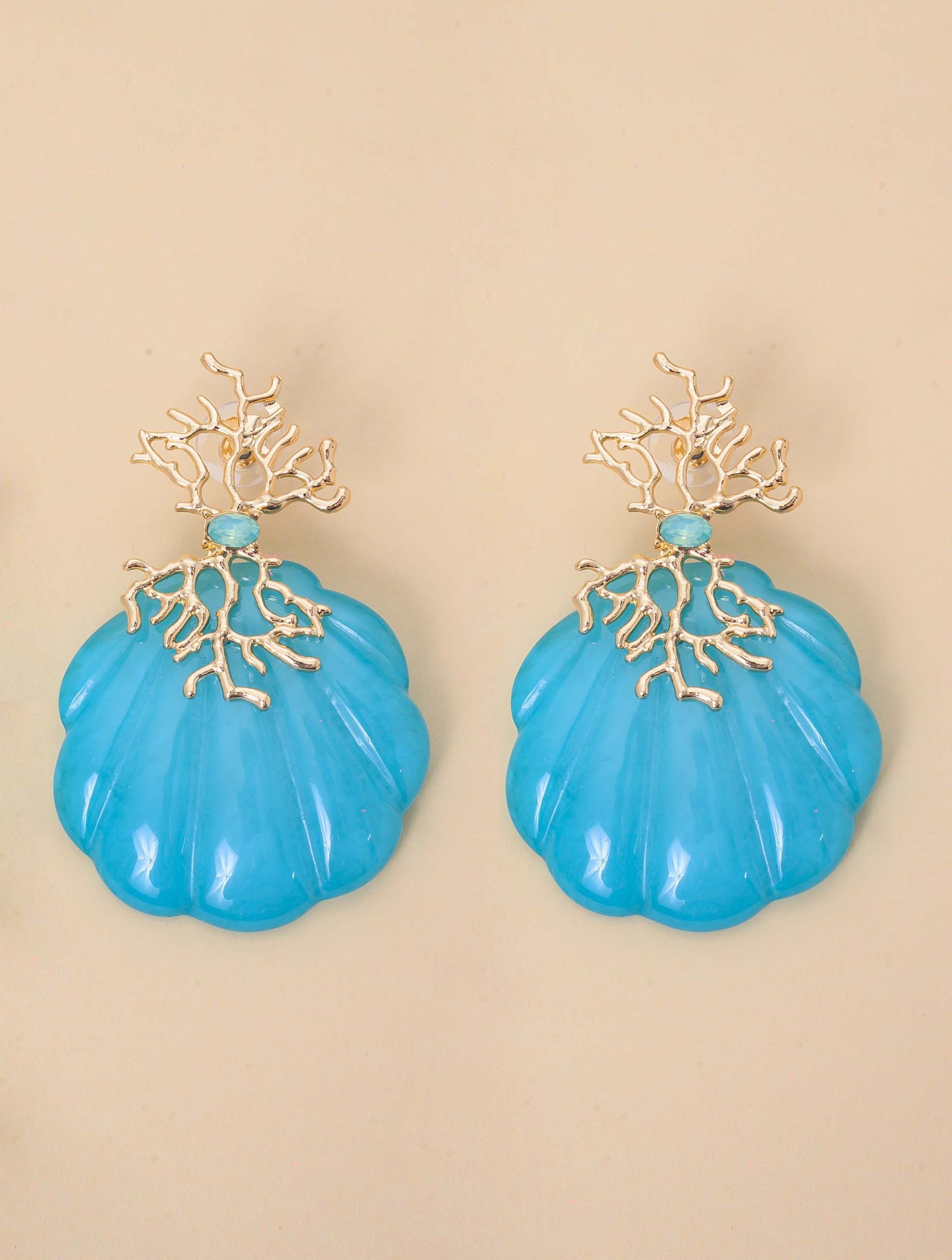 BRINCO OURO RESINA CONCHA AZUL CELESTE - BR29237VO32