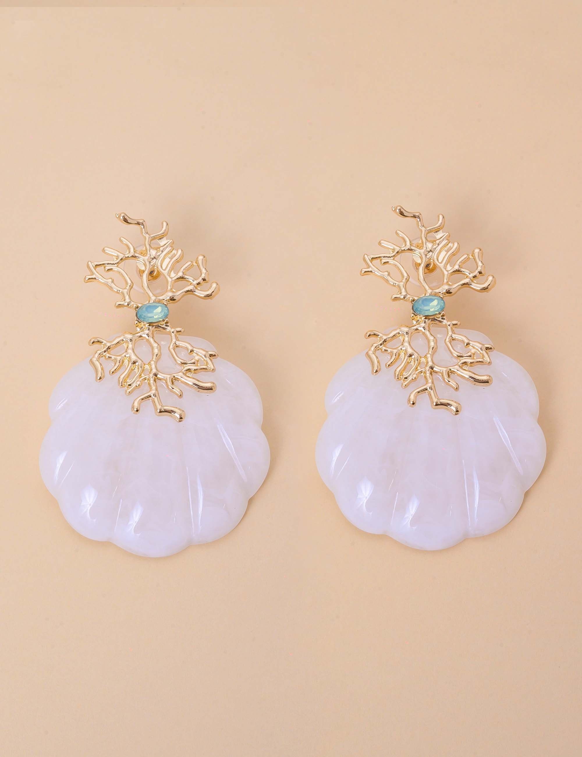 BRINCO OURO RESINA CONCHA AZUL CELESTE - BR29237VO32