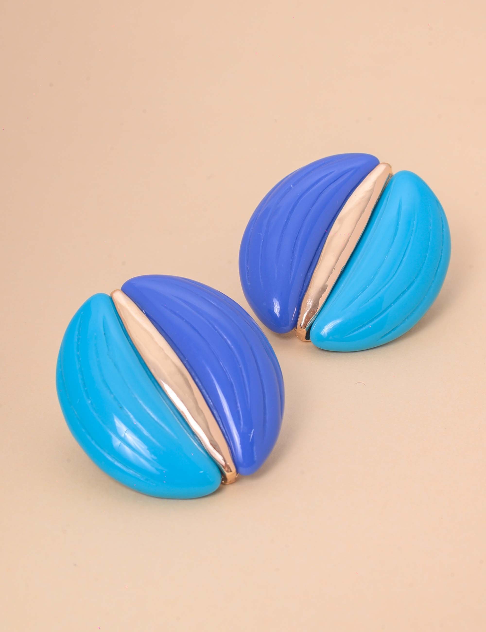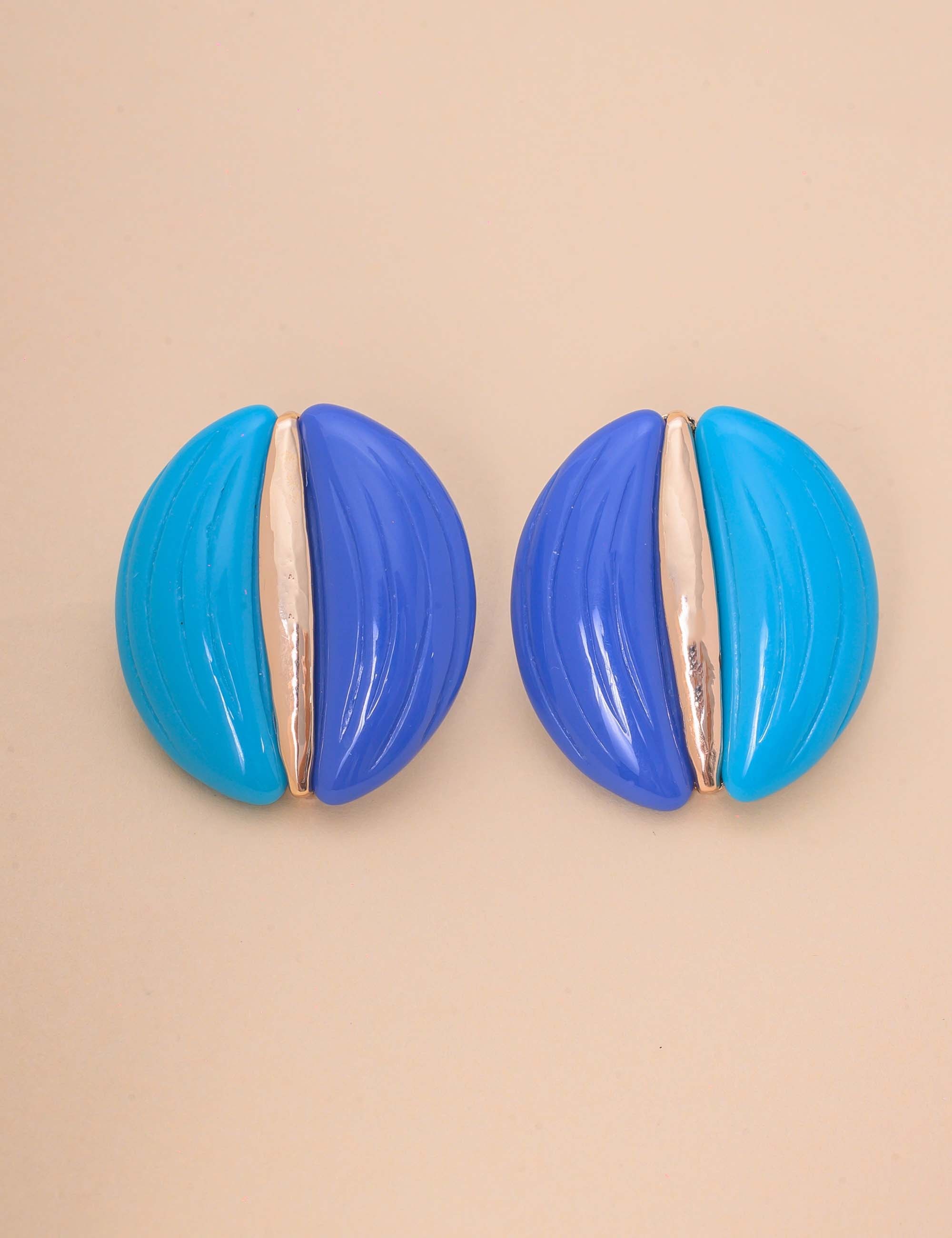 Brinco elegante e moderno, resina azul e verde água, com sua base dourada, é perfeito para quem busca um toque sofisticado no dia a dia, criando um contraste refinado e harmonioso.