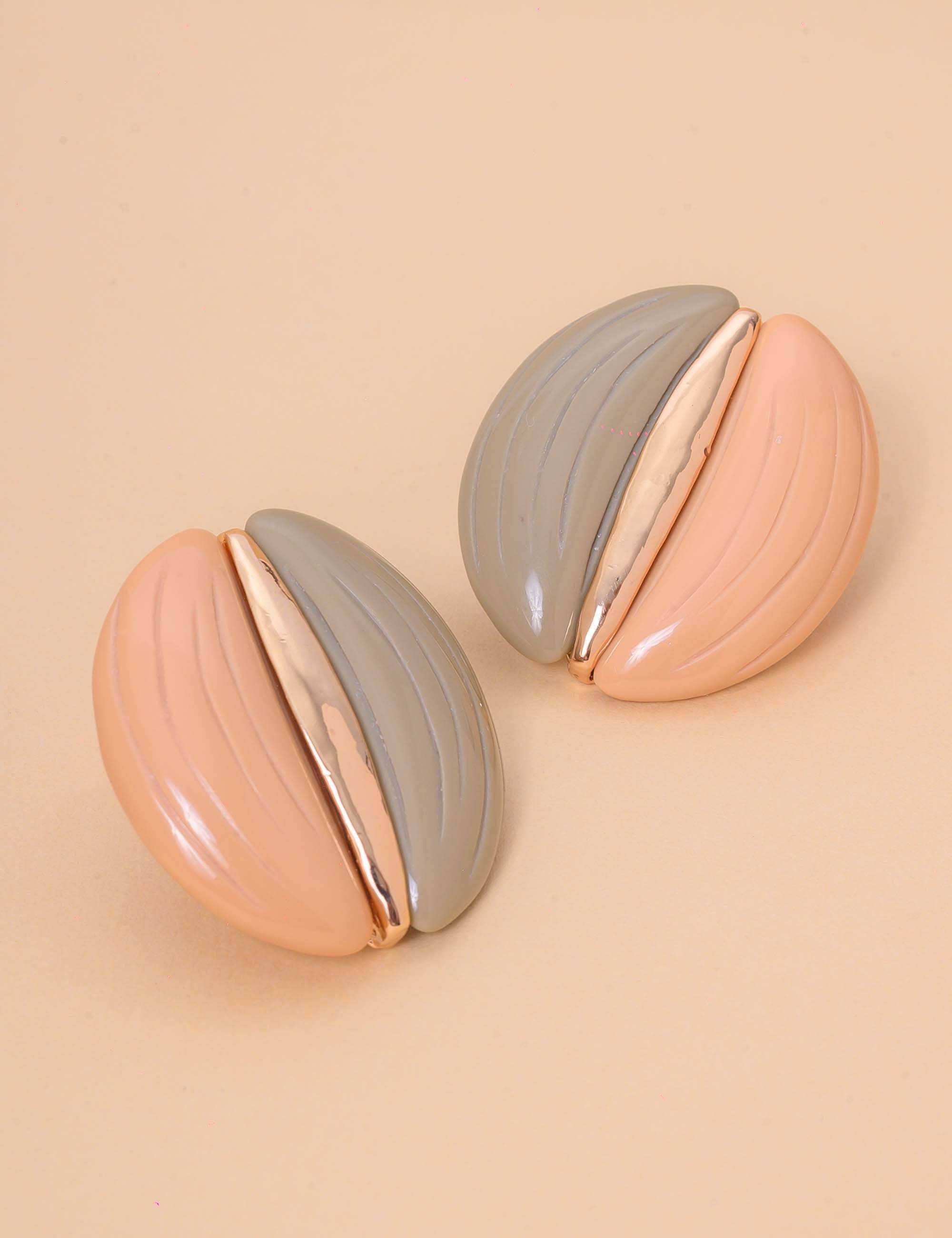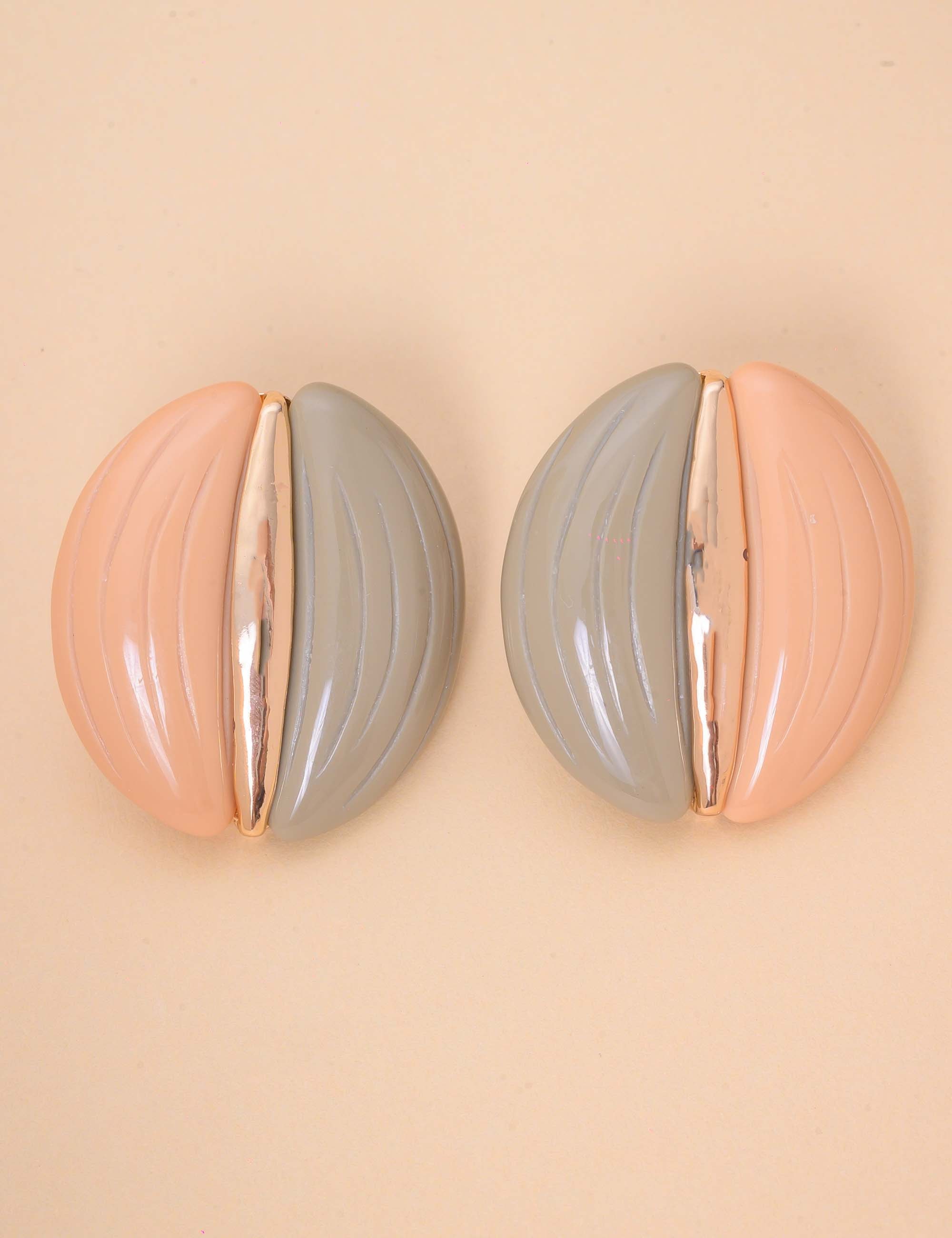 Brinco elegante e moderno, resina verde pastel e nude, com sua base dourada, é perfeito para quem busca um toque sofisticado no dia a dia, criando um contraste refinado e harmonioso.