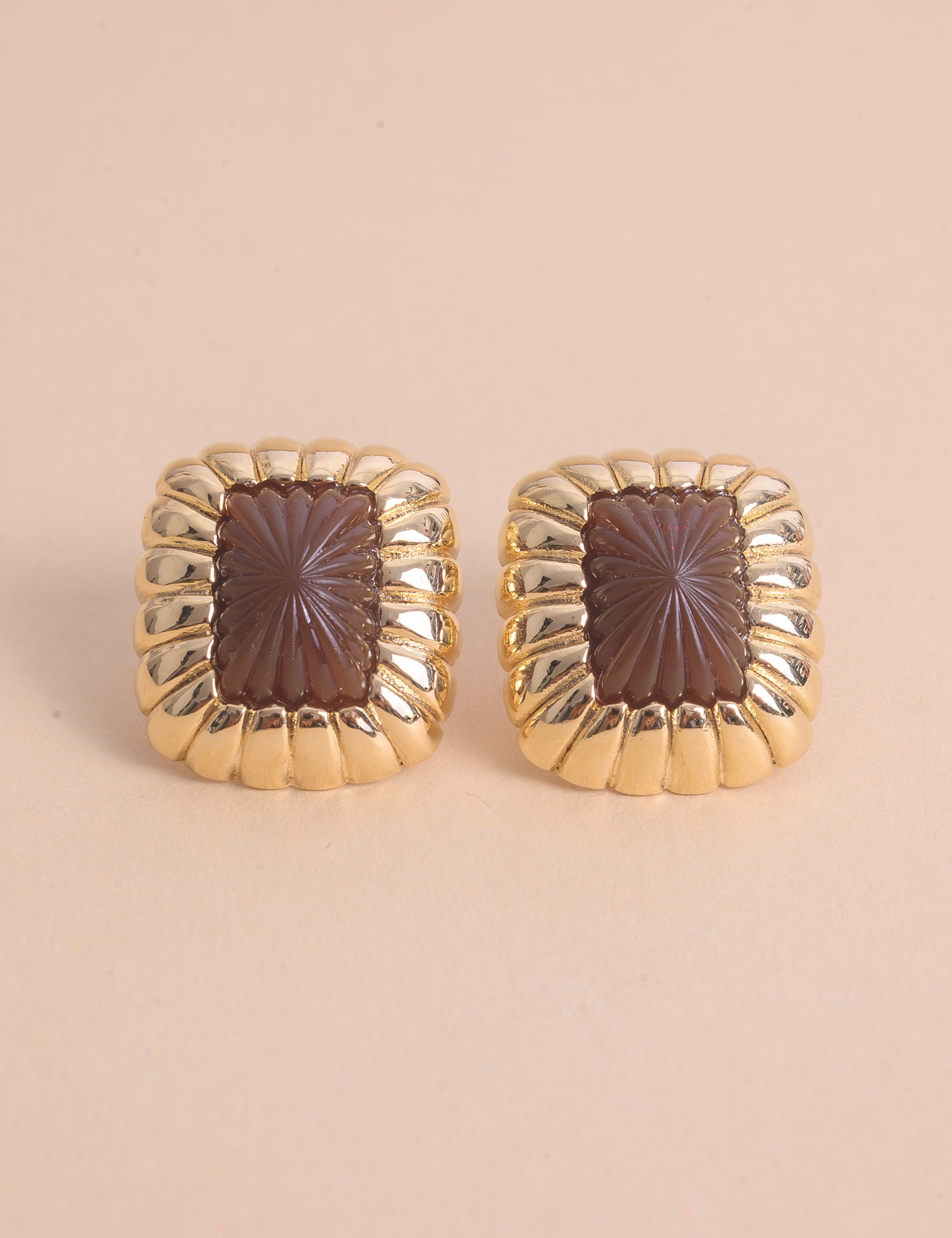 Brinco elegante e moderno, resina marrom, sua base banhada a Ouro é perfeito para quem busca um toque sofisticado no dia a dia, criando um contraste refinado e harmonioso.