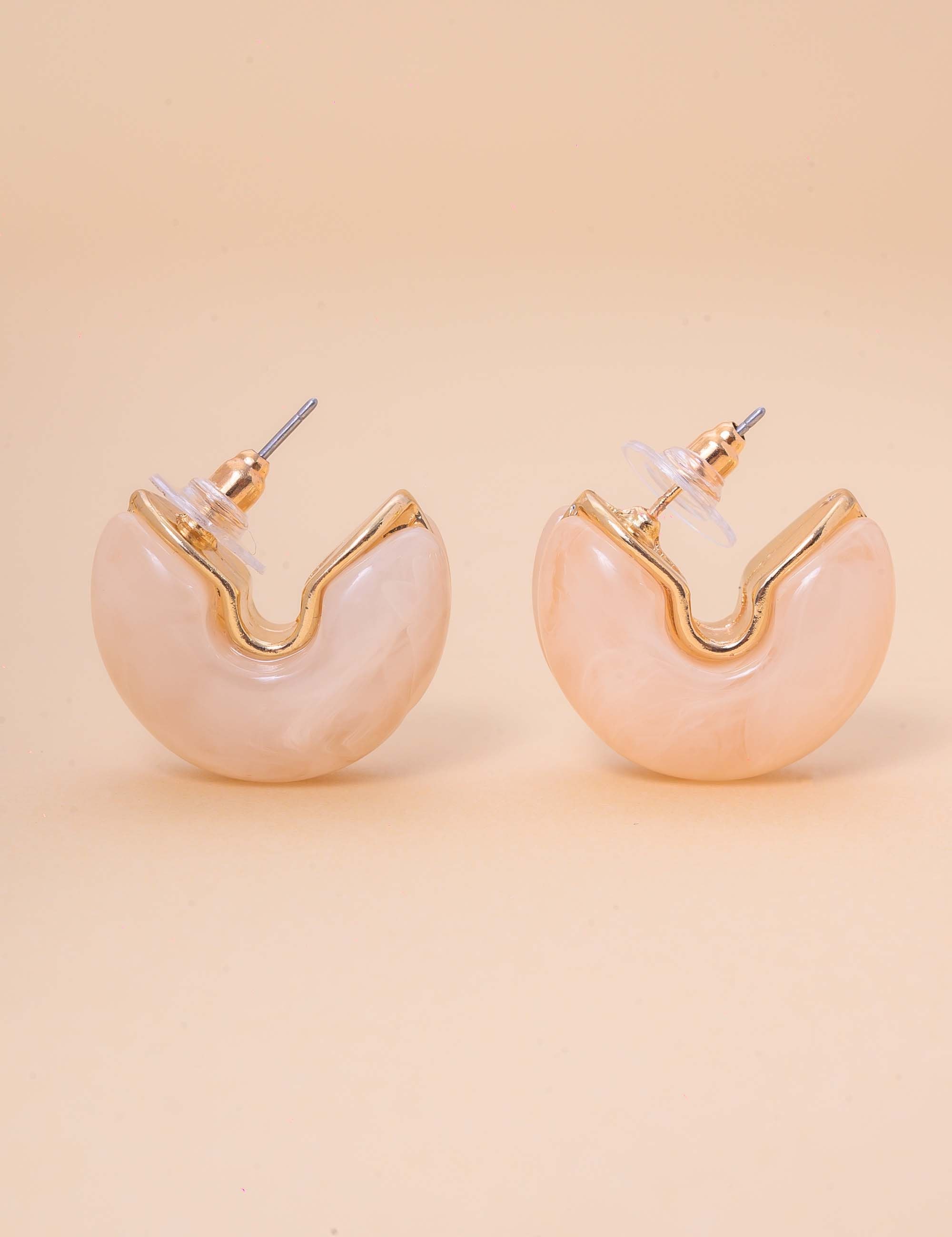 Brinco elegante com resina off- white e toque perolado. Moderno, sofisticado e perfeito para realçar o visual com charme e leveza.