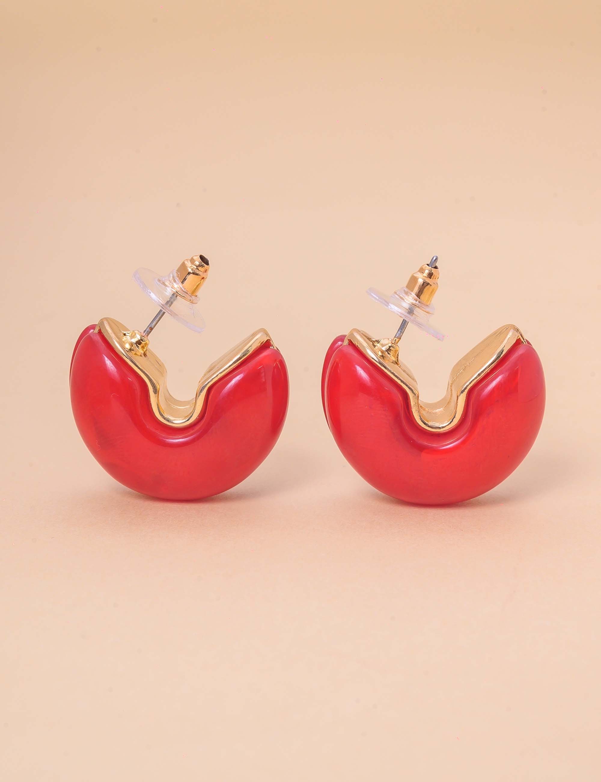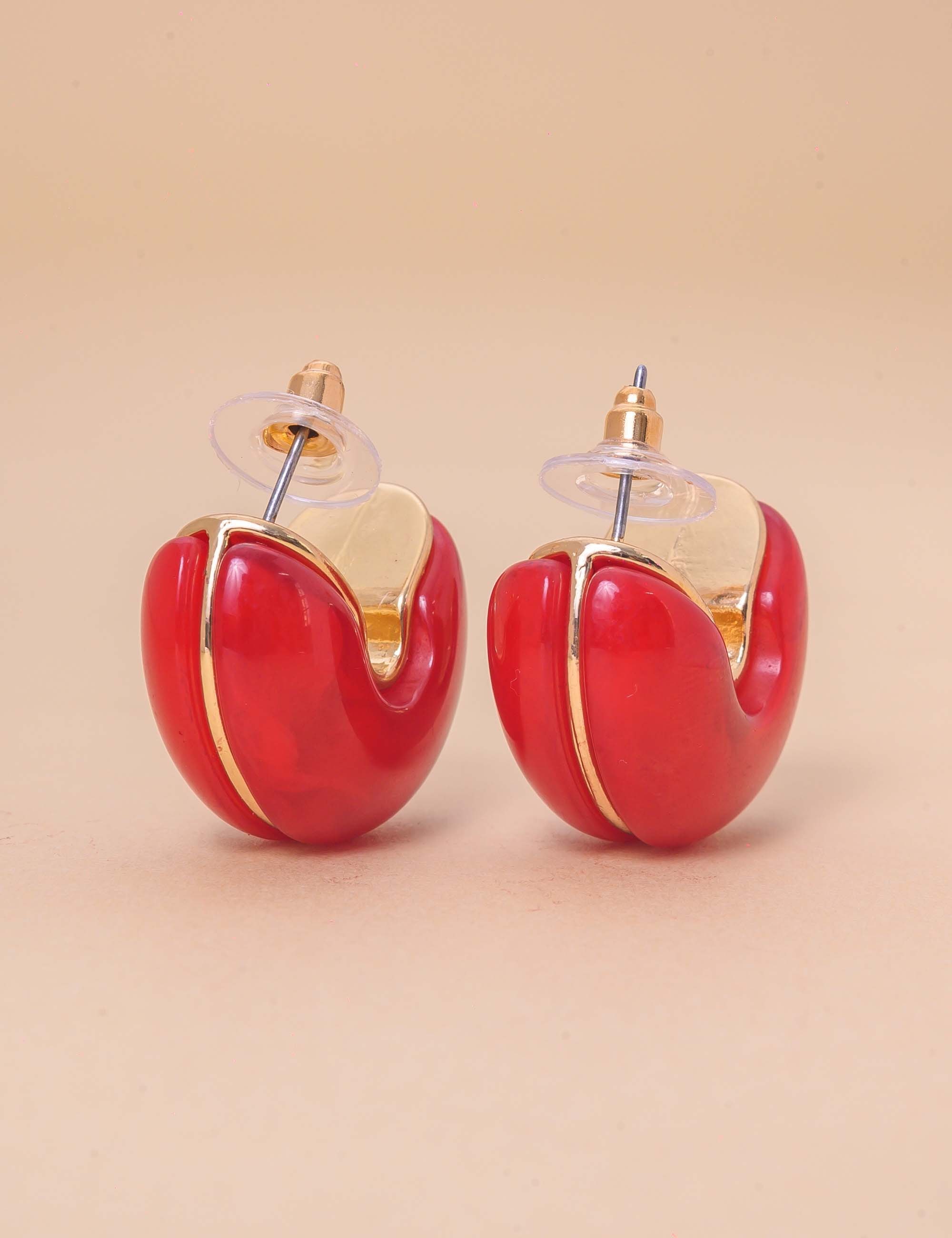 Brinco elegante com resina vermelha e toque perolado. Moderno, sofisticado e perfeito para realçar o visual com charme e leveza.