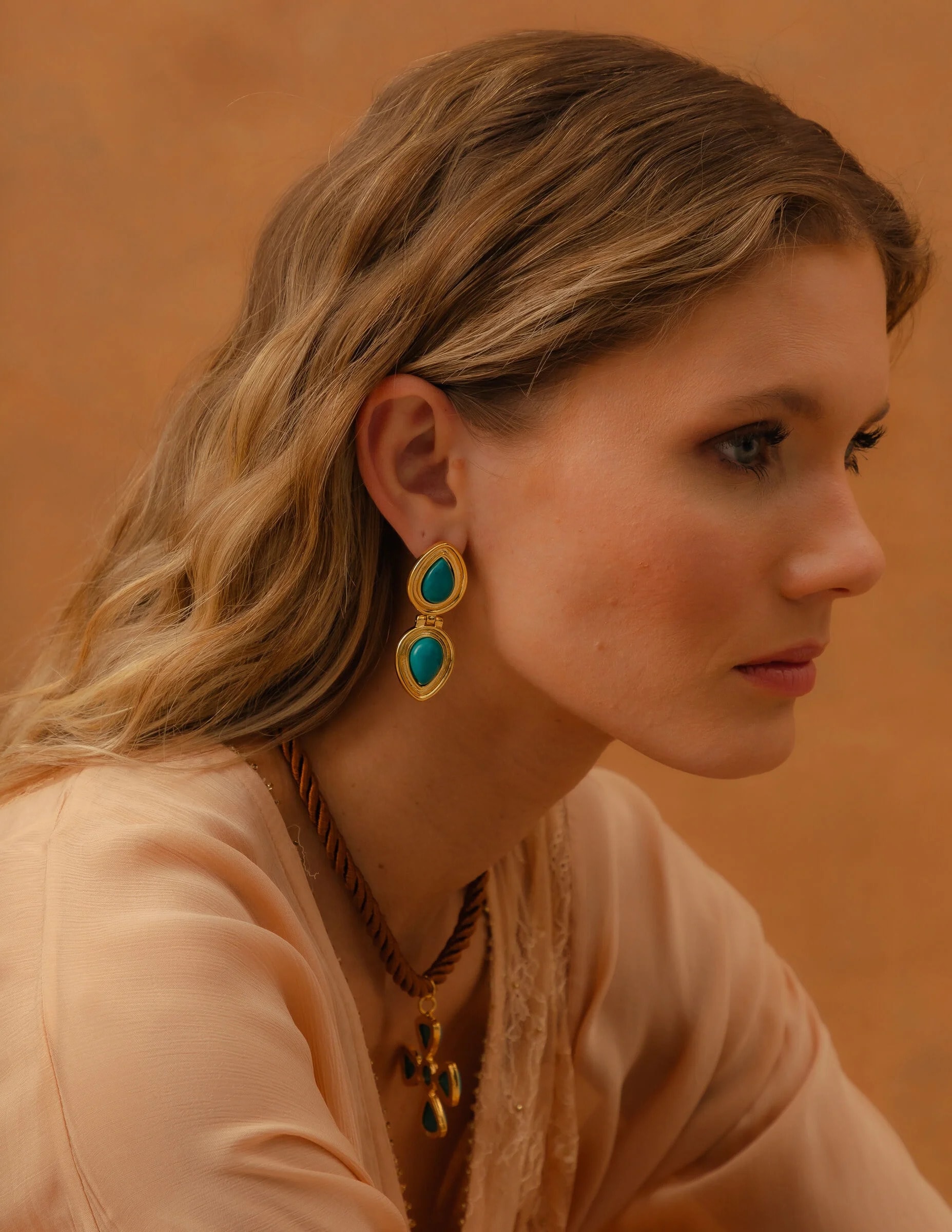 Todos os nossos metais são banhados a ouro, possuem camada protetiva para bijuterias finas e também possuem camada de metal precioso em sua composição. As bijuterias precisam de cuidados, limpe-as com flanela seca e macia, evite contato direto com cosméticos, areia, praia e piscina.