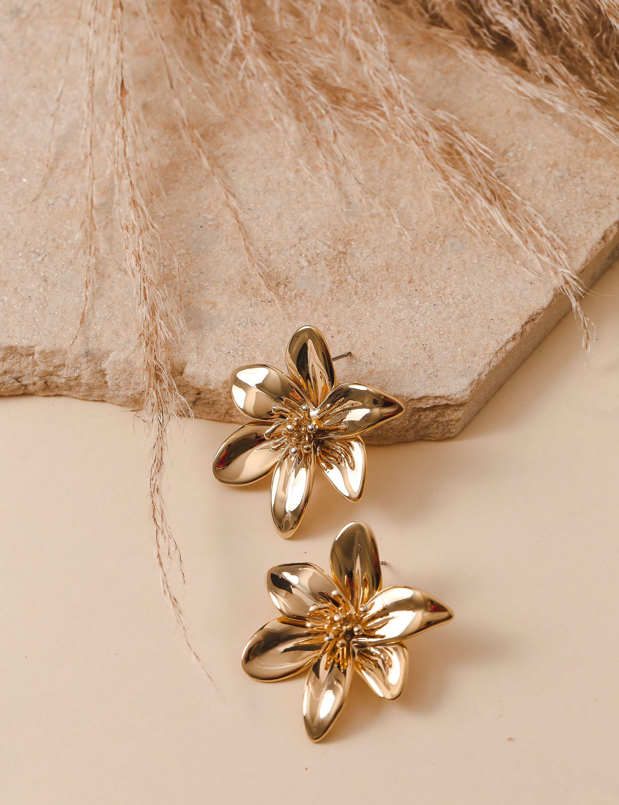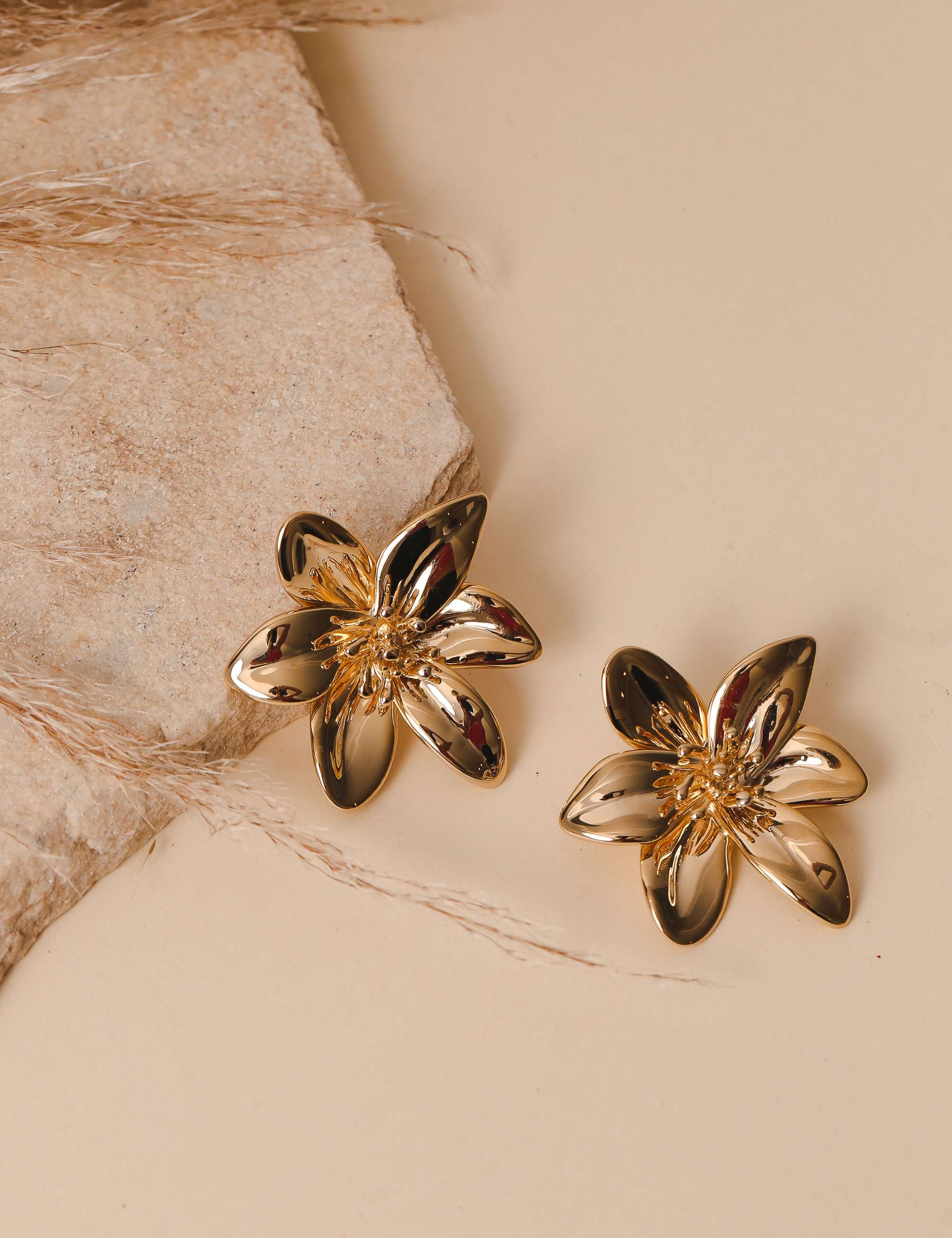 Brinco liso em formato de flor com detalhes no miolo. Peça latao, pino aço cirúrgico, banhado a ouro. As flores traduzem romantismo e ao mesmo tempo estilo, além de trazerem aquele ar mais moderno e sofisticado também.