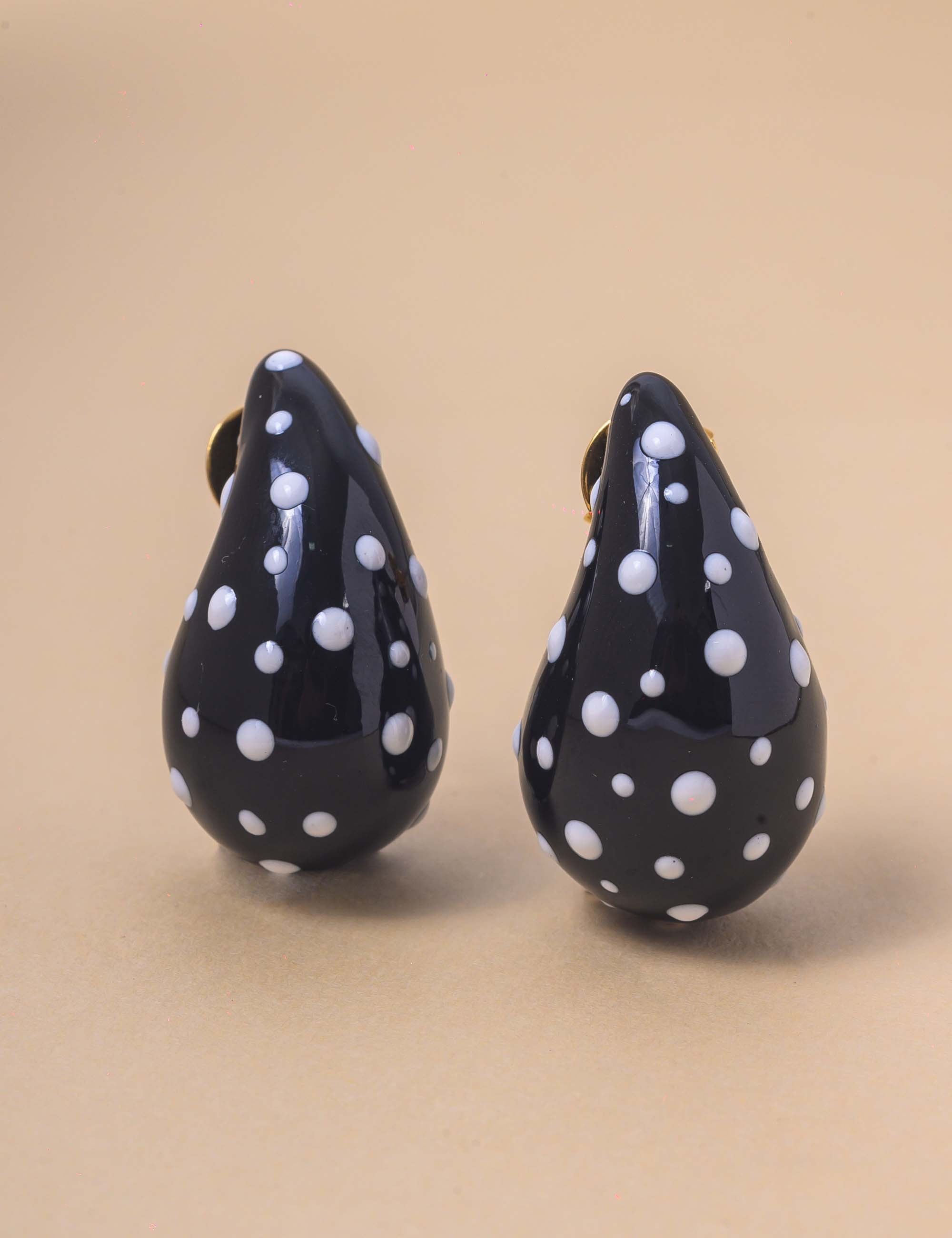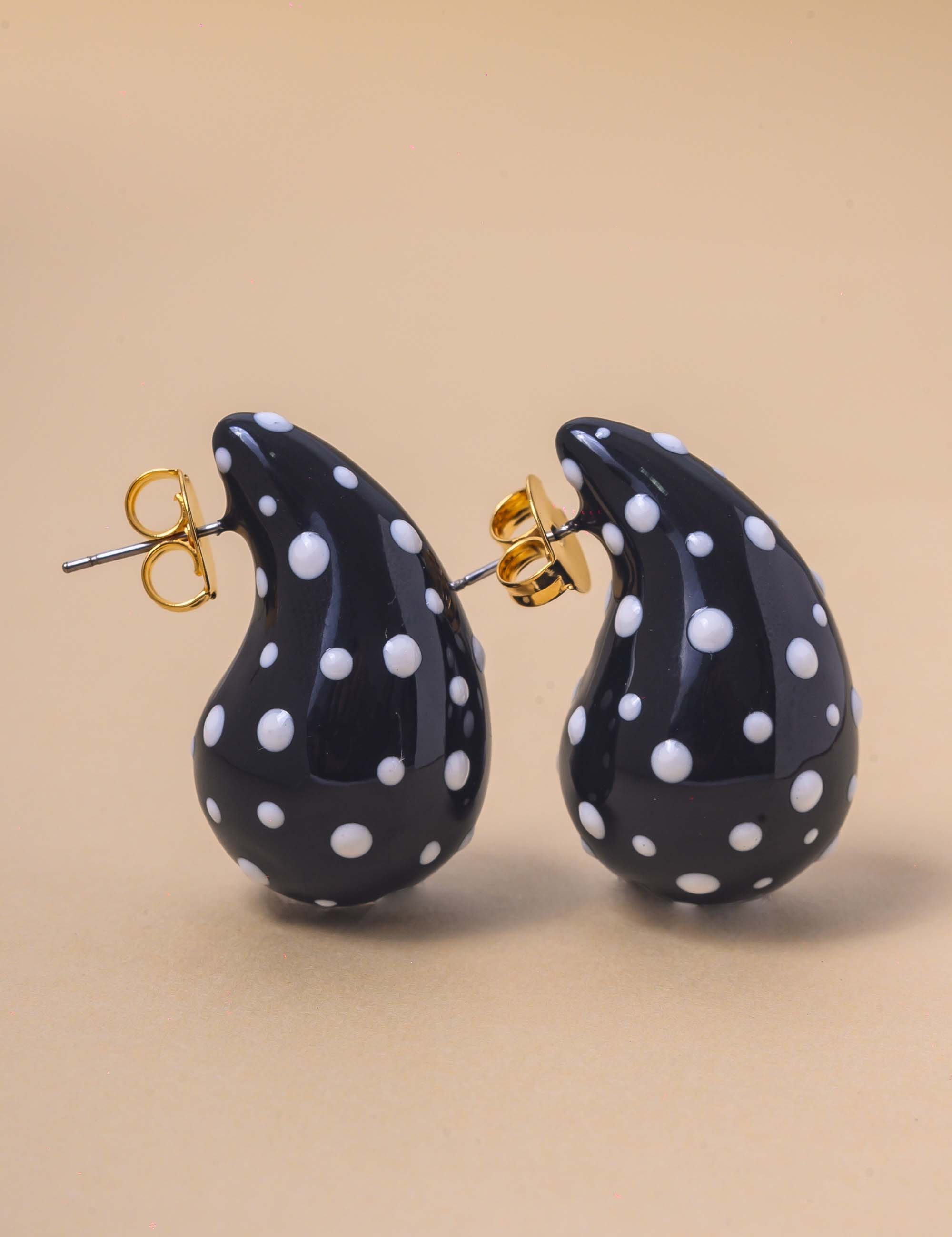 Brinco poá preto, delicado e elegante. Perfeito para adicionar um toque leve e sofisticado ao visual.
