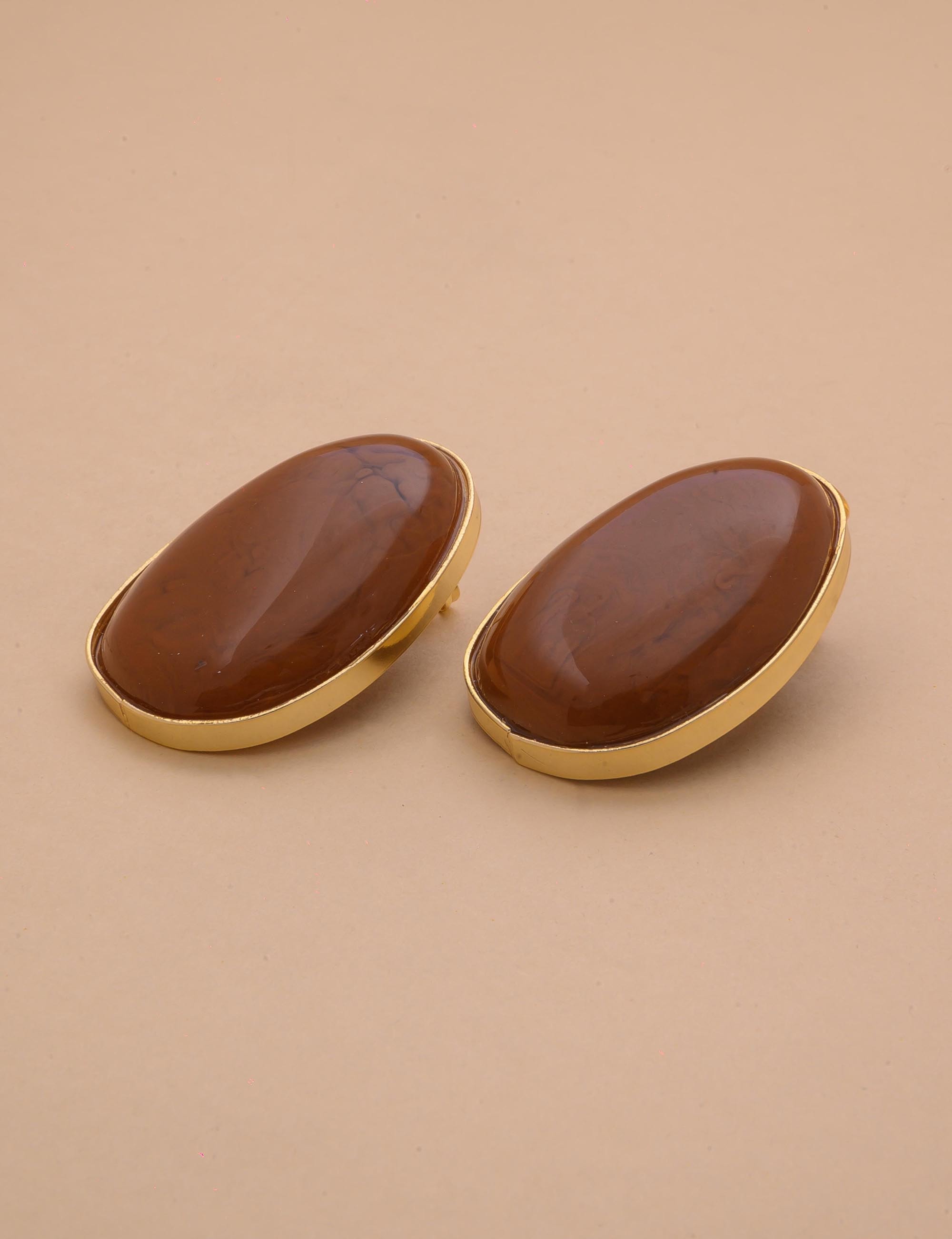 Brinco de resina na cor marrom. Um modelo moderno e estiloso, ideal para compor produções cheias de personalidade.