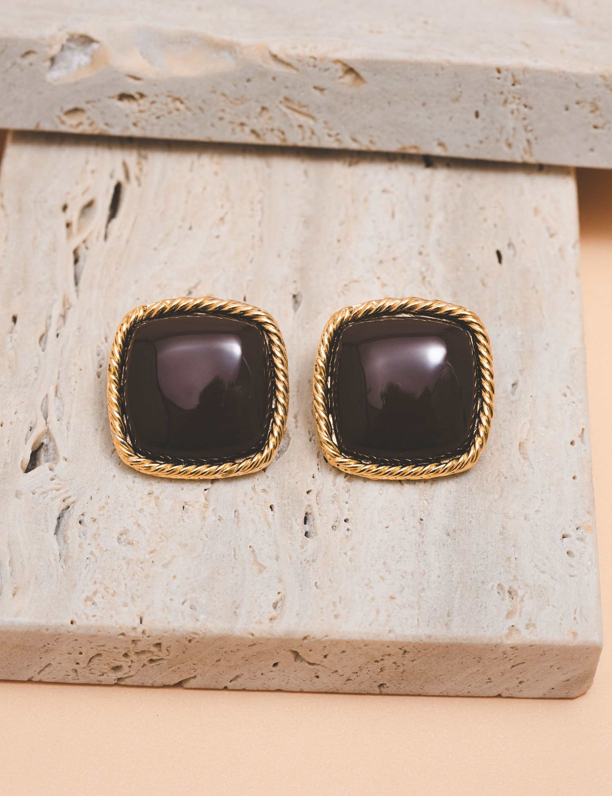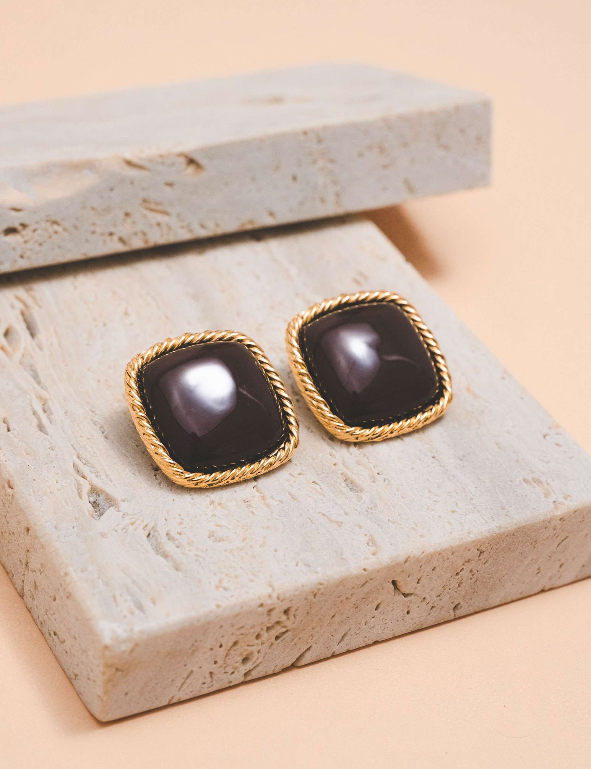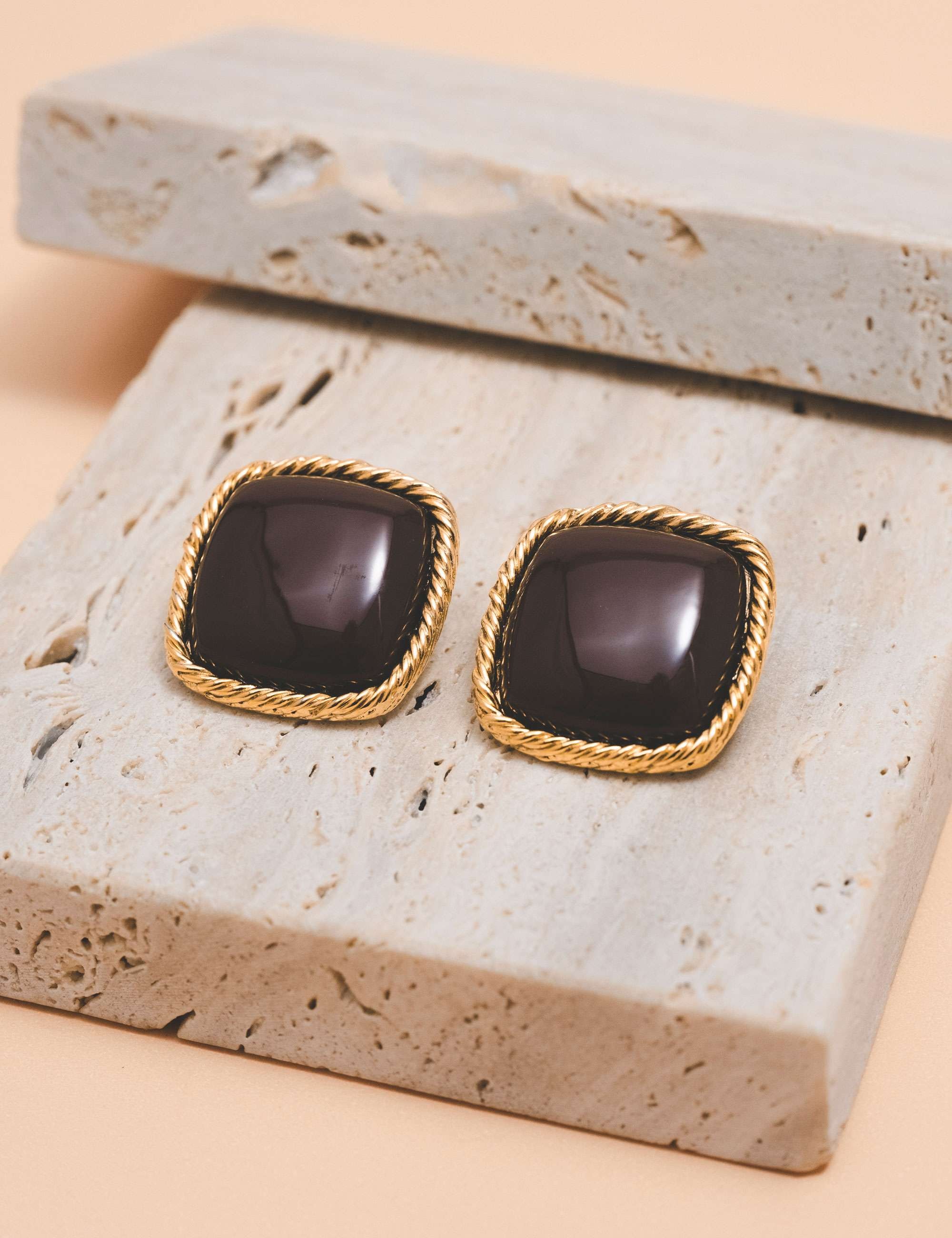 Peça: Brinco em formato quadrado em tons café com detalhes em ouro. Os acessórios orgânicos são a escolha perfeita para quem busca adicionar um toque de estilo e elegância ao seu visual.