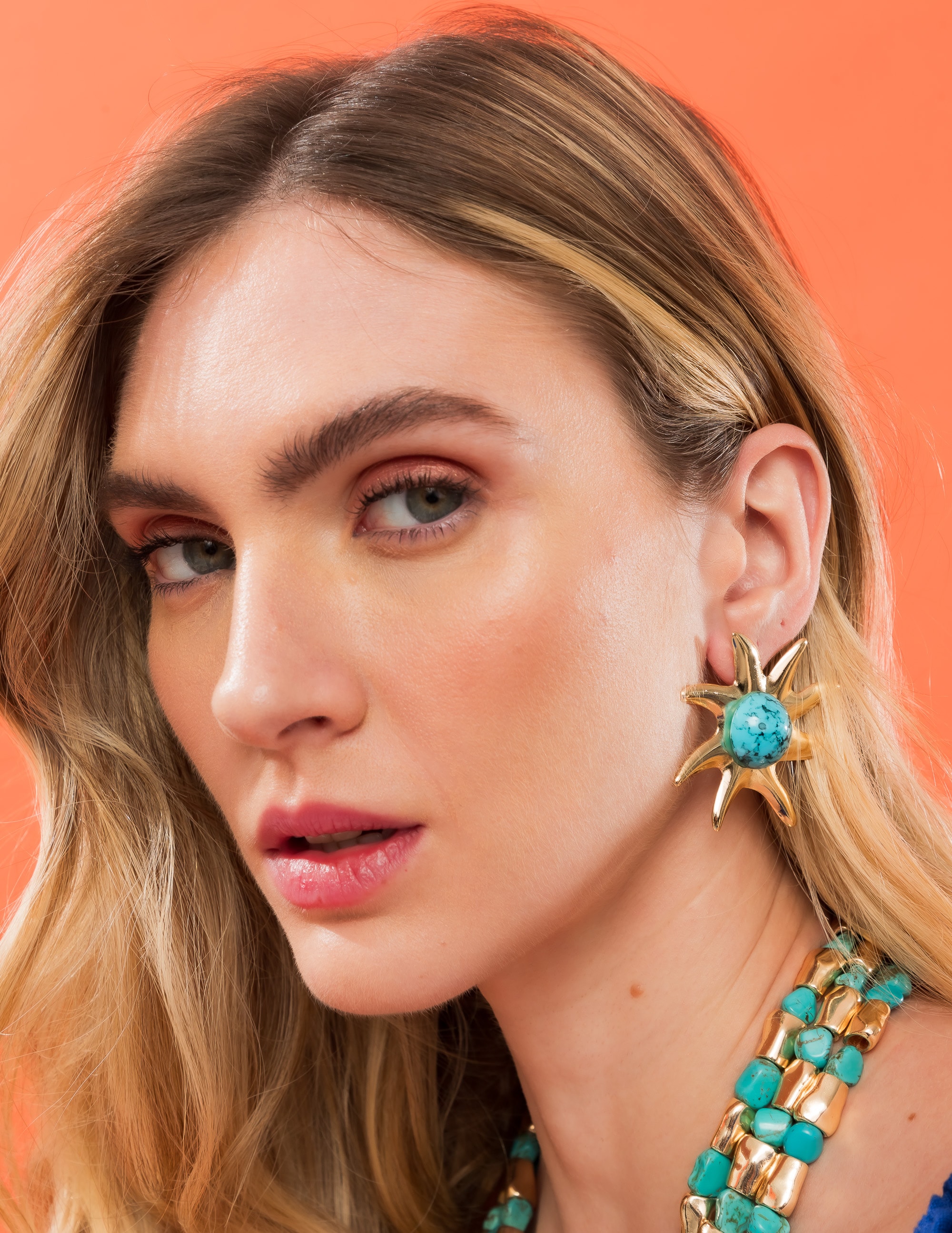 Todos os nossos metais são banhados a ouro, possuem camada protetiva para bijuterias finas e também possuem camada de metal precioso em sua composição. As bijuterias precisam de cuidados, limpe-as com flanela seca e macia, evite contato direto com cosméticos, areia, praia e piscina.