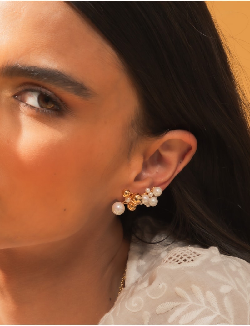 Todos os nossos metais são banhados a ouro, possuem camada protetiva para bijuterias finas e também possuem camada de metal precioso em sua composição. As bijuterias precisam de cuidados, limpe-as com flanela seca e macia, evite contato direto com cosméticos, areia, praia e piscina.