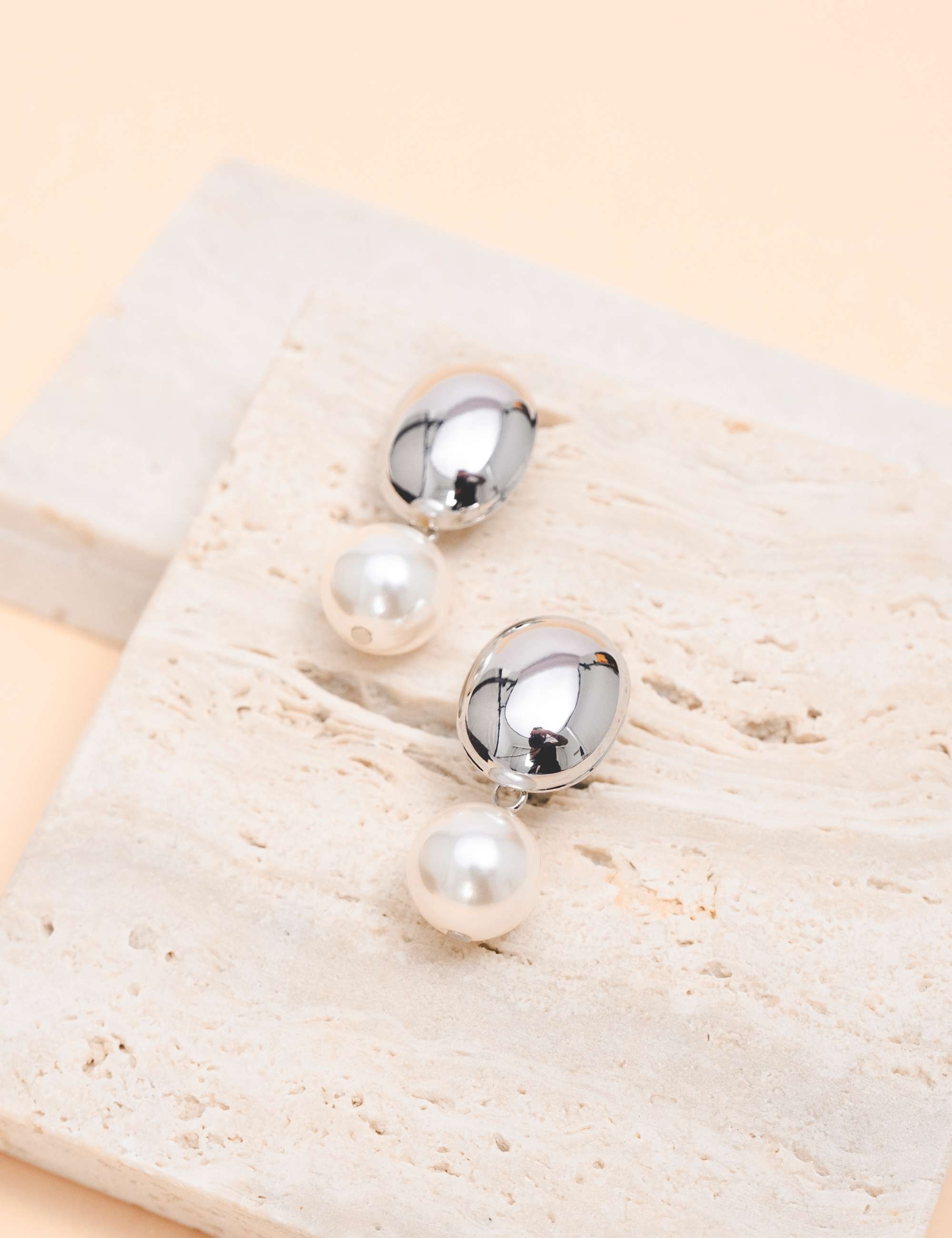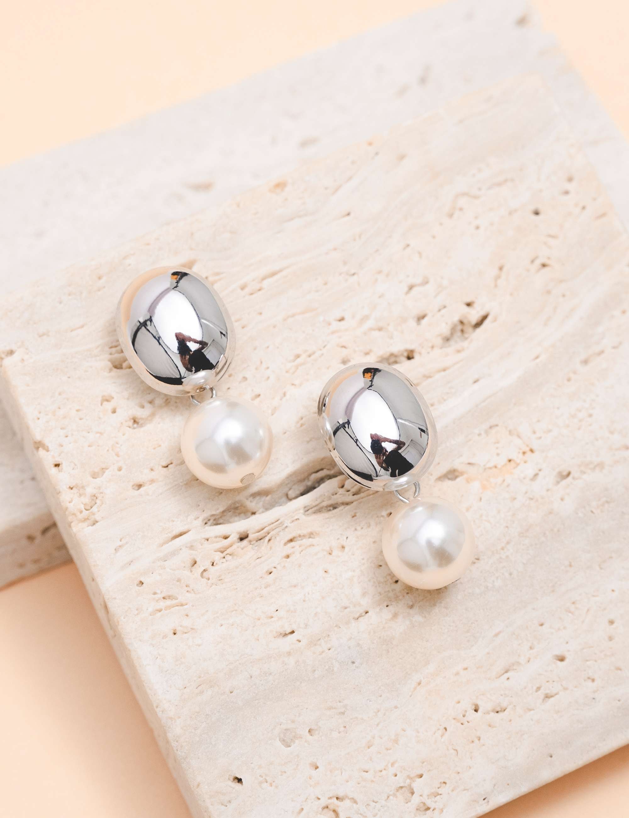 Peça: Brinco em base oval abaulada, pêndulo esfera com pérola resinada. Ideal para dar aquele up no look.