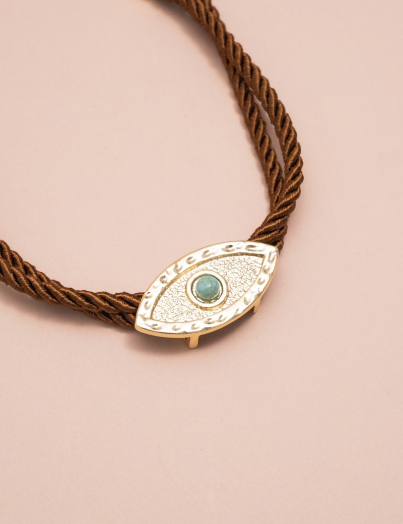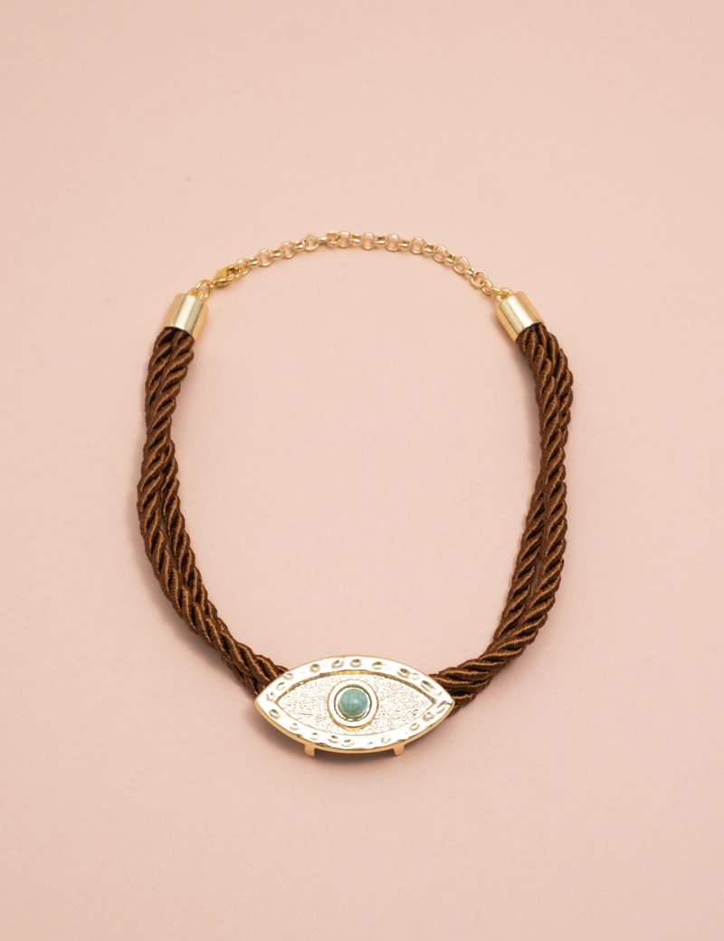 Choker com pedra turquesa, uma peça marcante que combina a elegância do banho em ouro com o charme natural da pedra. O design delicado valoriza o colo e traz um toque sofisticado e moderno ao visual.