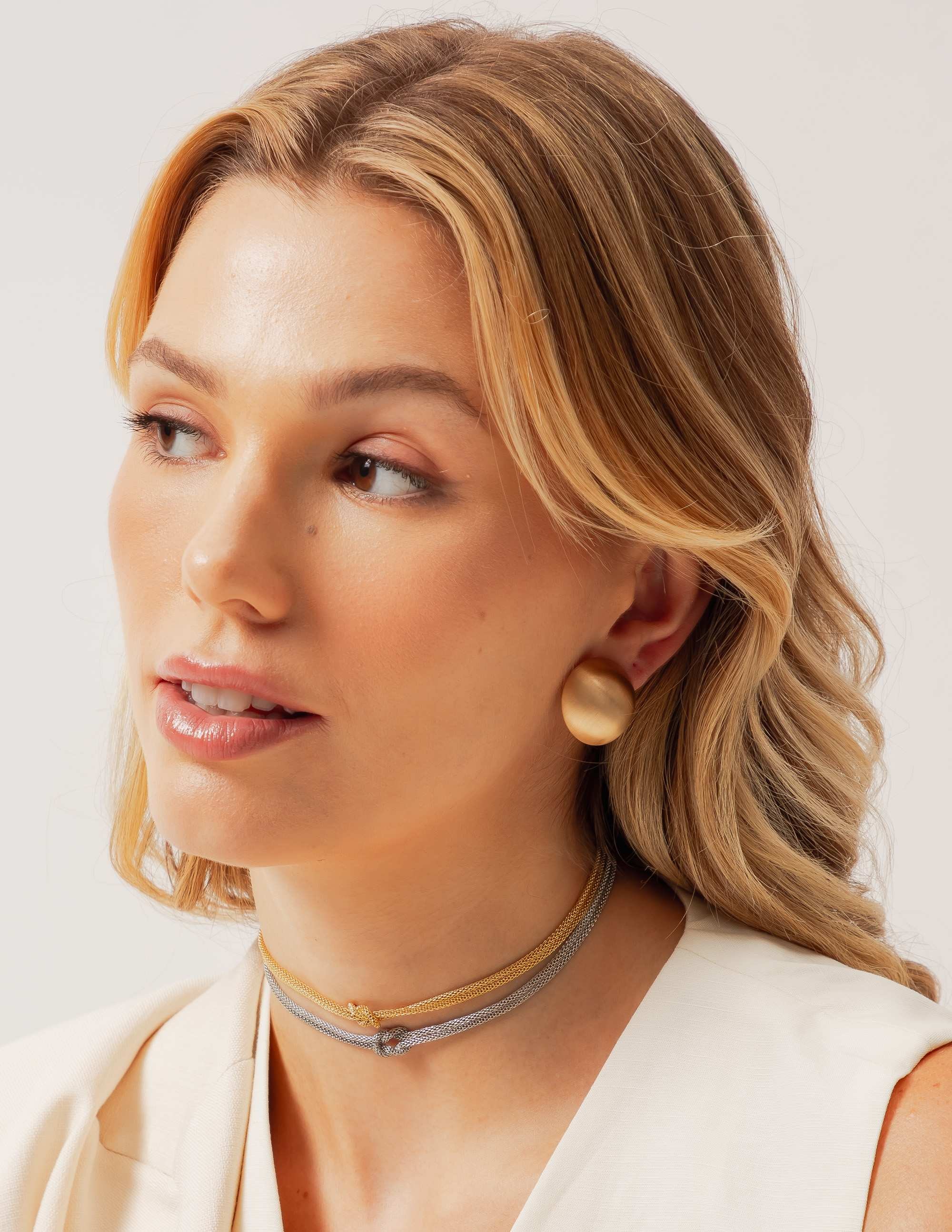 Todos os nossos metais são banhados a ouro, possuem camada protetiva para bijuterias finas e também possuem camada de metal precioso em sua composição. As bijuterias precisam de cuidados, limpe-as com flanela seca e macia, evite contato direto com cosméticos, areia, praia e piscina.