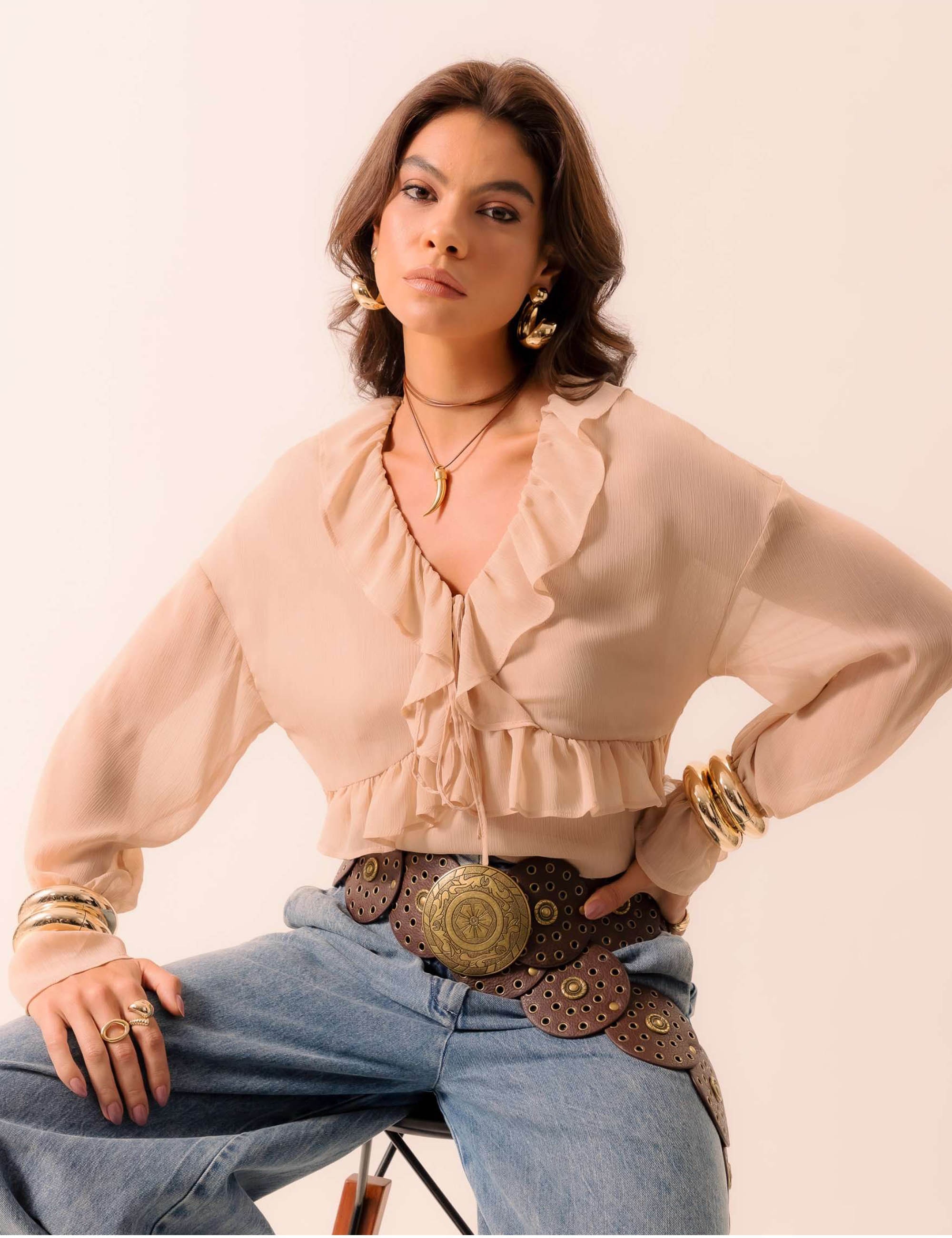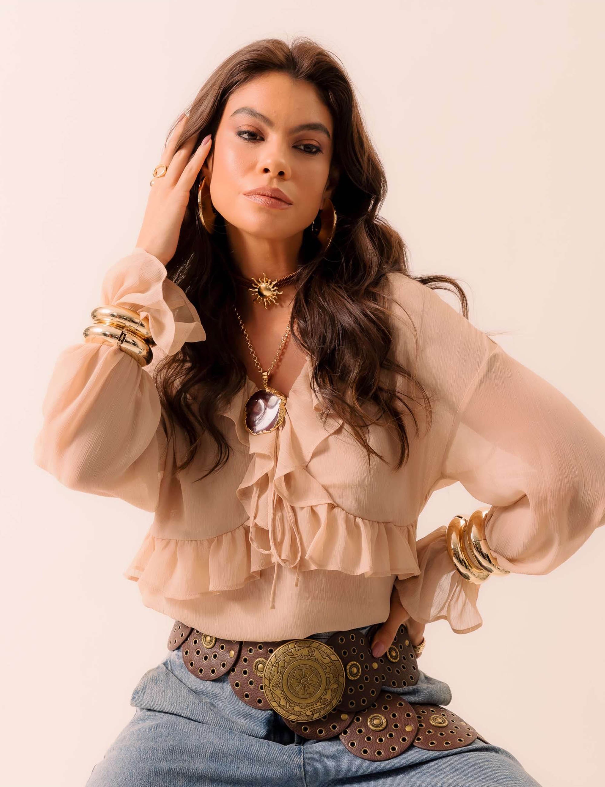 Todos os nossos metais são banhados a ouro, possuem camada protetiva para bijuterias finas e também possuem camada de metal precioso em sua composição. As bijuterias precisam de cuidados, limpe-as com flanela seca e macia, evite contato direto com cosméticos, areia, praia e piscina.