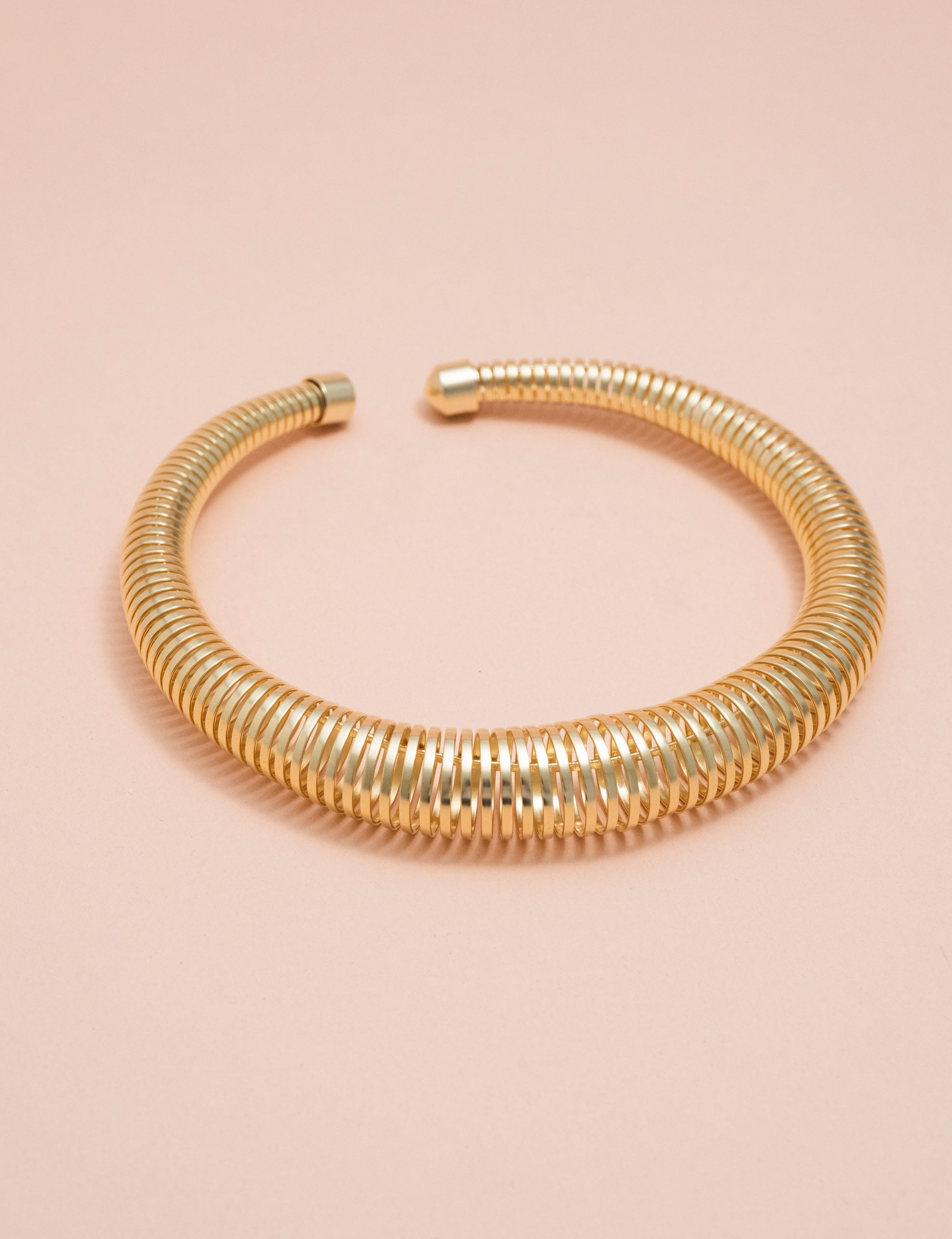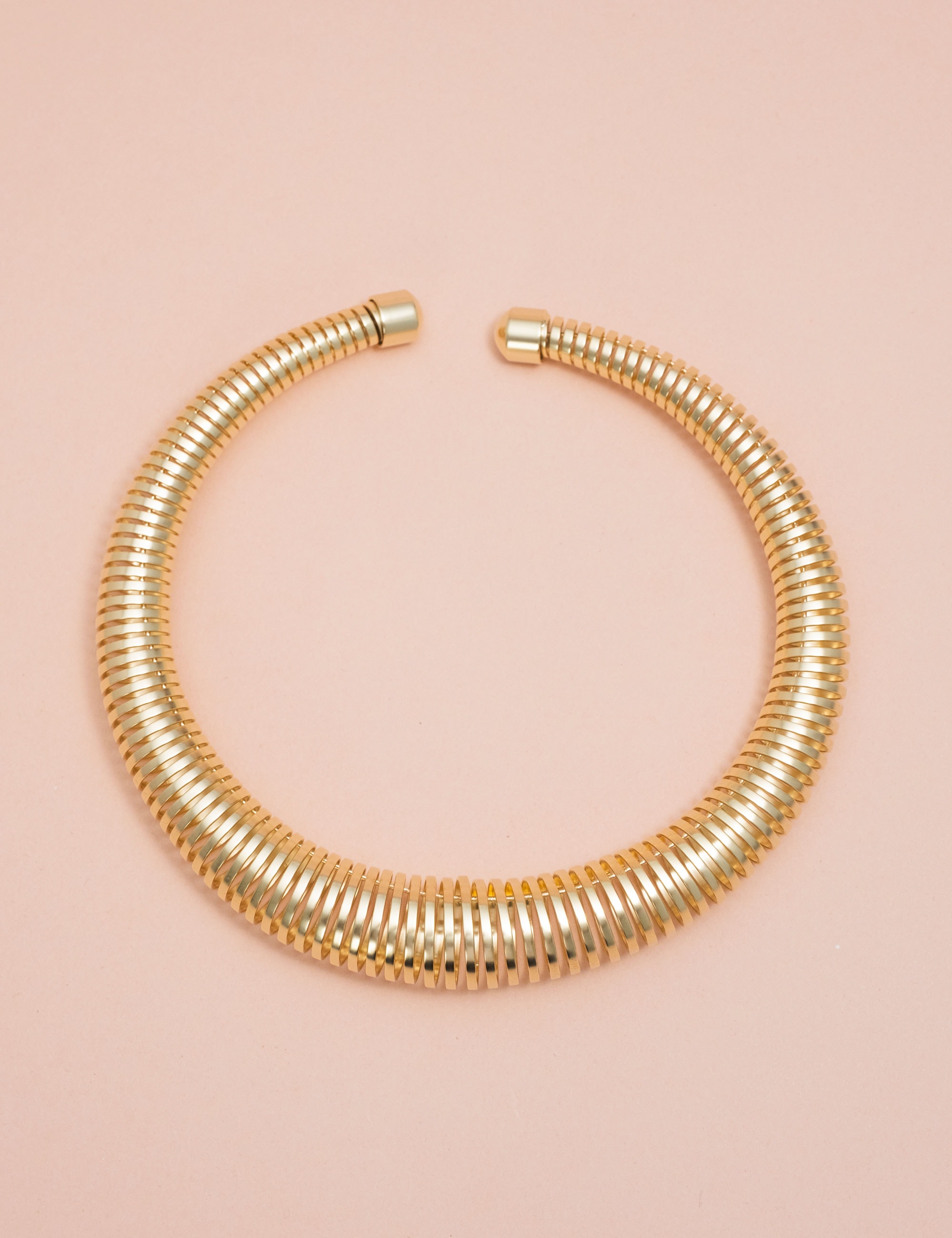 Peça: Colar mola aro no banho ouro, peça que traz conceito e versatilidade no uso, perfeito para quem busca um acessório como o o ponto focal do look.