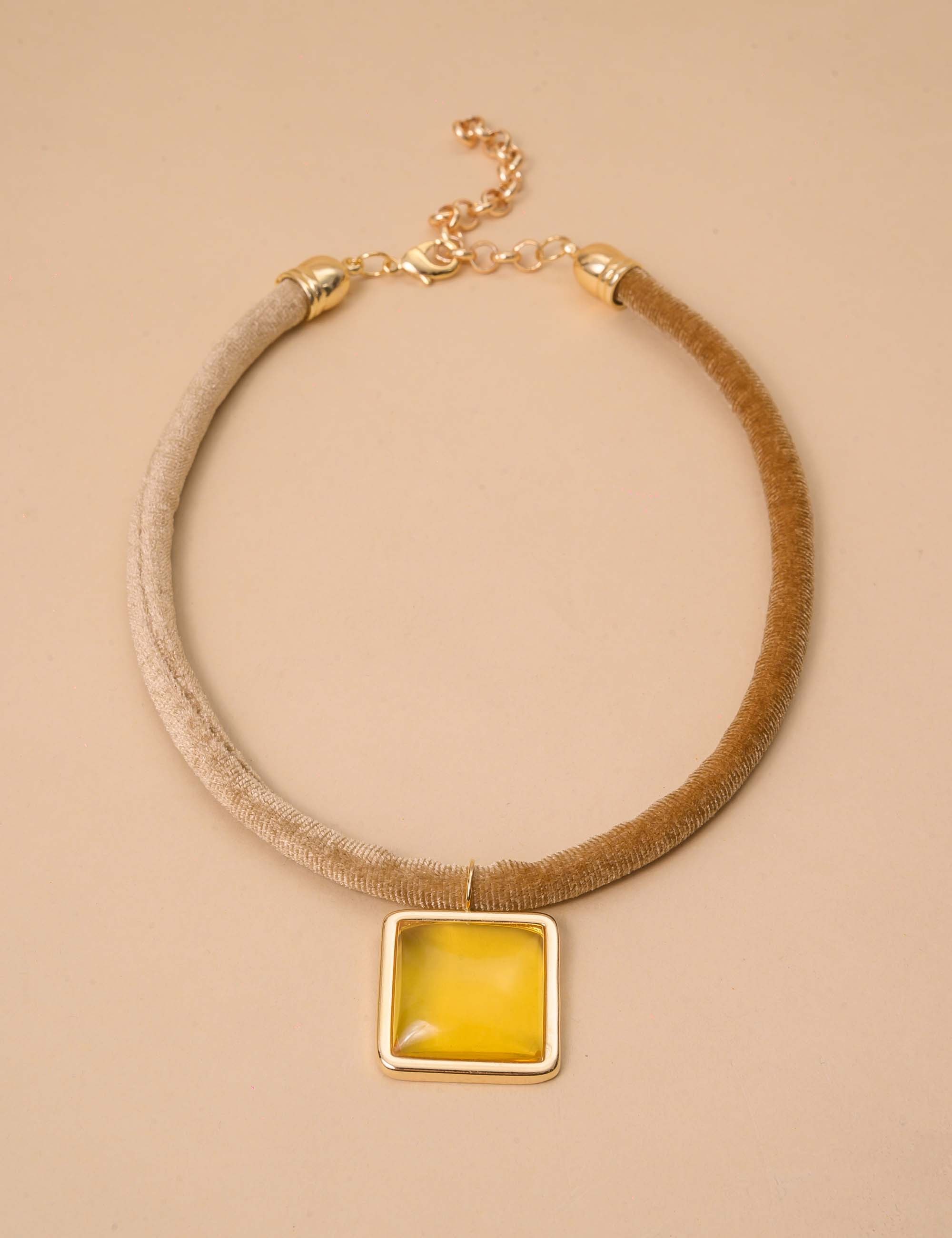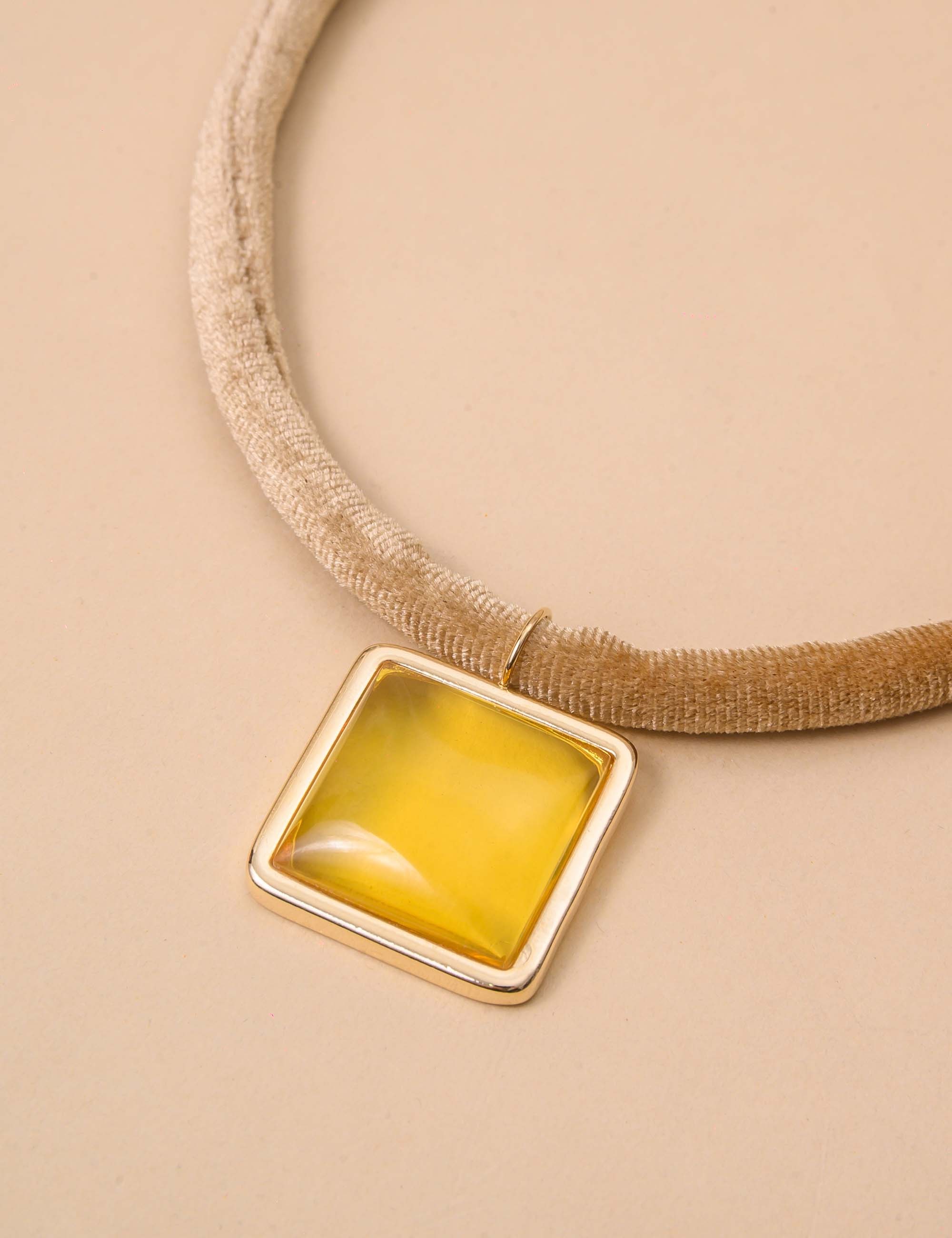 COLAR BEGE PINGENTE QUADRADO AMARELO CITRINO - CO29212VO04