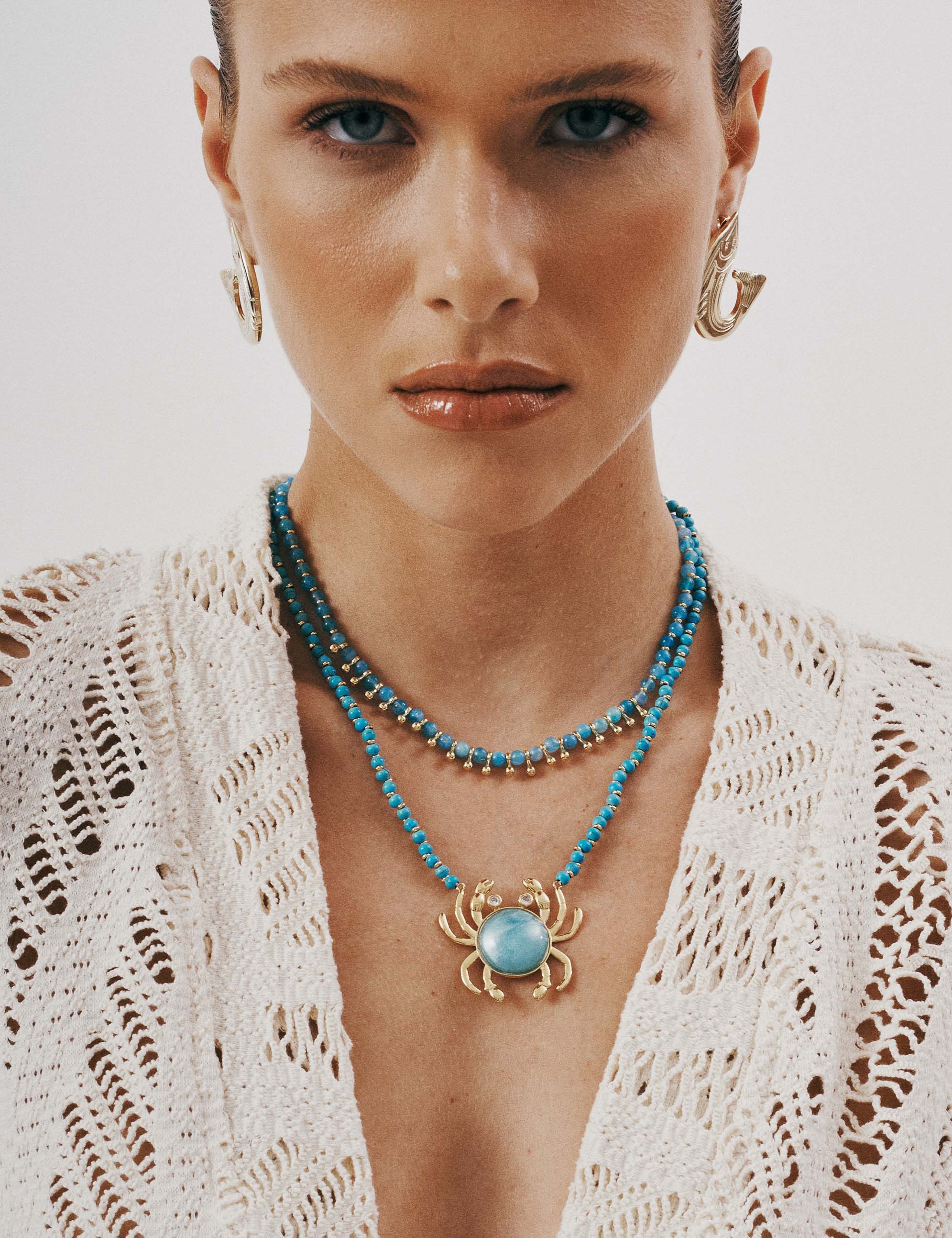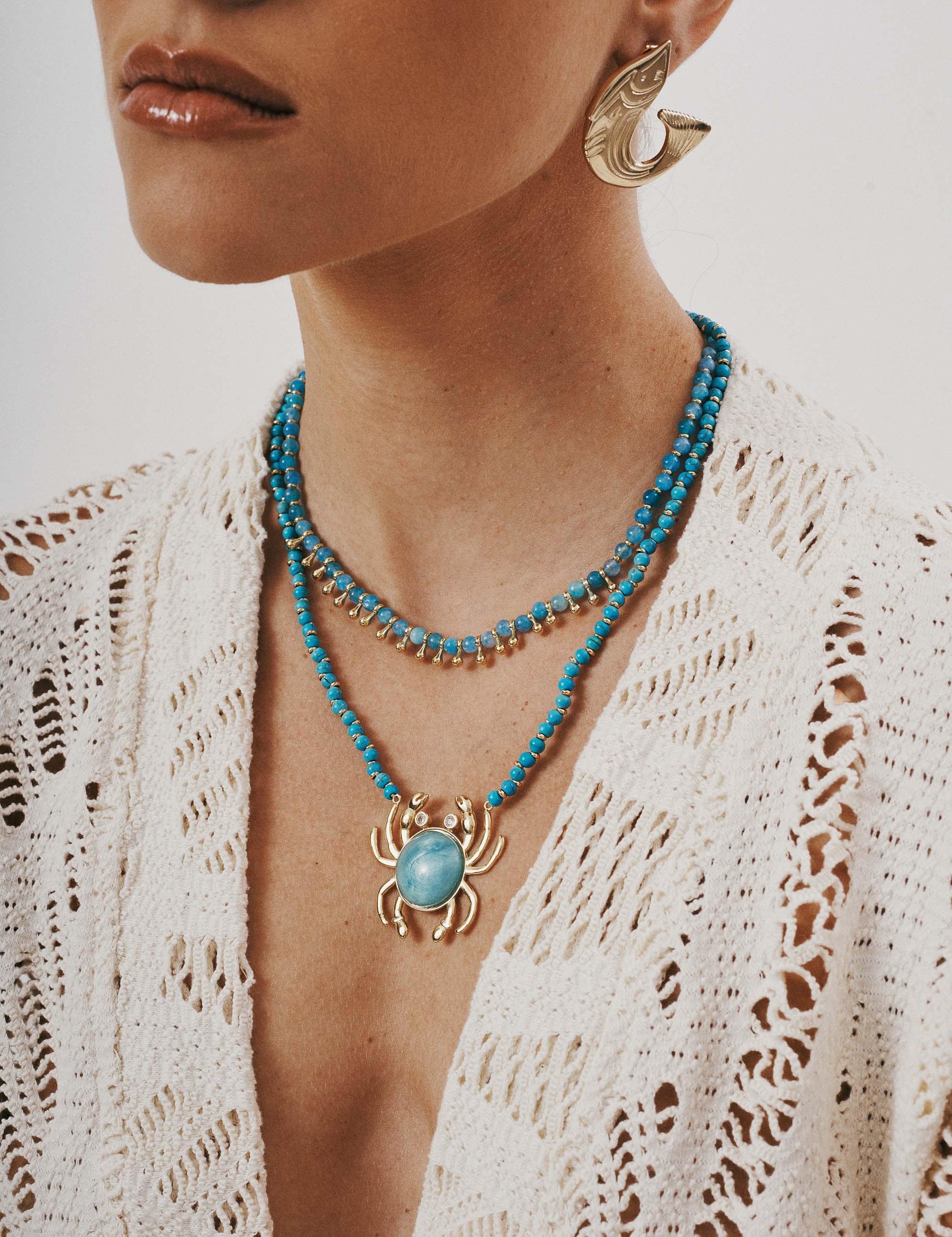 Colar Caranguejo Turquesa, delicado e cheio de charme. O pingente de caranguejo com detalhe turquesa traz leveza e um toque tropical ao seu visual.