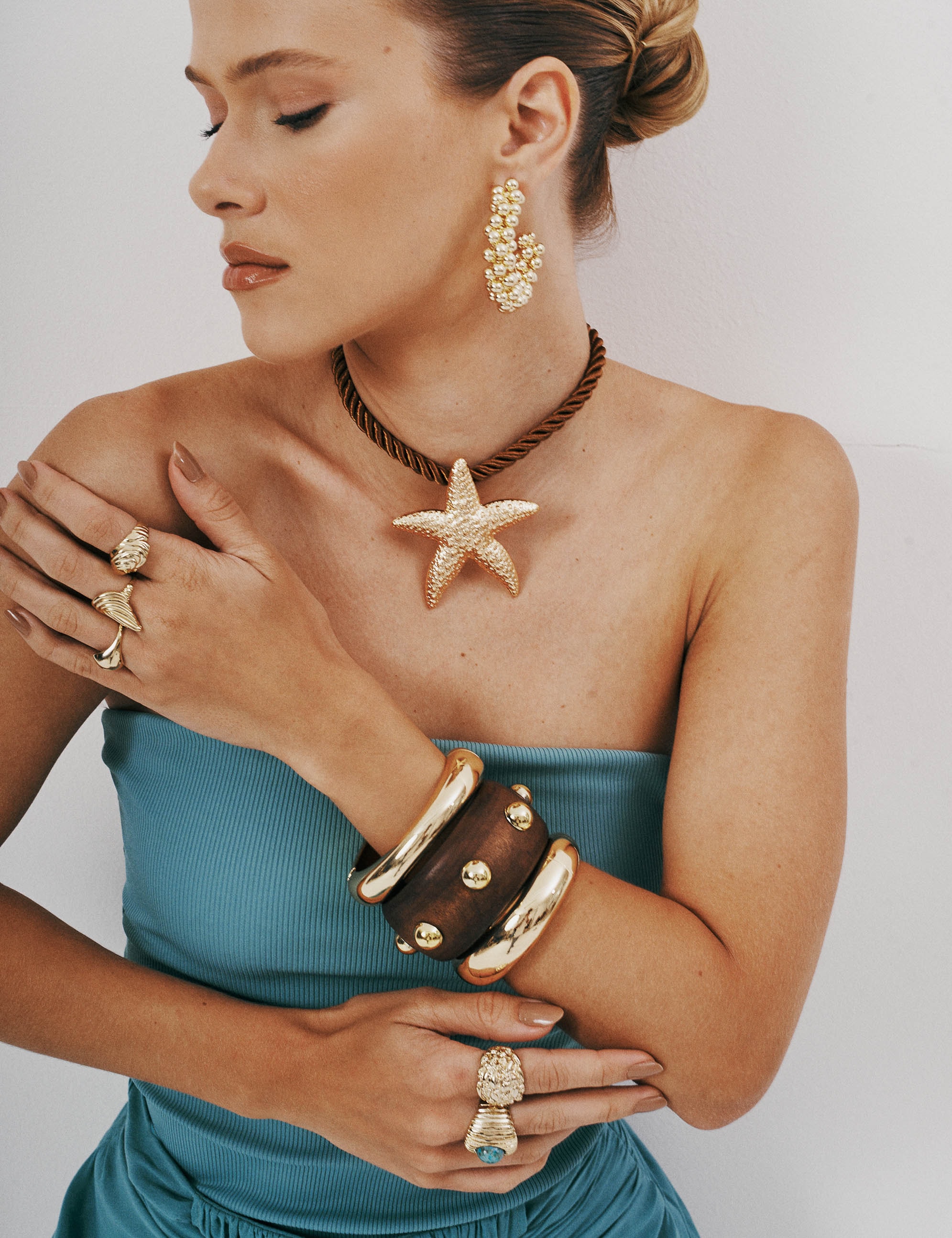 • Nossos metais são banhados a Ouro 18K, possuem camada protetiva própria para bijuterias finas e contam com metal precioso em sua composição.