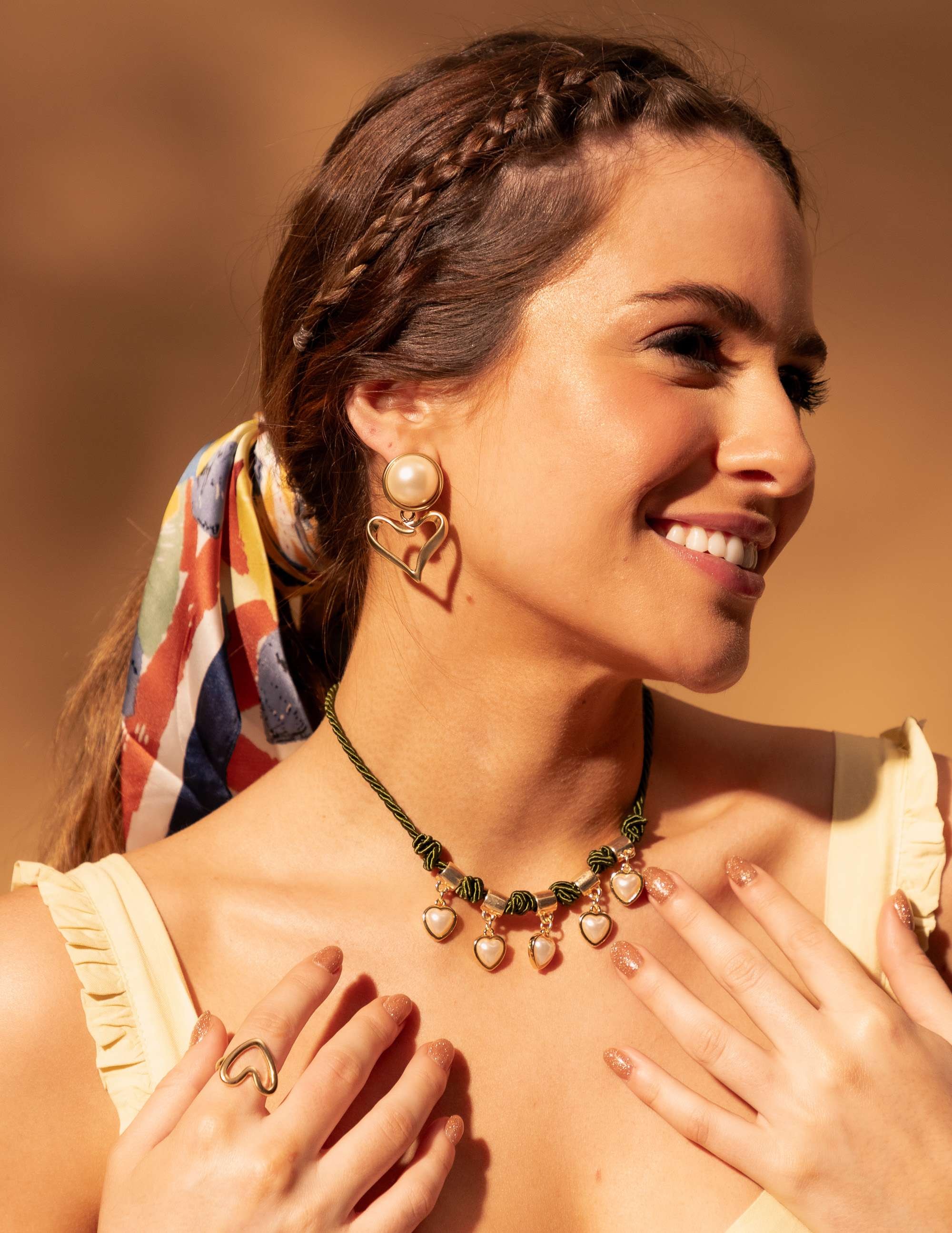 Todos os nossos metais são banhados a ouro, possuem camada protetiva para bijuterias finas e também possuem camada de metal precioso em sua composição. As bijuterias precisam de cuidados, limpe-as com flanela seca e macia, evite contato direto com cosméticos, areia, praia e piscina.