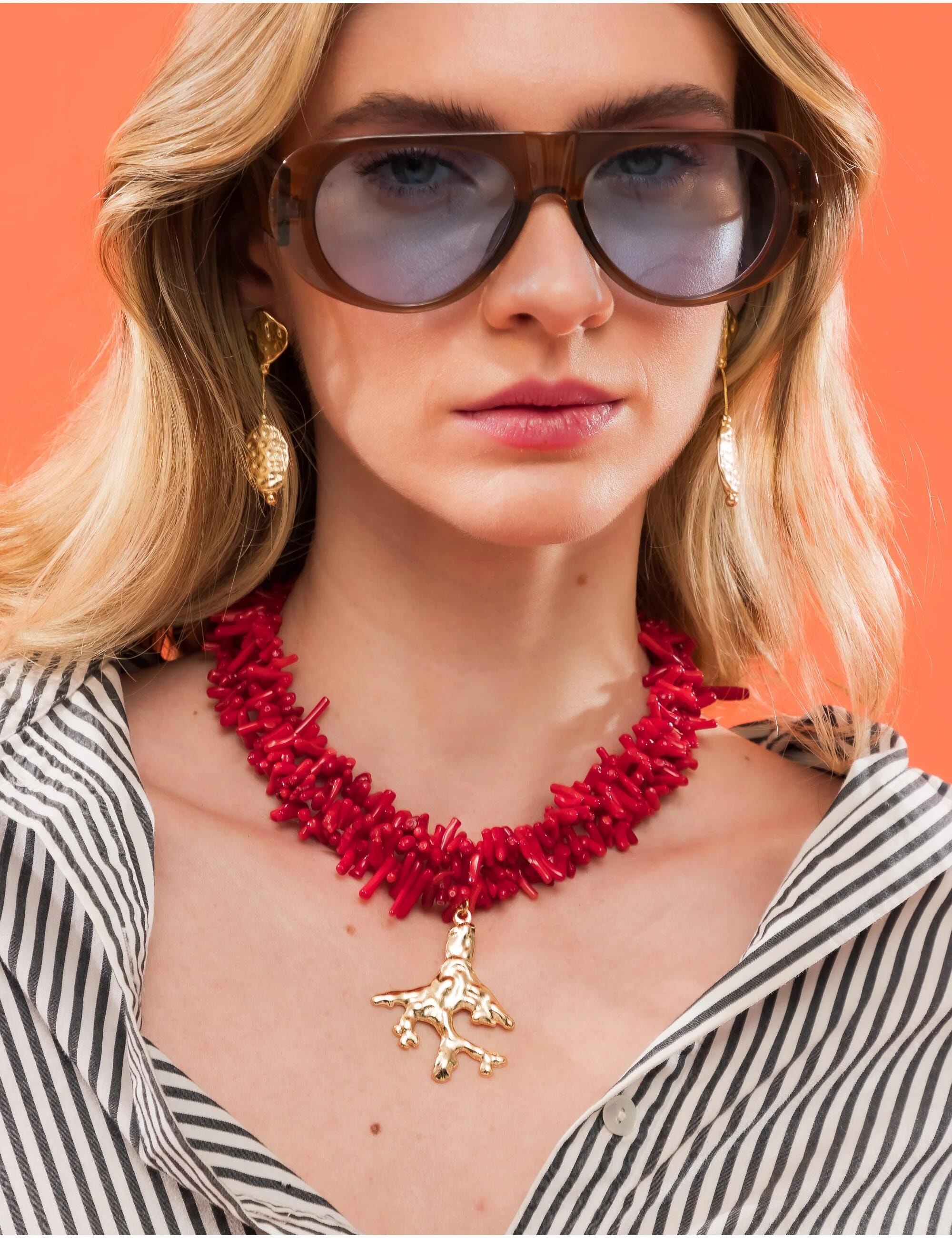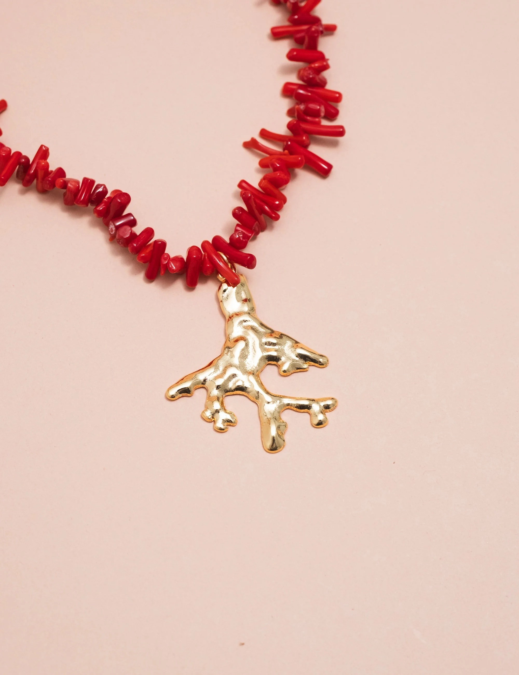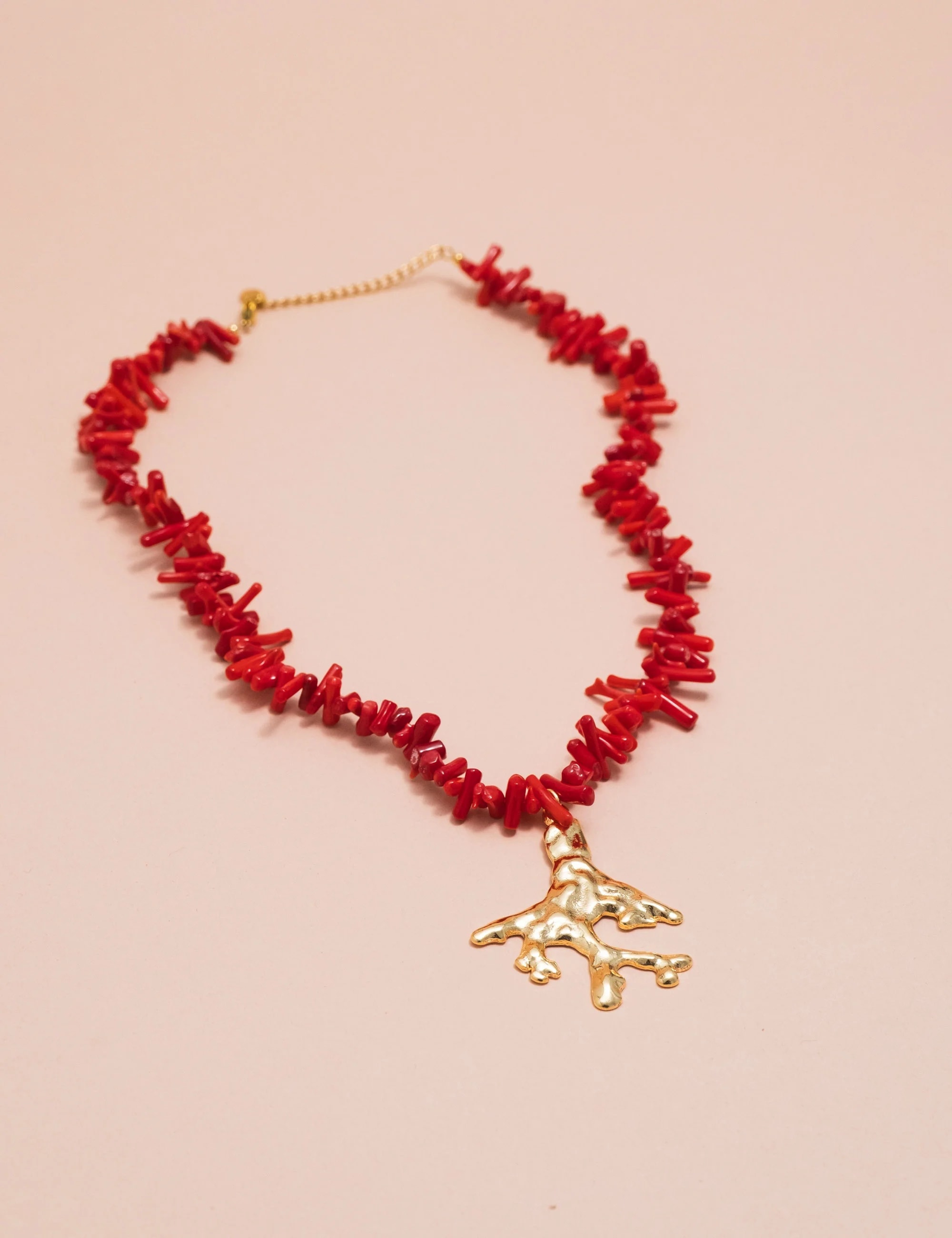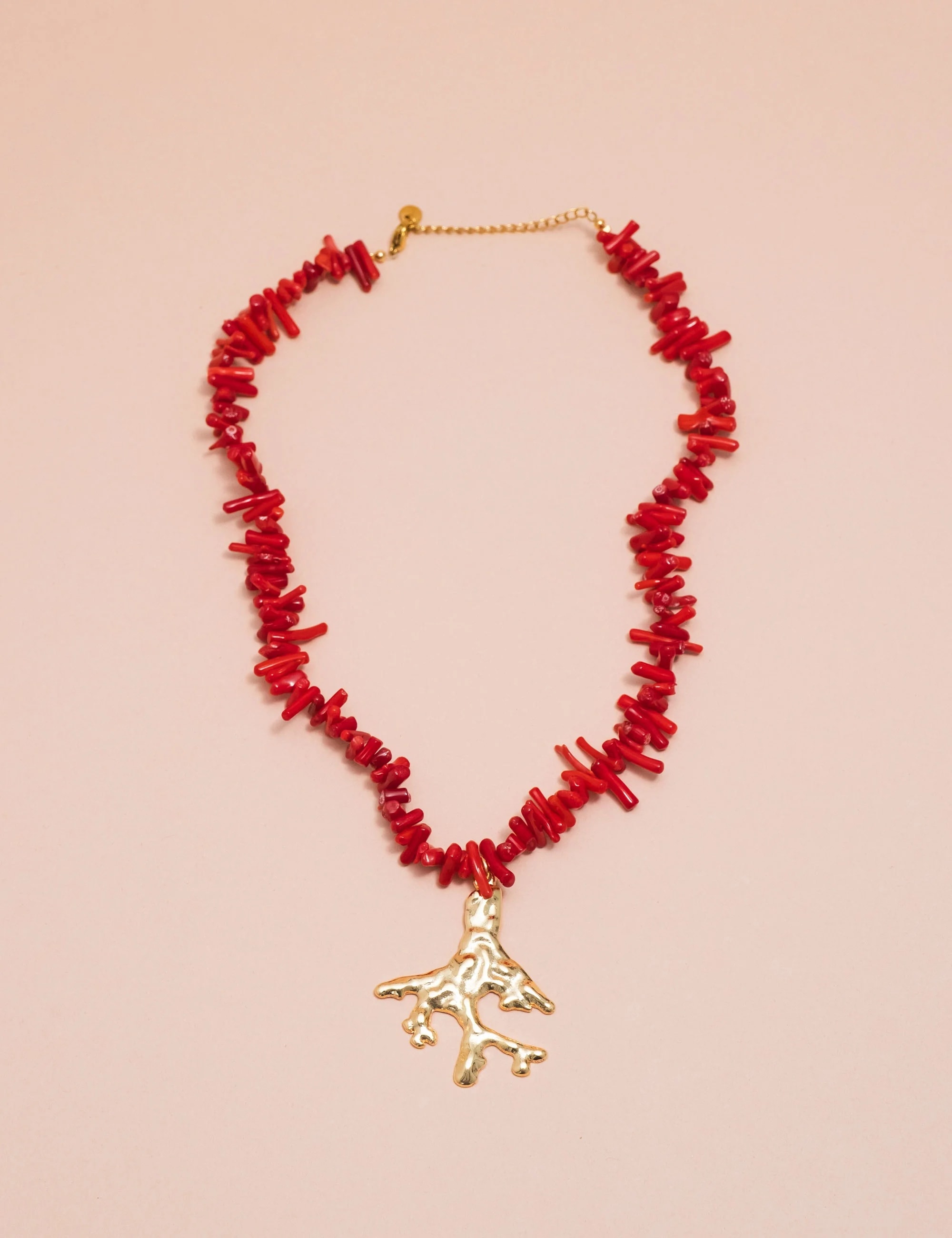 Peça: Este colar de cascalho apresenta um pingente dourado em forma de coral, oferecendo um toque de sofisticação e um charme natural ao acessório. Ideal para um visual elegante e moderno.