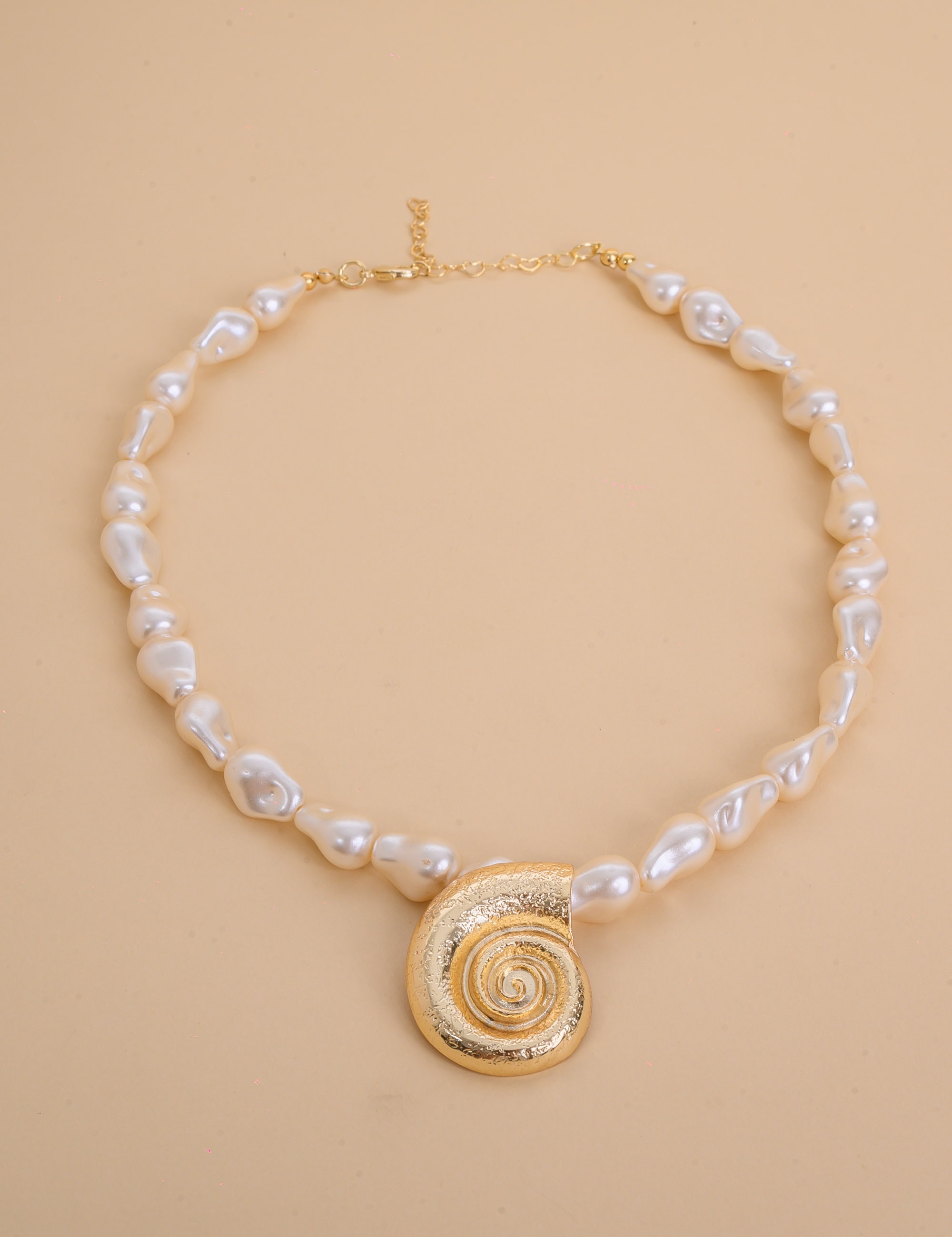 Colar de pérolas e pingente de concha banhado a ouro, moderno e cheio de charme para realçar qualquer look.
