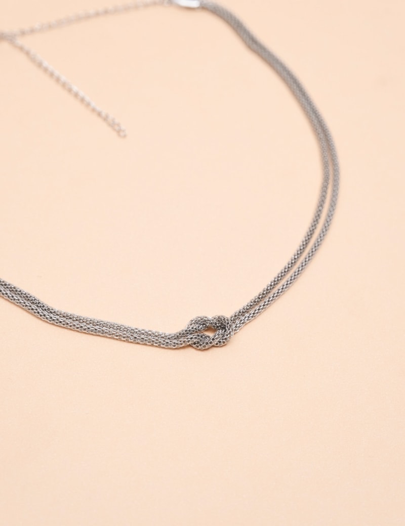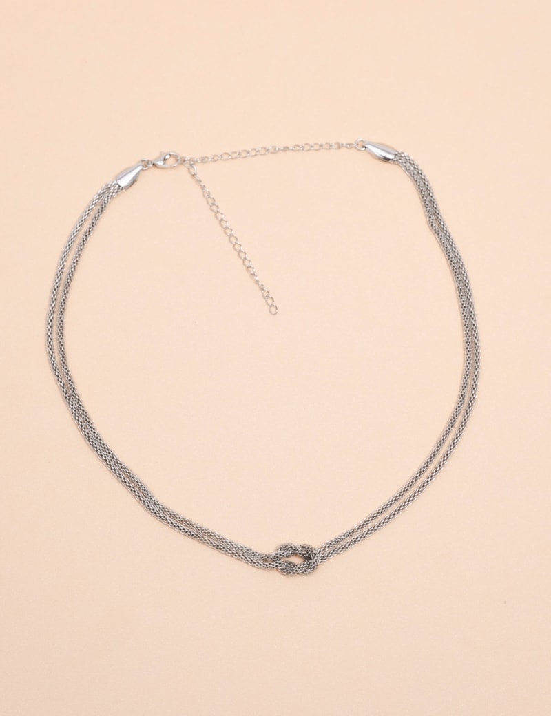 Colar Dourado com Nó Central – Corrente Dupla Delicada Ajustável- CO2606 BANHO:SILVER CO2606-SILVER