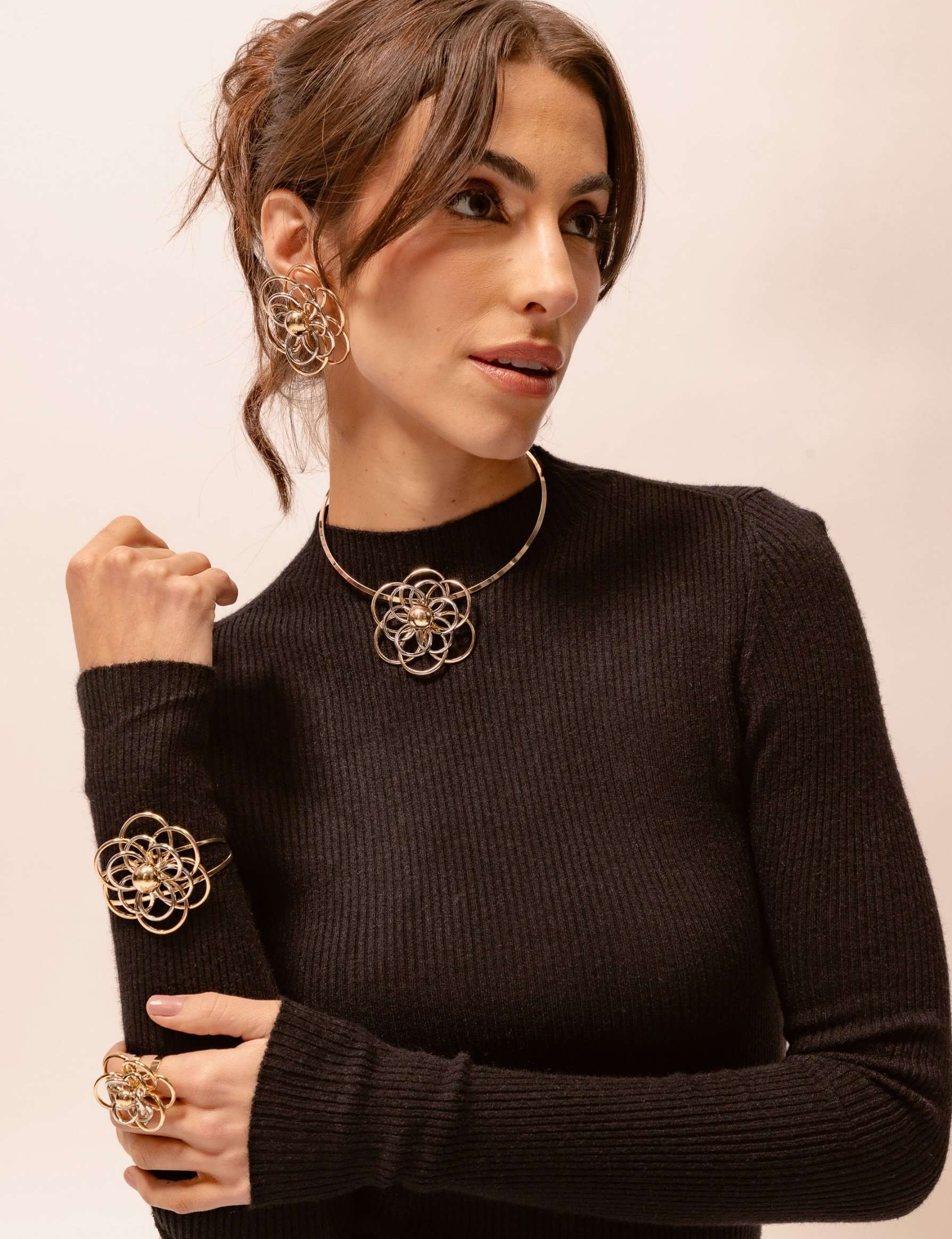 Todos os nossos metais são banhados a ouro, possuem camada protetiva para bijuterias finas e também possuem camada de metal precioso em sua composição. As bijuterias precisam de cuidados, limpe-as com flanela seca e macia, evite contato direto com cosméticos, areia, praia e piscina.