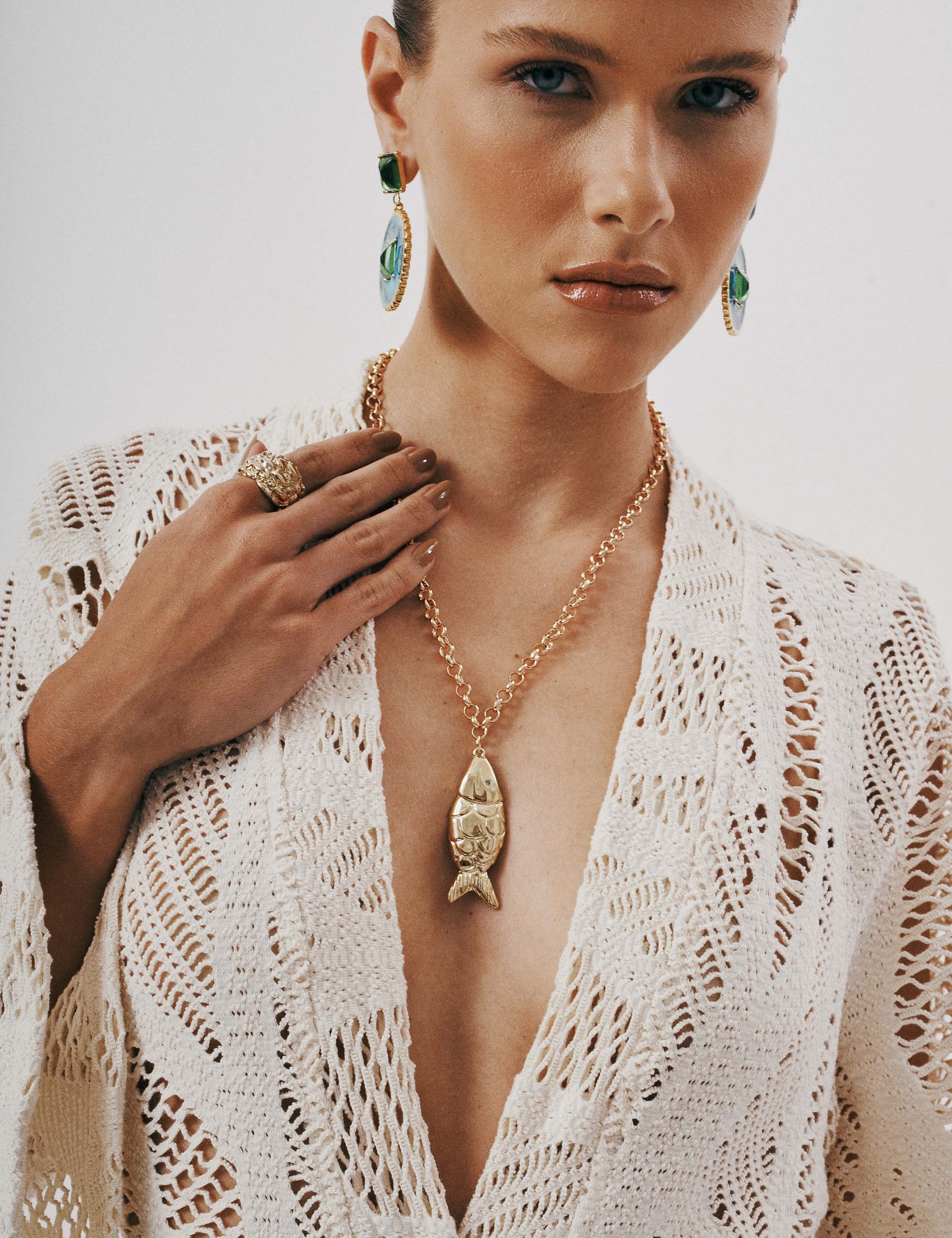 Colar elo português com pingente de peixe, sofisticado e cheio de charme. Perfeito para complementar seu visual com elegância.