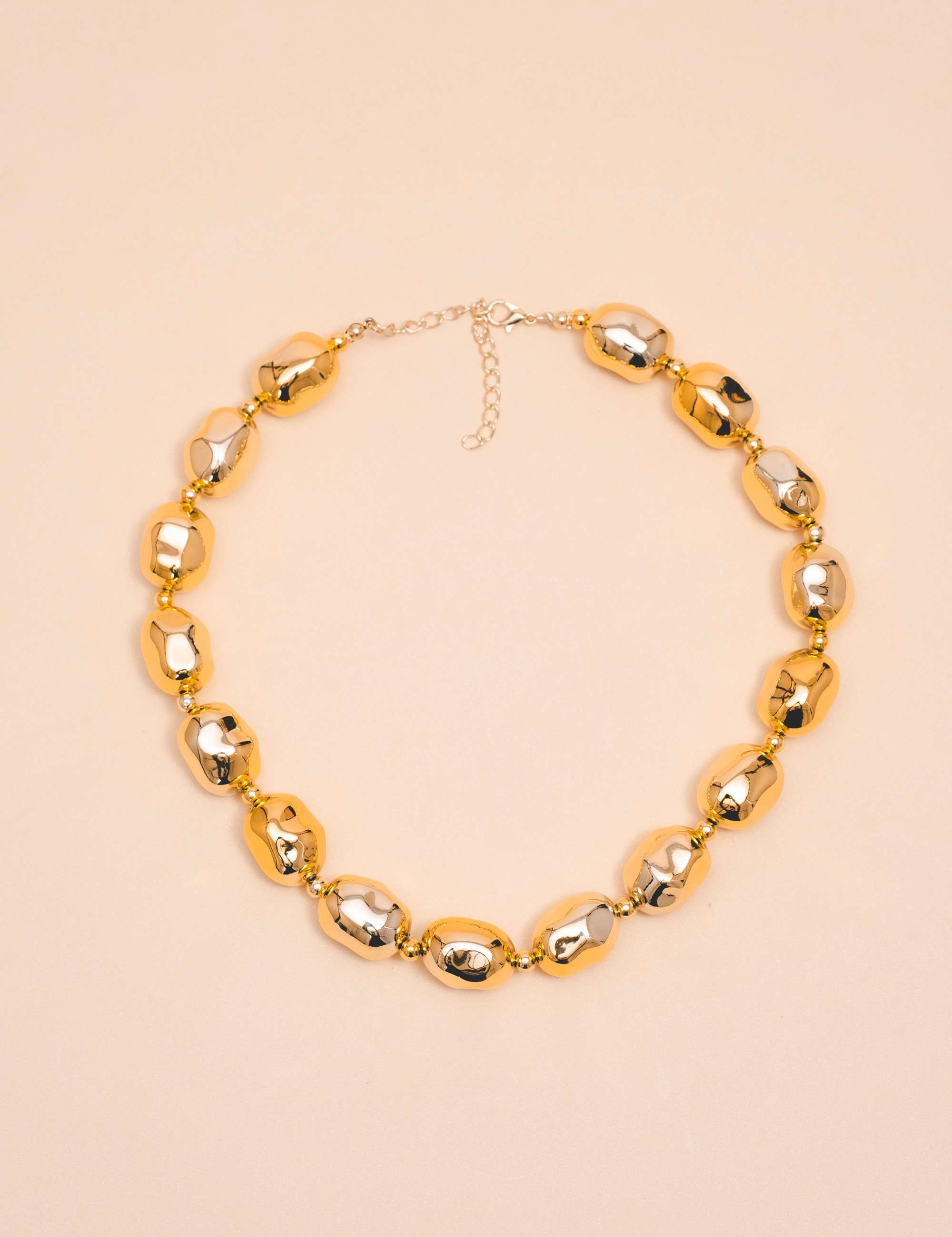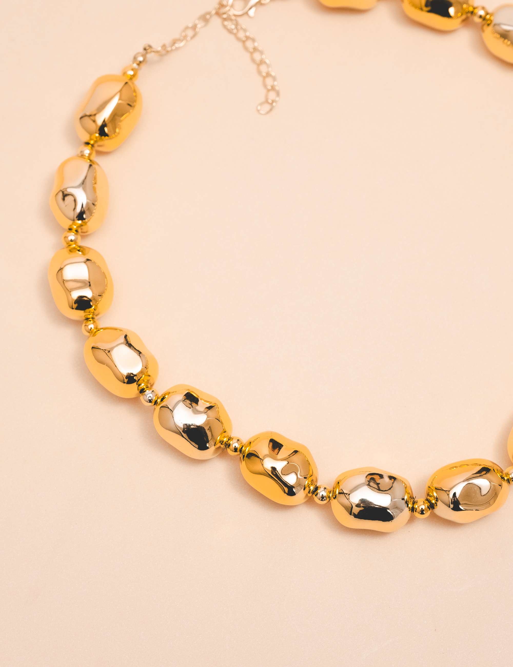Peça: Colar com design orgânico, composto por esferas e uma corrente entrelaçada. Aqueles que buscam um toque de estilo em seu visual encontrarão nos acessórios orgânicos a escolha perfeita.