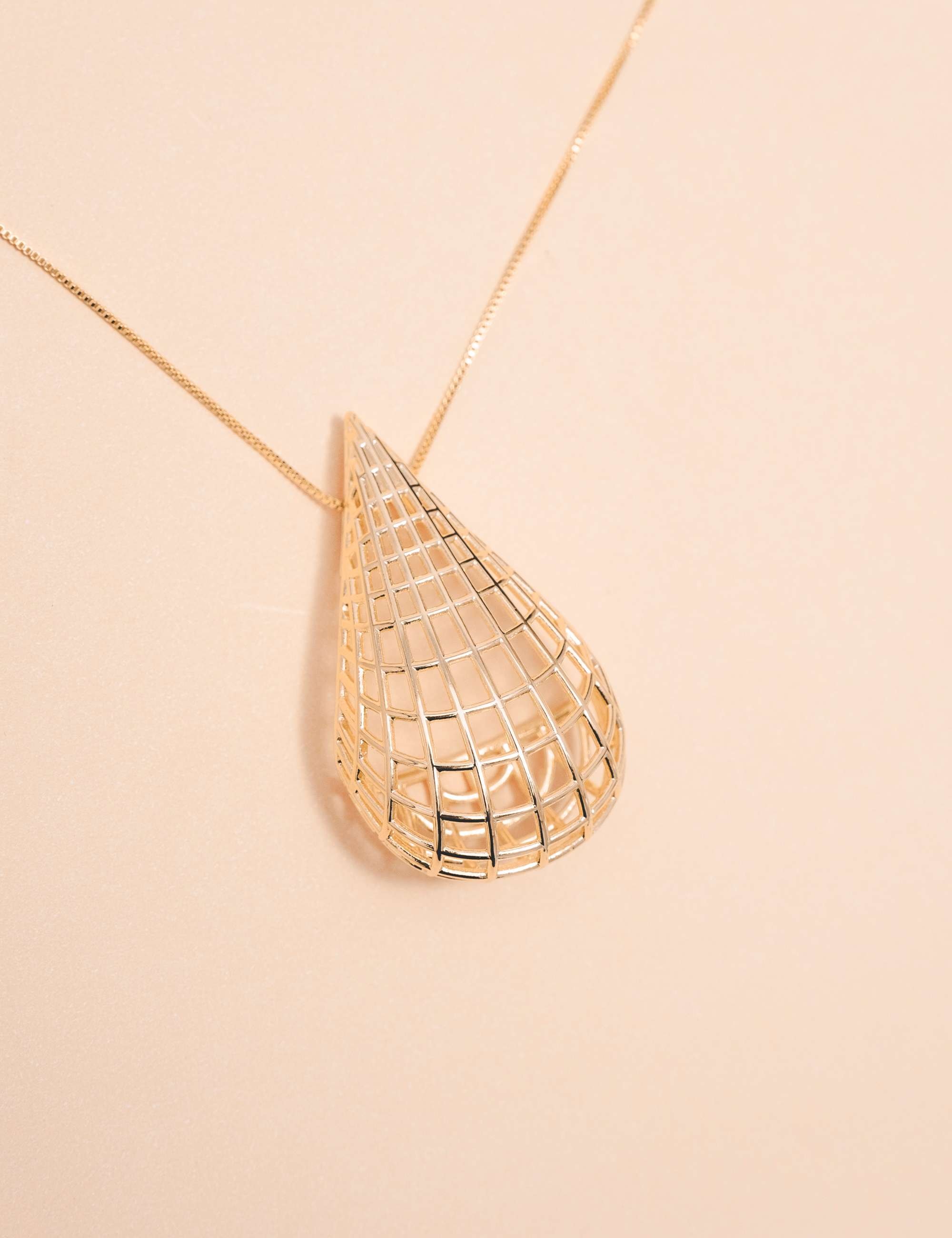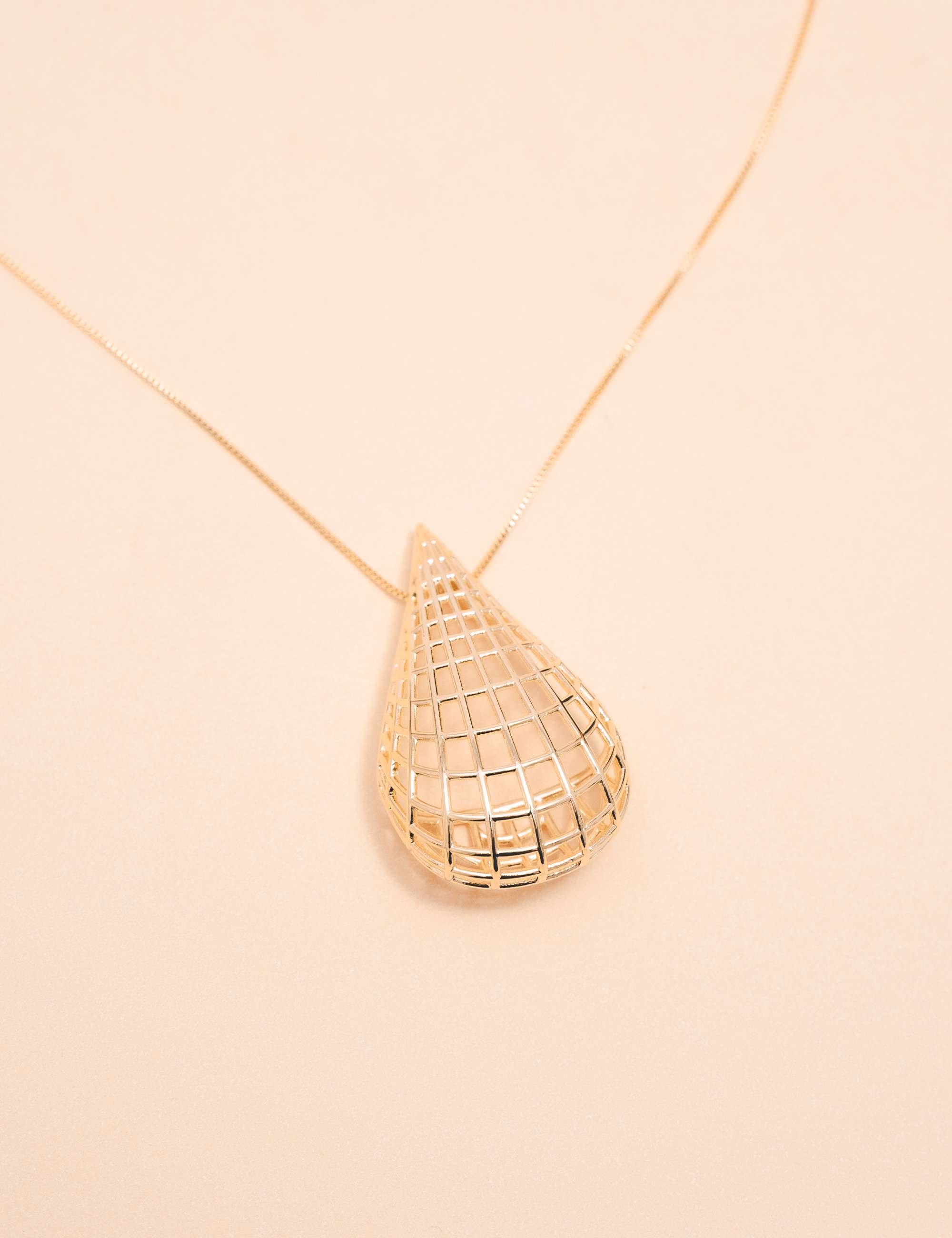 Peça: Colar alta fusão, em formato de máxi gota vazada. Colares em formato de gota cada vez mais vem ganhando espaço nos looks e trazendo aquele toque fashionista.