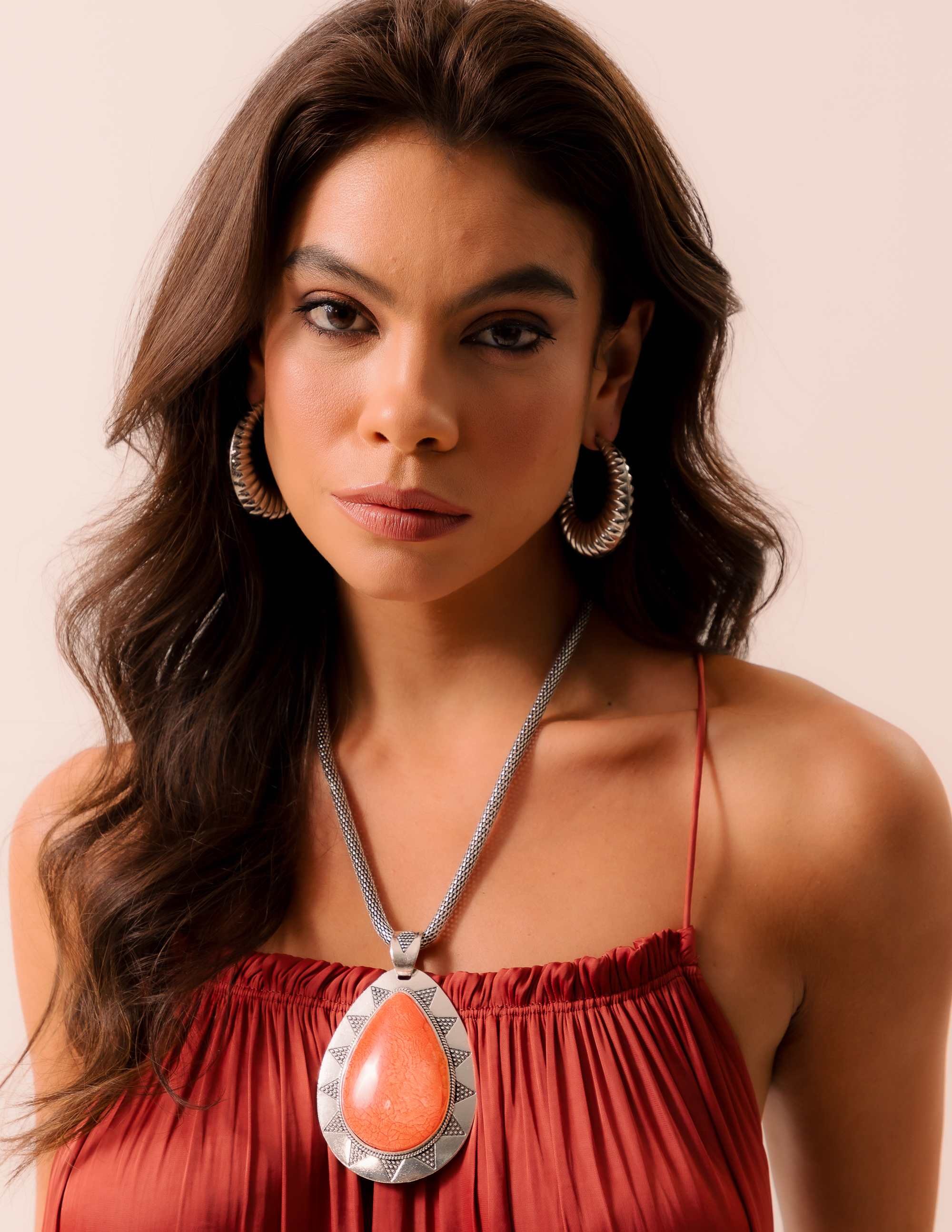 COLAR GOTA LARANJA PRATA VINTAGE - CO29098VO01