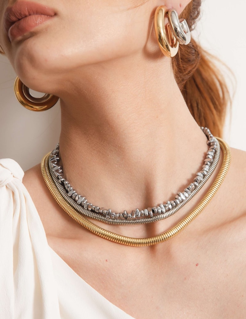 Todos os nossos metais são banhados a ouro, possuem camada protetiva para bijuterias finas e também possuem camada de metal precioso em sua composição. As bijuterias precisam de cuidados, limpe-as com flanela seca e macia, evite contato direto com cosméticos, areia, praia e piscina.
