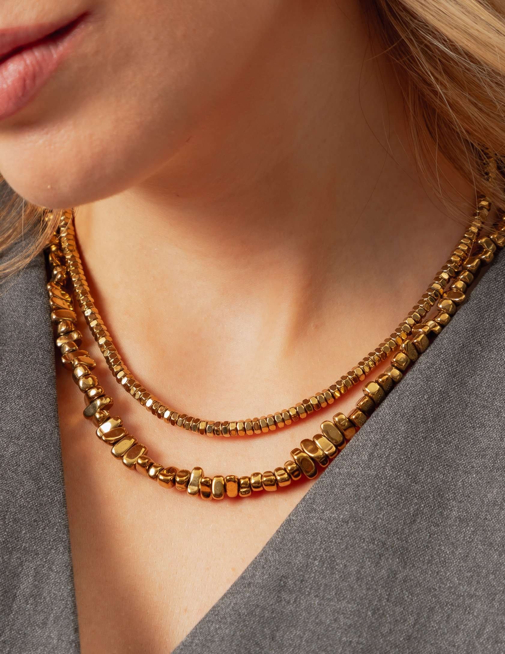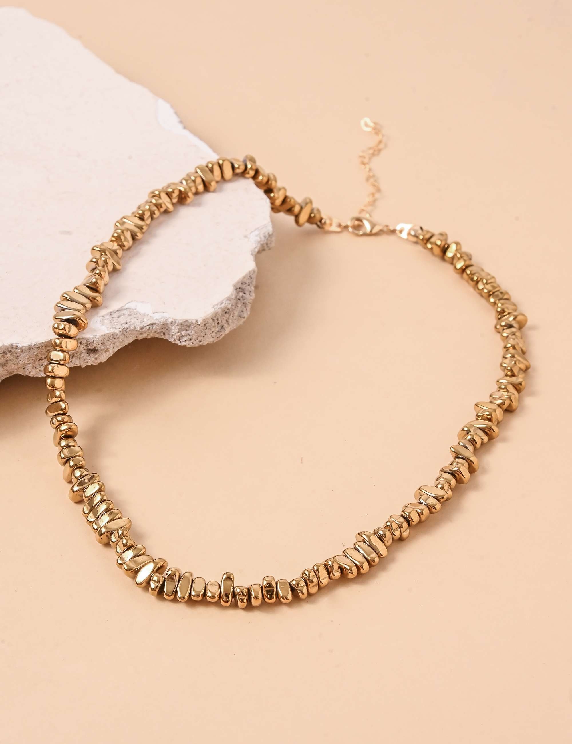 Colar Hematita Cascalho Dourado