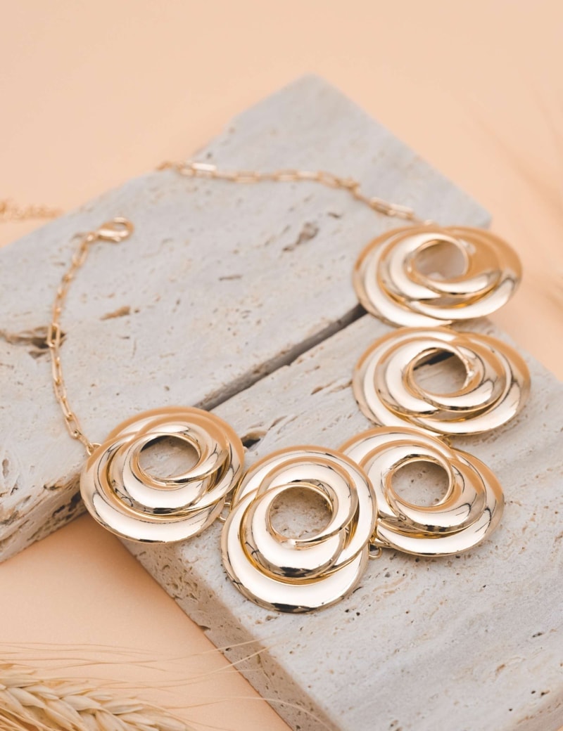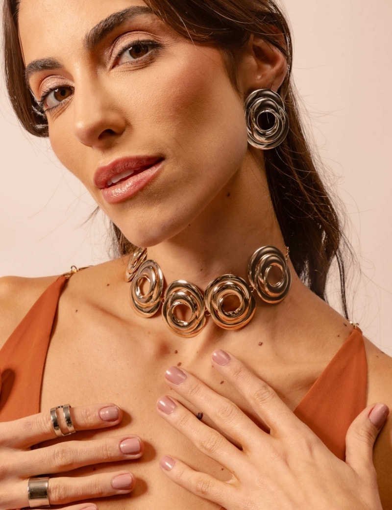 Todos os nossos metais são banhados a ouro, possuem camada protetiva para bijuterias finas e também possuem camada de metal precioso em sua composição. As bijuterias precisam de cuidados, limpe-as com flanela seca e macia, evite contato direto com cosméticos, areia, praia e piscina.
