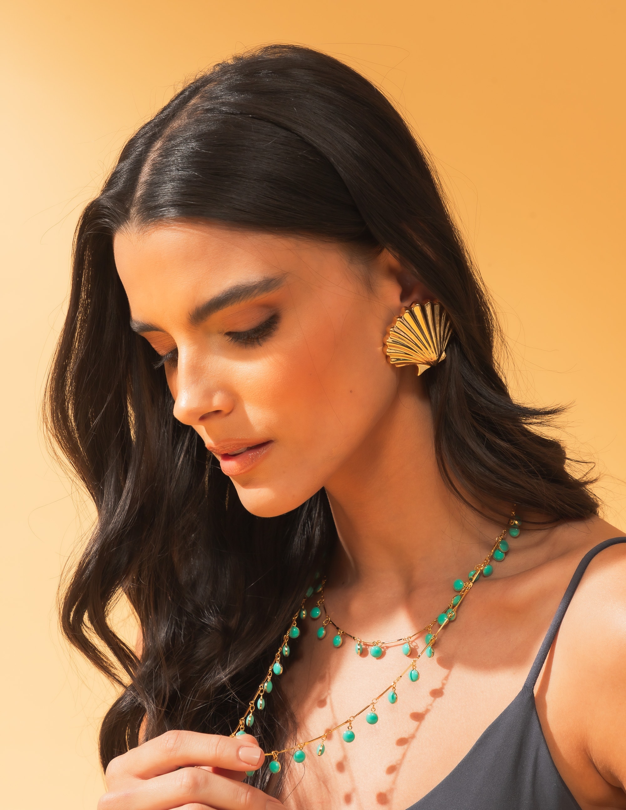 Todos os nossos metais são banhados a ouro, possuem camada protetiva para bijuterias finas e também possuem camada de metal precioso em sua composição. As bijuterias precisam de cuidados, limpe-as com flanela seca e macia, evite contato direto com cosméticos, areia, praia e piscina.