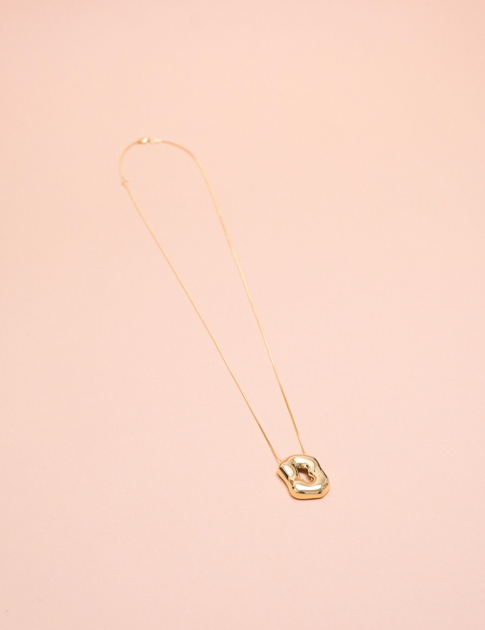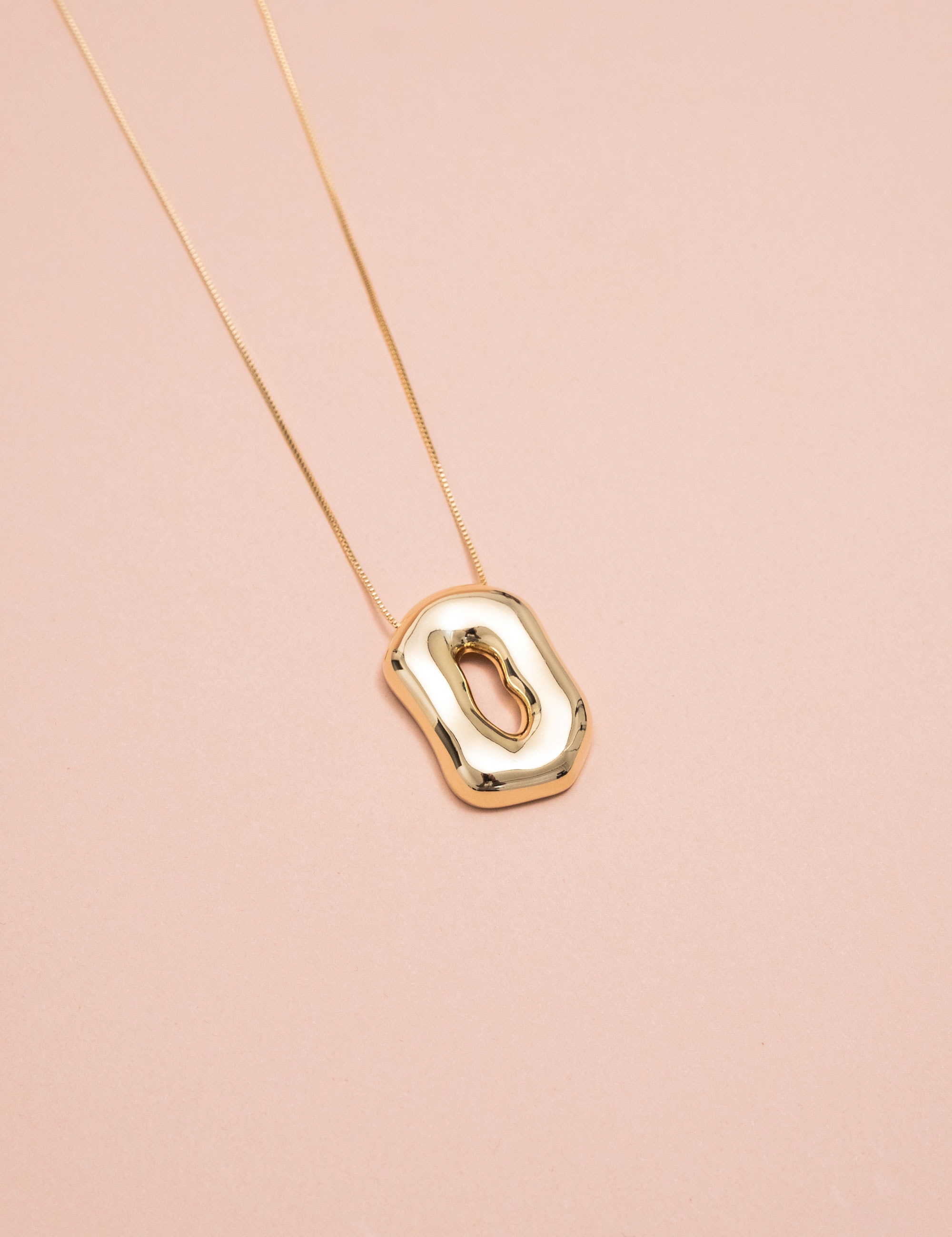Colar longo com corrente delicada e pingente em formato orgânico. Seu design moderno com acabamento polido garante brilho intenso e um visual contemporâneo e sofisticado. Uma peça versátil, perfeita para compor produções elegantes ou elevar looks básicos com personalidade e estilo.