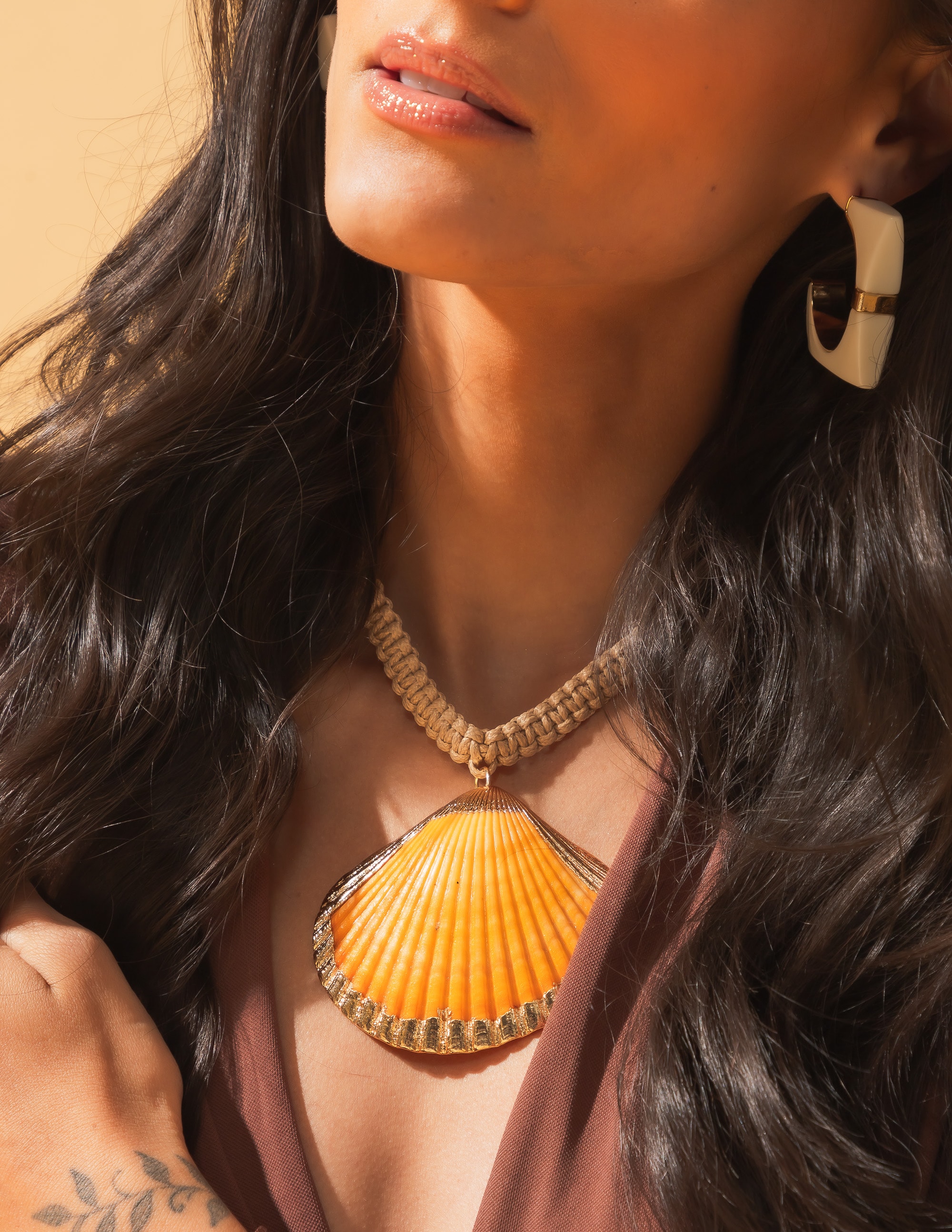 COLAR MACRAMÉ CONCHA ORANGE - CO29034VO01