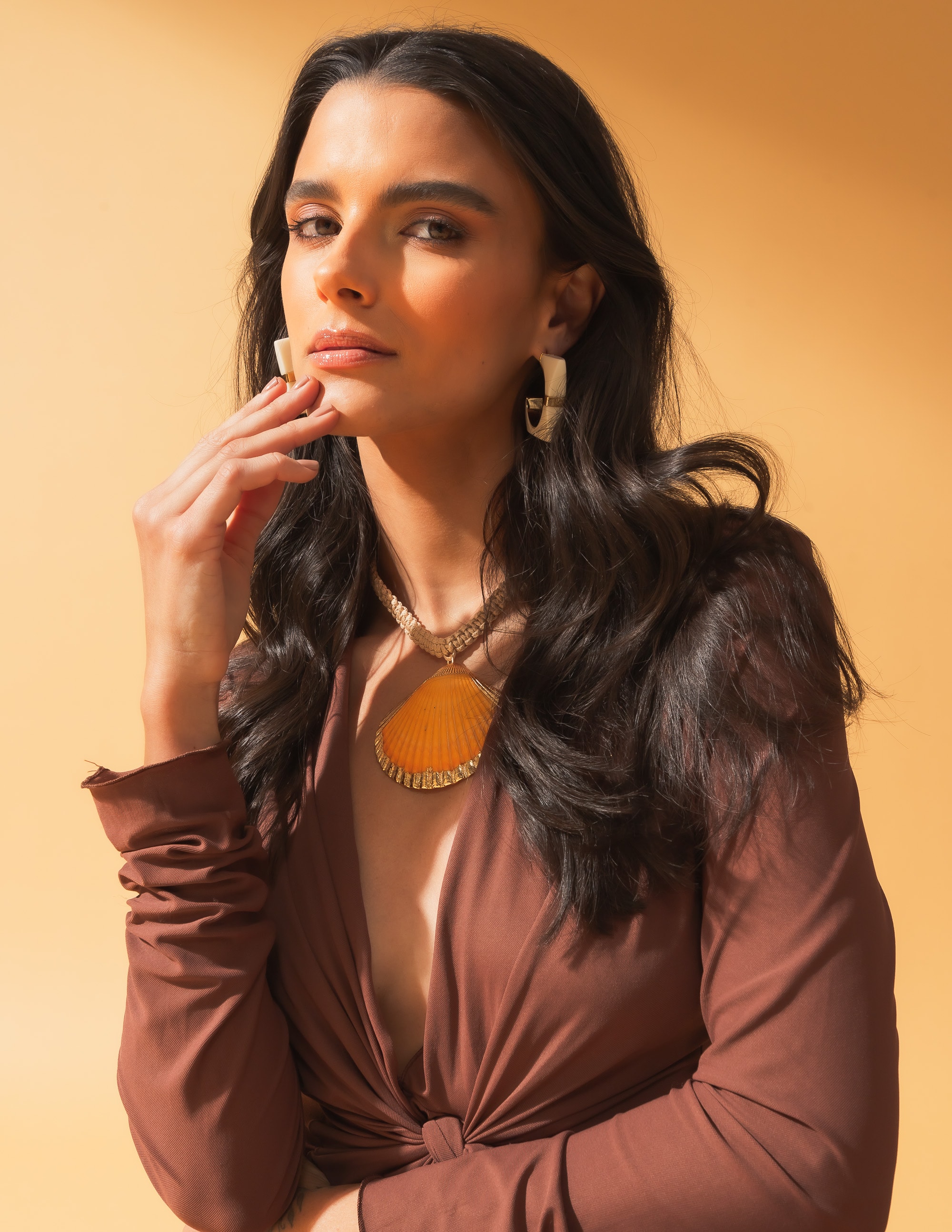 Todos os nossos metais são banhados a ouro, possuem camada protetiva para bijuterias finas e também possuem camada de metal precioso em sua composição. As bijuterias precisam de cuidados, limpe-as com flanela seca e macia, evite contato direto com cosméticos, areia, praia e piscina.