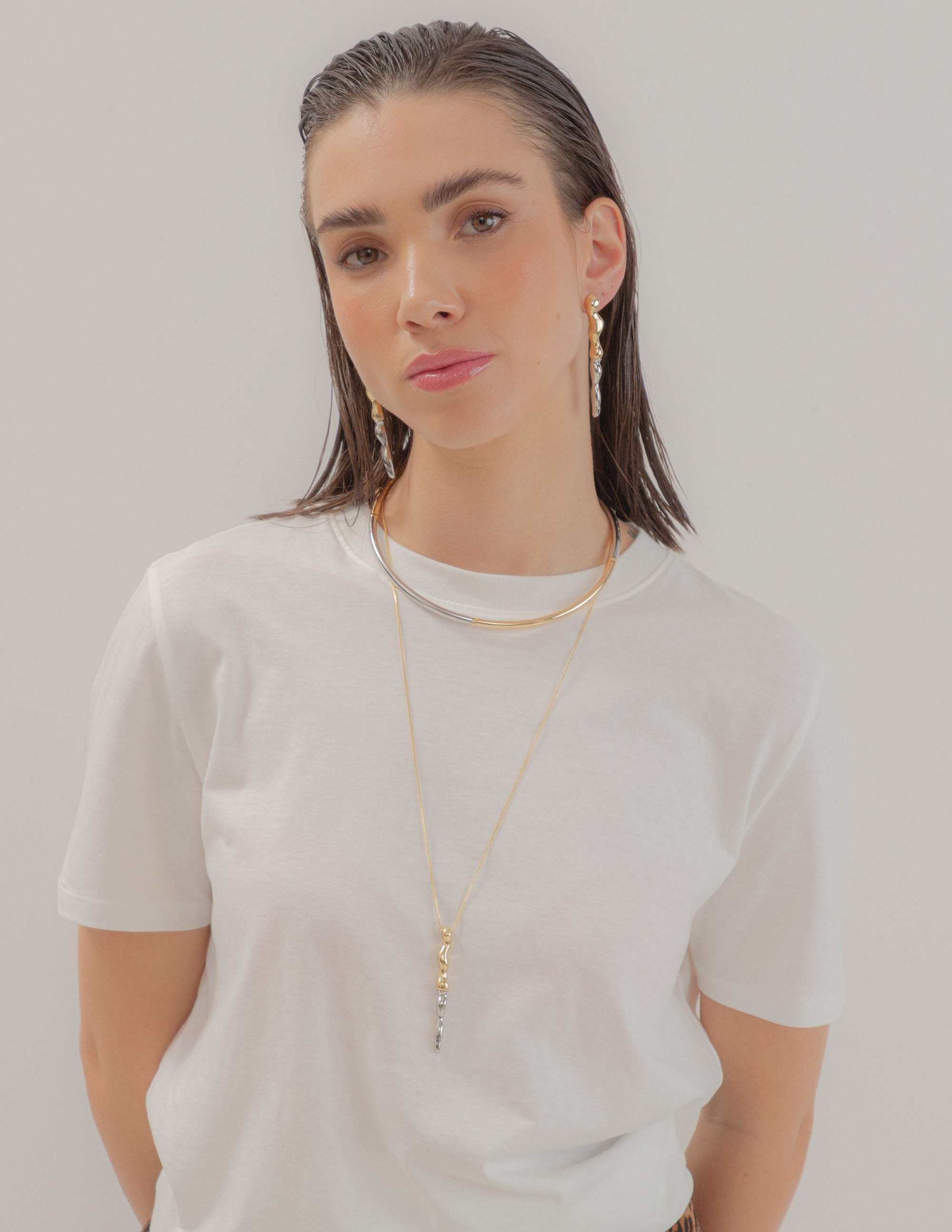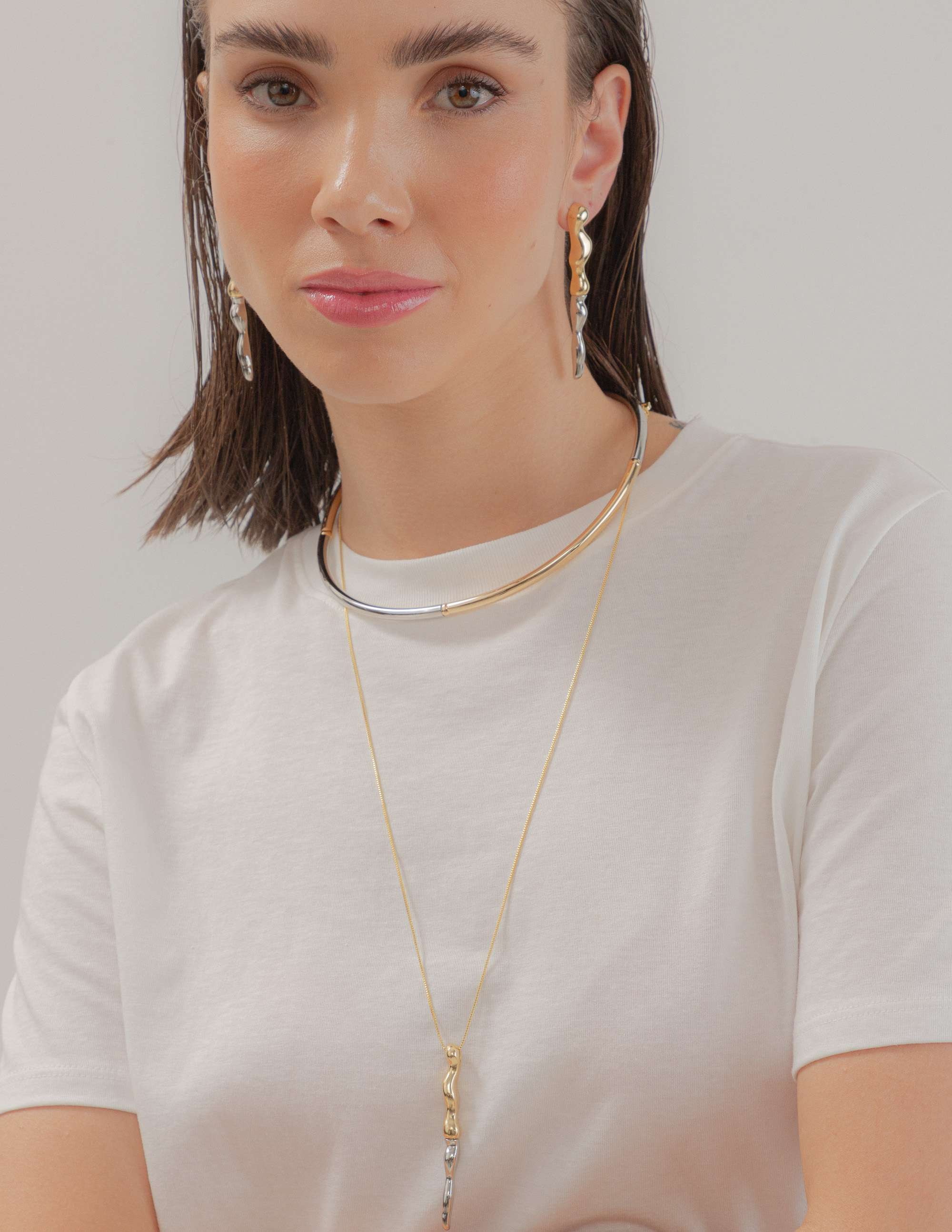Peça: Colar com pingente de design orgânico em gold e silver, colar em corrente veneziana com pingente. Para quem busca adicionar um toque de estilo ao visual, os acessórios orgânicos são a escolha perfeita