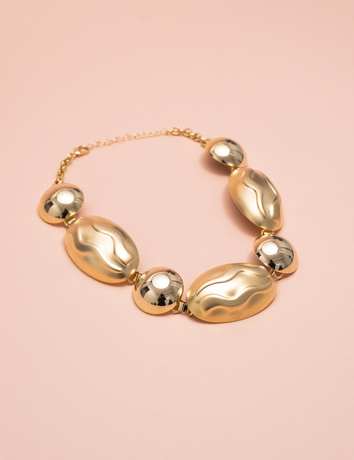 Colar em metal com design marcante, peça que agrega presença e estilo ao visual.