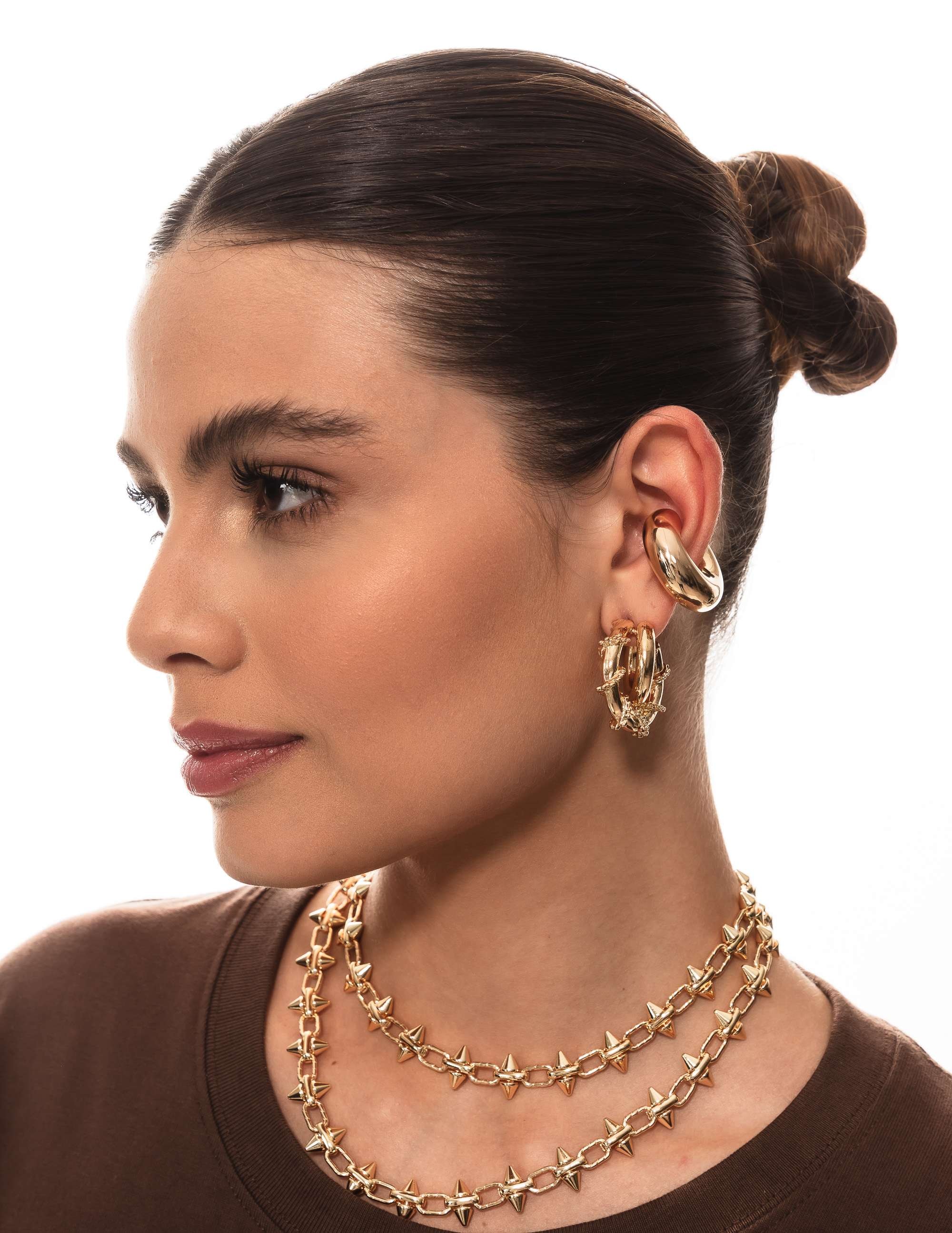 Peça : Um colar moderno com formato orgânico, caracterizado por detalhes elegantes e contemporâneos, que refletem um estilo sofisticado e atual.