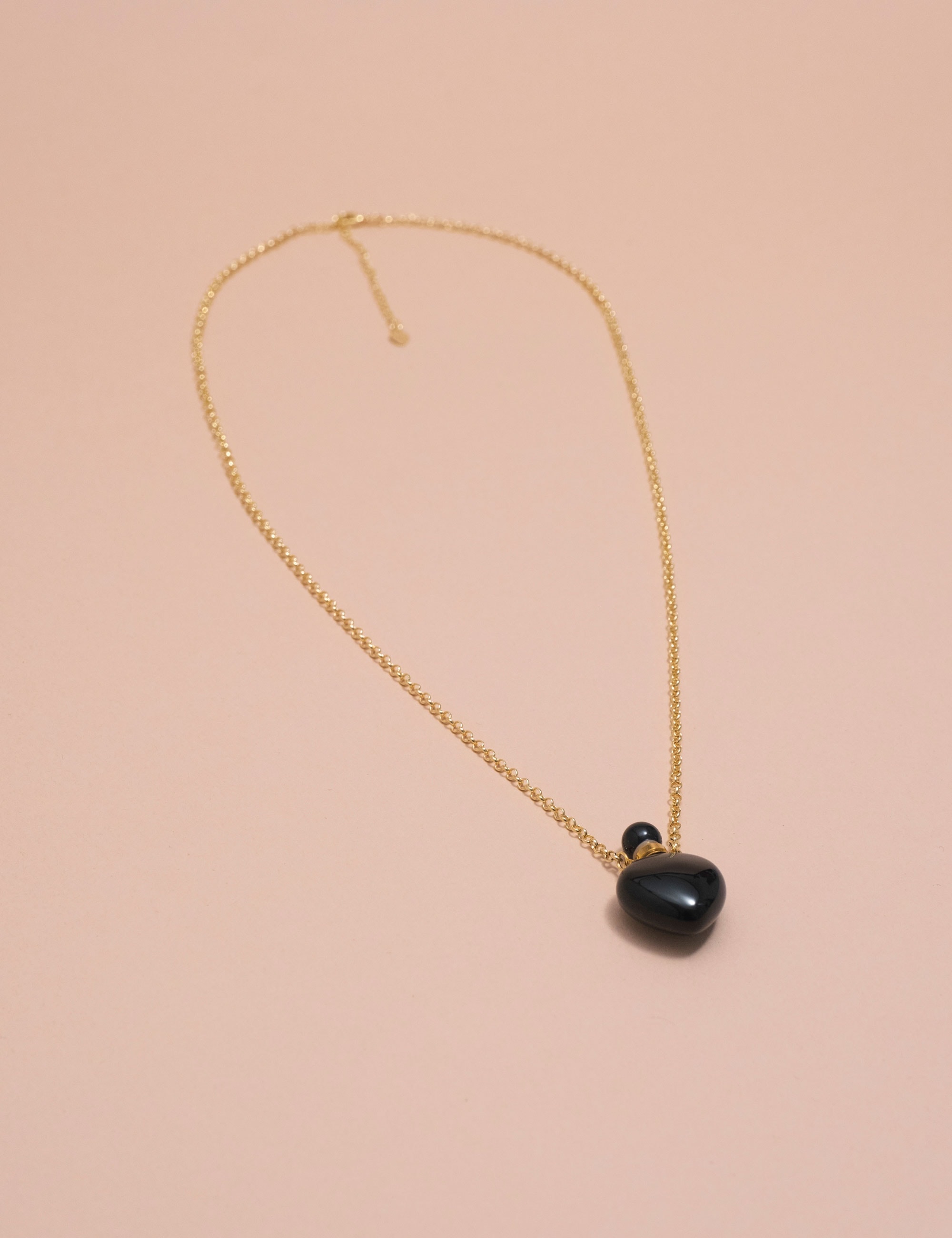 Peça: Colar difusor de pedra ônix, em formato semelhante ao coração abaulado. Colar difusor ou perfumeiro, são indispensáveis para quem ama oléo essencial e quer se conectar cada vez mais com aromaterapia.