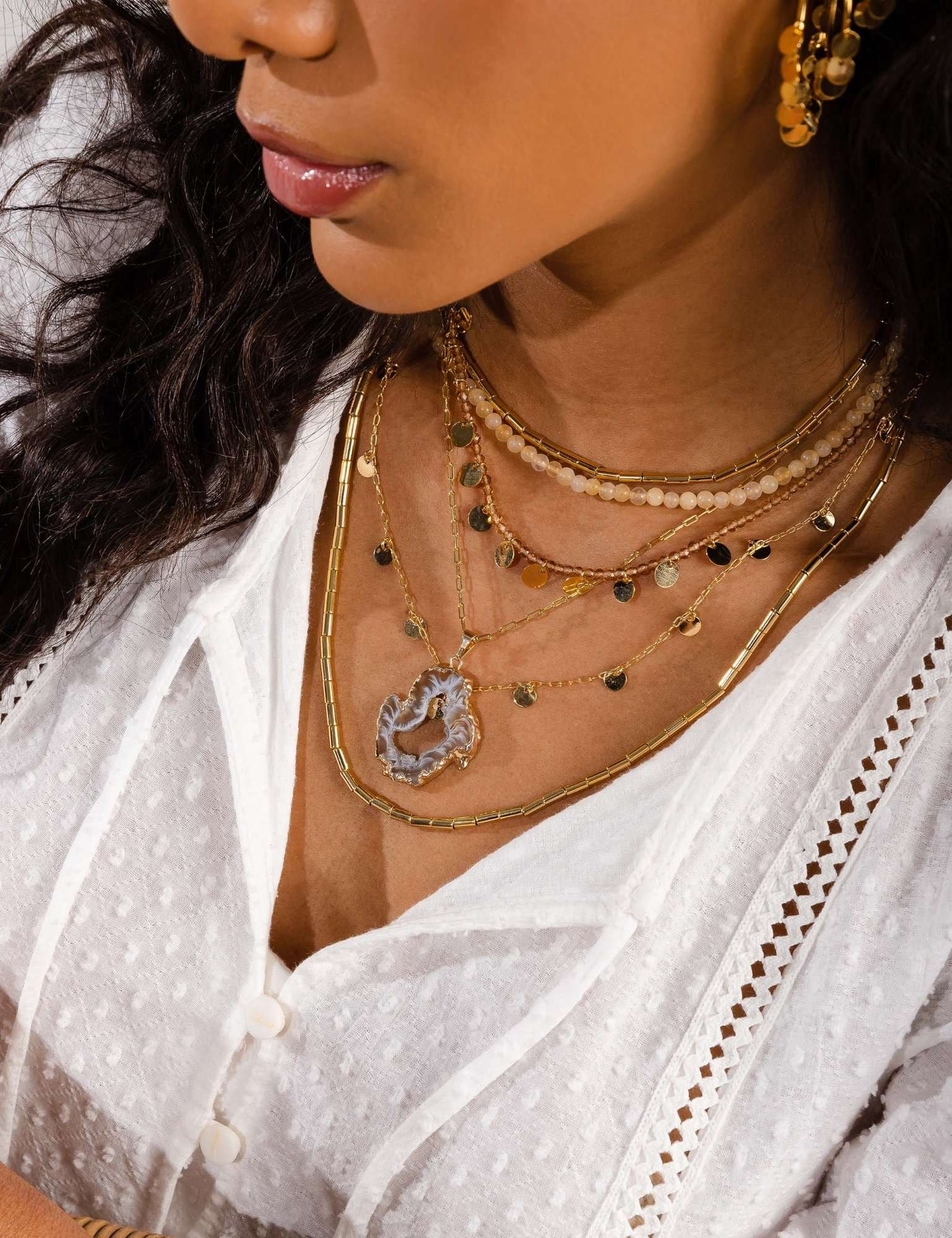 Todos os nossos metais são banhados a ouro, possuem camada protetiva para bijuterias finas e também possuem camada de metal precioso em sua composição. As bijuterias precisam de cuidados, limpe-as com flanela seca e macia, evite contato direto com cosméticos, areia, praia e piscina.