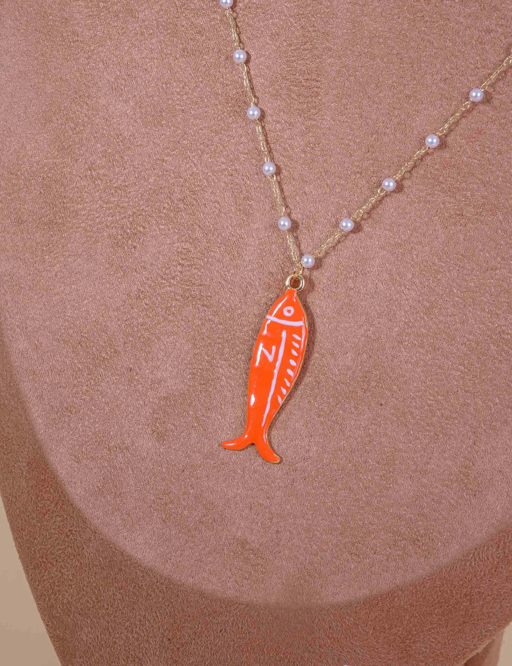 COLAR OURO PEIXE RESINA LARANJA - CO29347VO08